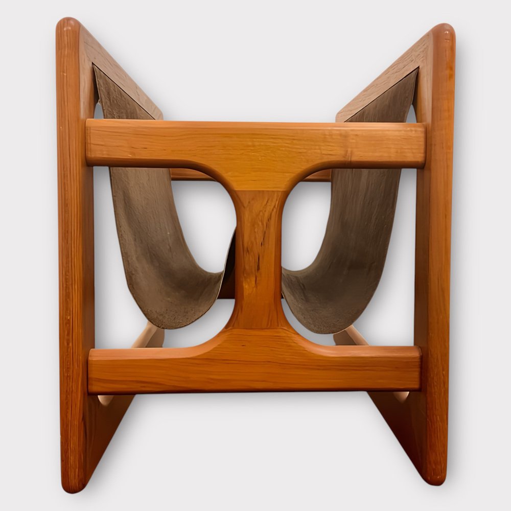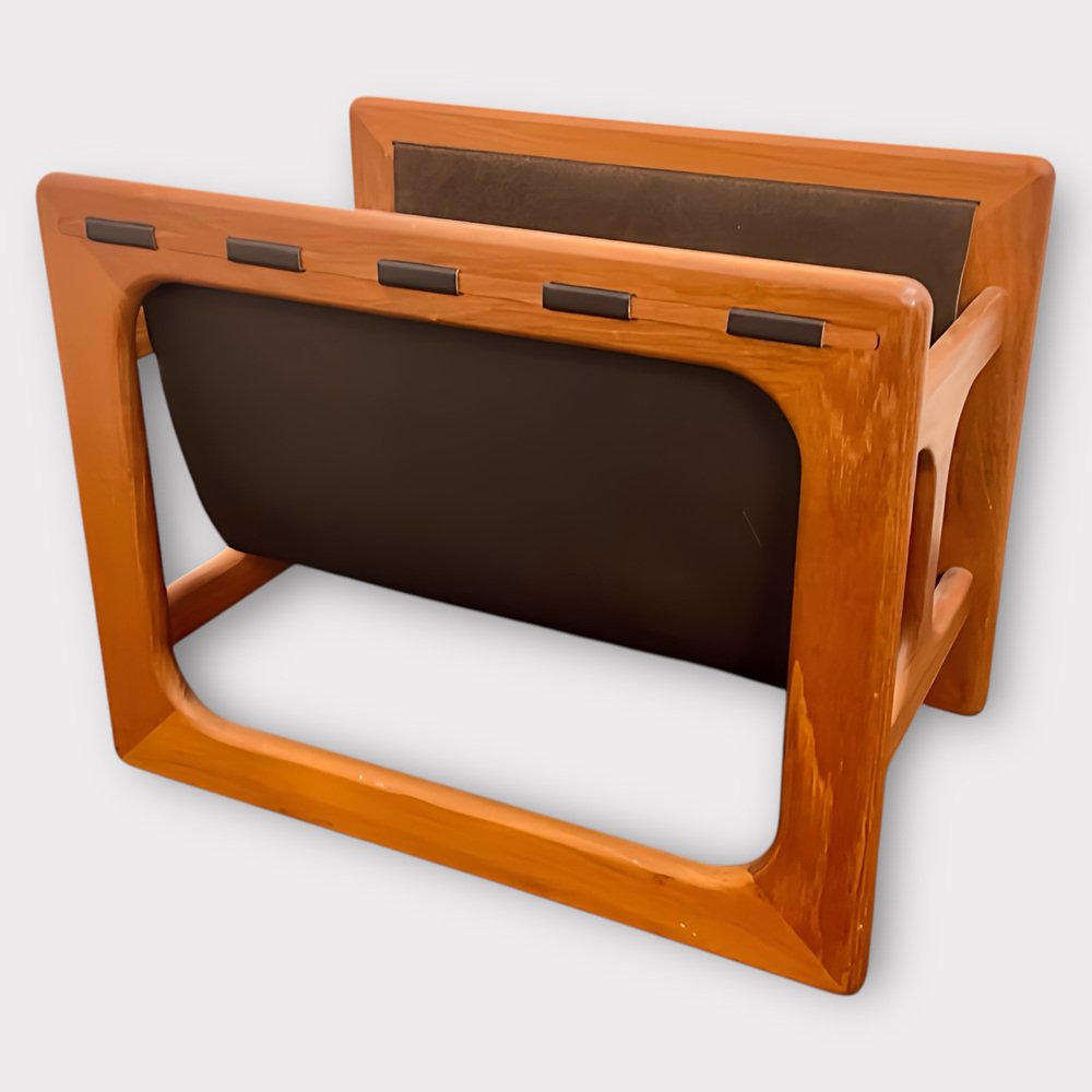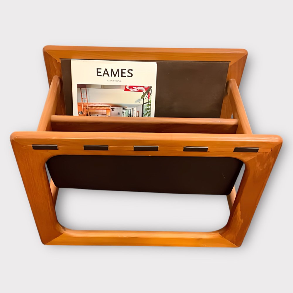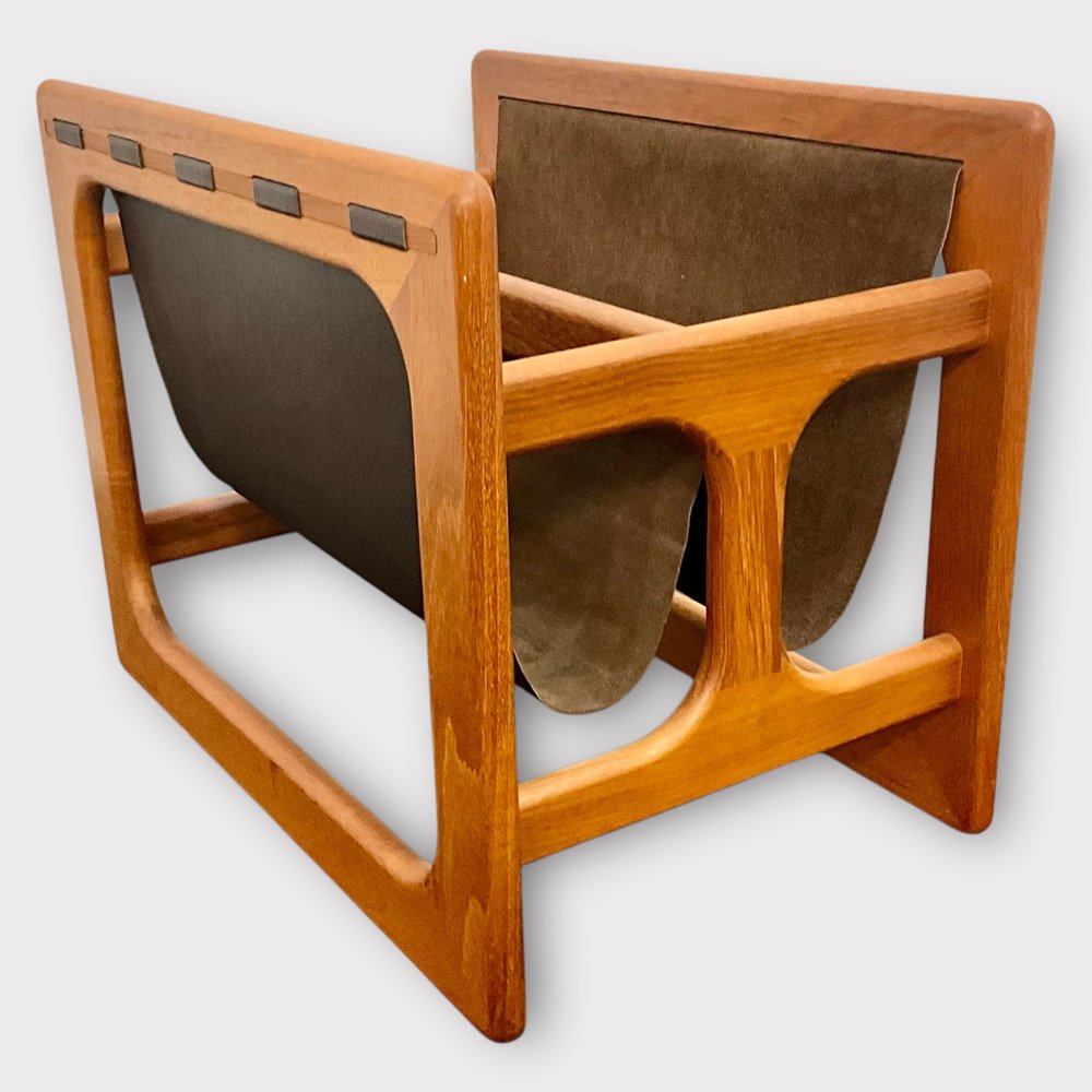 A Danish Modern newspaper holder / magazine rack design classic of the mid-century era is offered here.