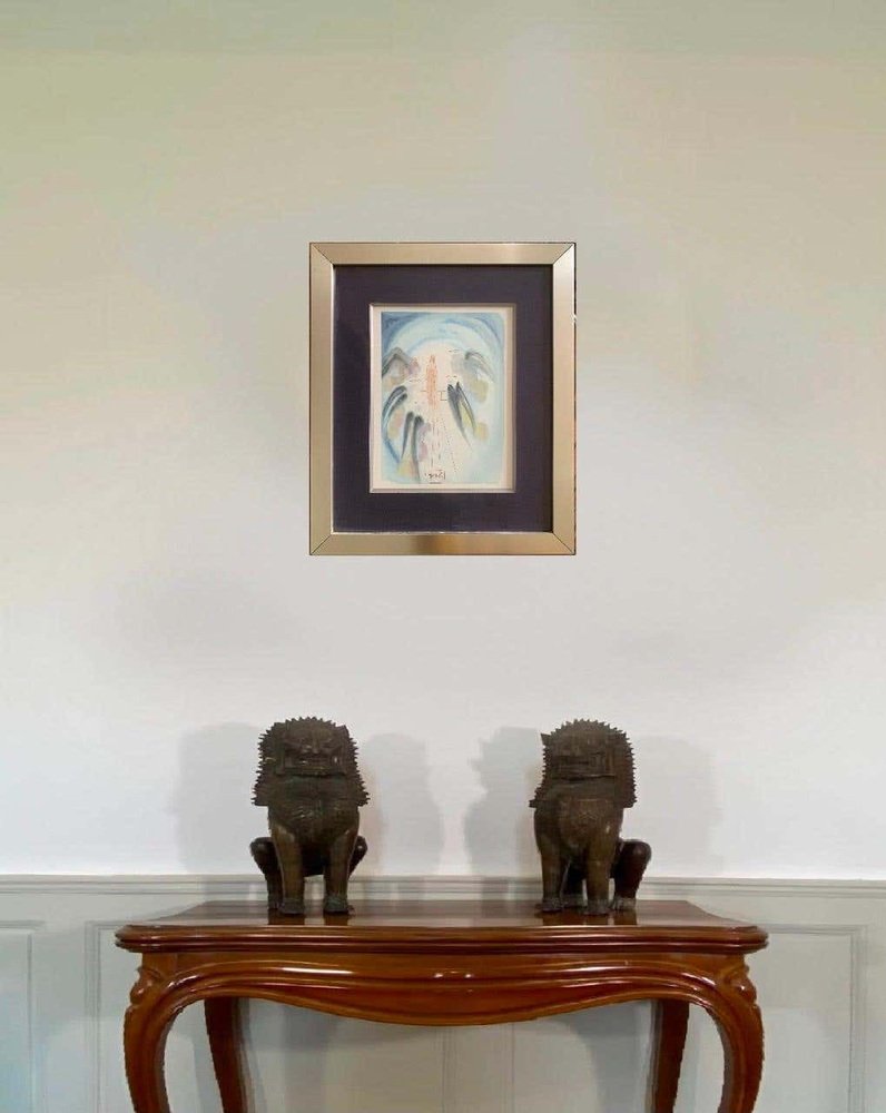 En 1950, el gobierno italiano encargó a Dalí que ilustrara la Divina Commedia (1307) de Dante Alighieri (1265-1321) para una publicación con motivo del 700 aniversario del nacimiento de Dante. Dalí realizó 101 acuarelas (1950 - 1959) que ilustraban cada uno de los 100 cantos de la obra maestra de Dante más una portada. Pero el público italiano se indignó ante el hecho de que un español ilustrara la obra de su gran poeta nacional, tenía que hacerlo un italiano.Dalí presentó entonces sus 101 acuarelas al impresor francés Jean Forêt, que aceptó publicar el texto de la Divina Commedia en francés con las ilustraciones de Dalí. Se necesitaron 50 meses (de abril de 1959 a noviembre de 1963) para grabar las cerca de 3.500 planchas de madera: se necesitó una media de 35 planchas para reproducir la rica paleta de colores de cada una de las 101 acuarelas.