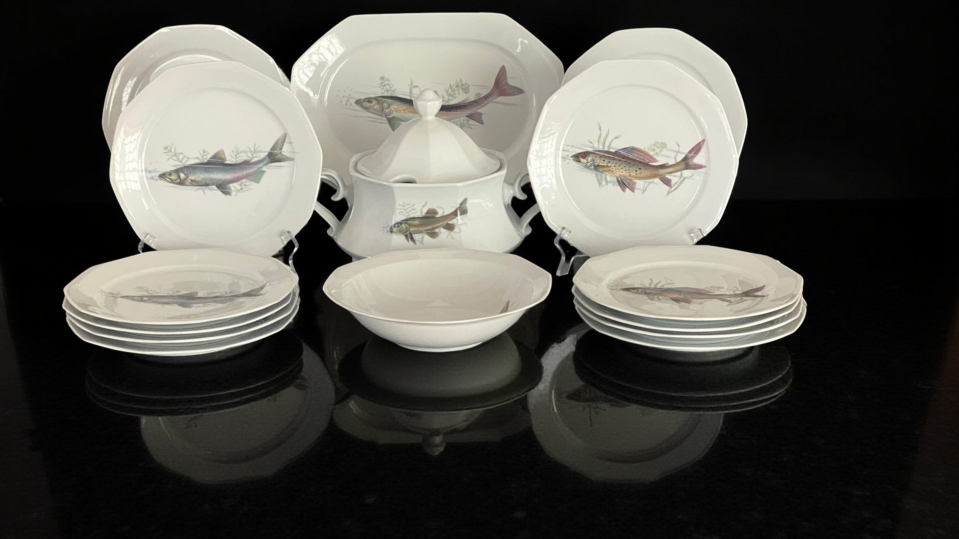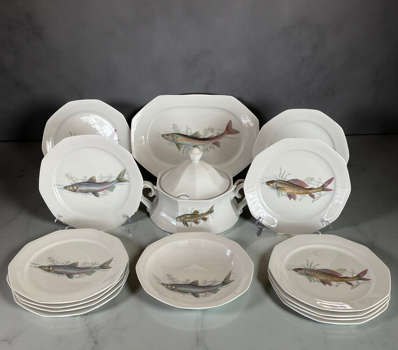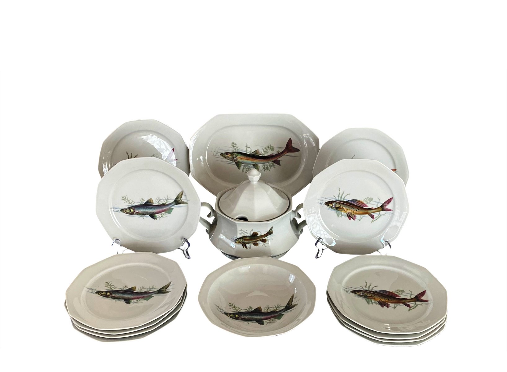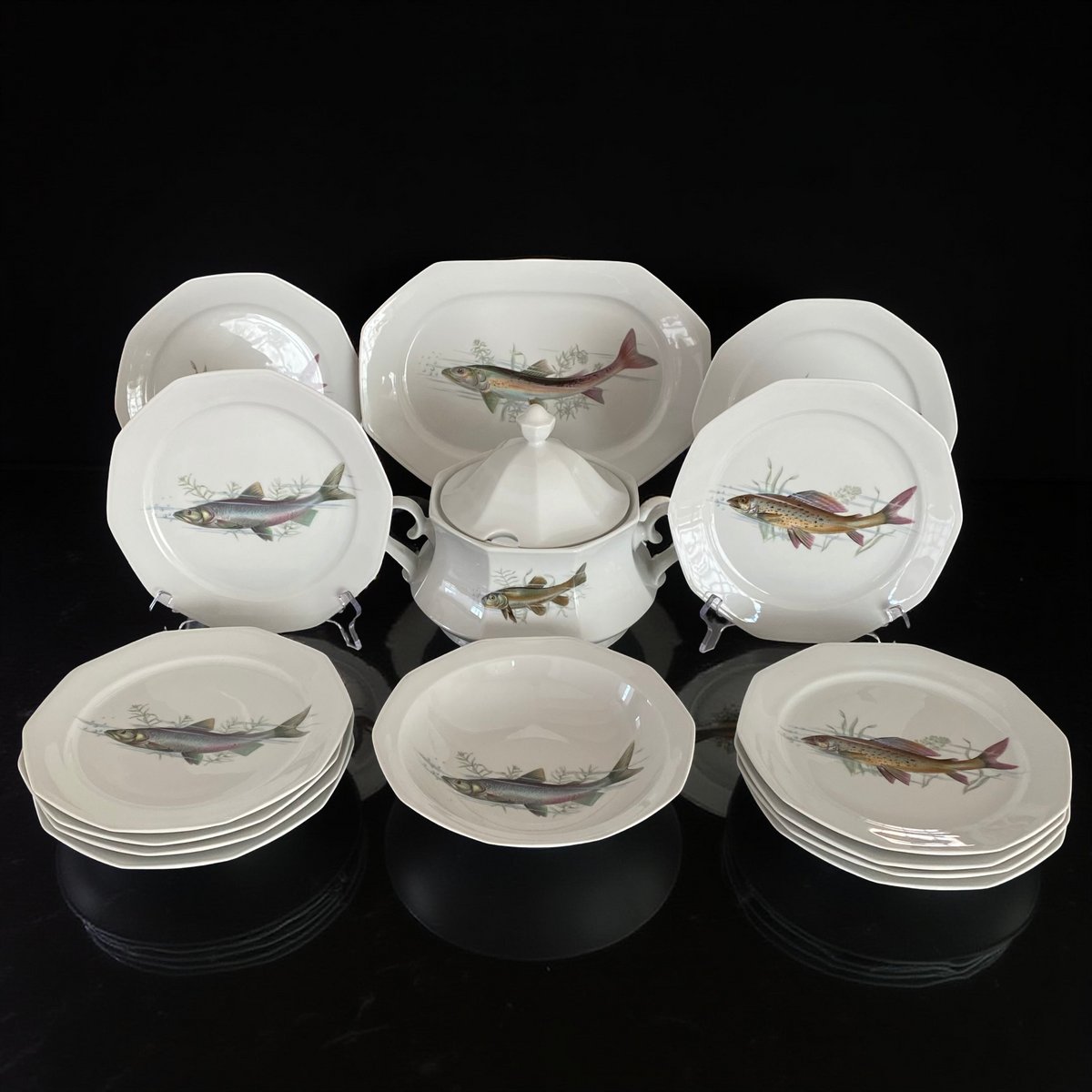 Porcelain fish service by Winterling Marktleuthen, Bavaria, Germany 1960s