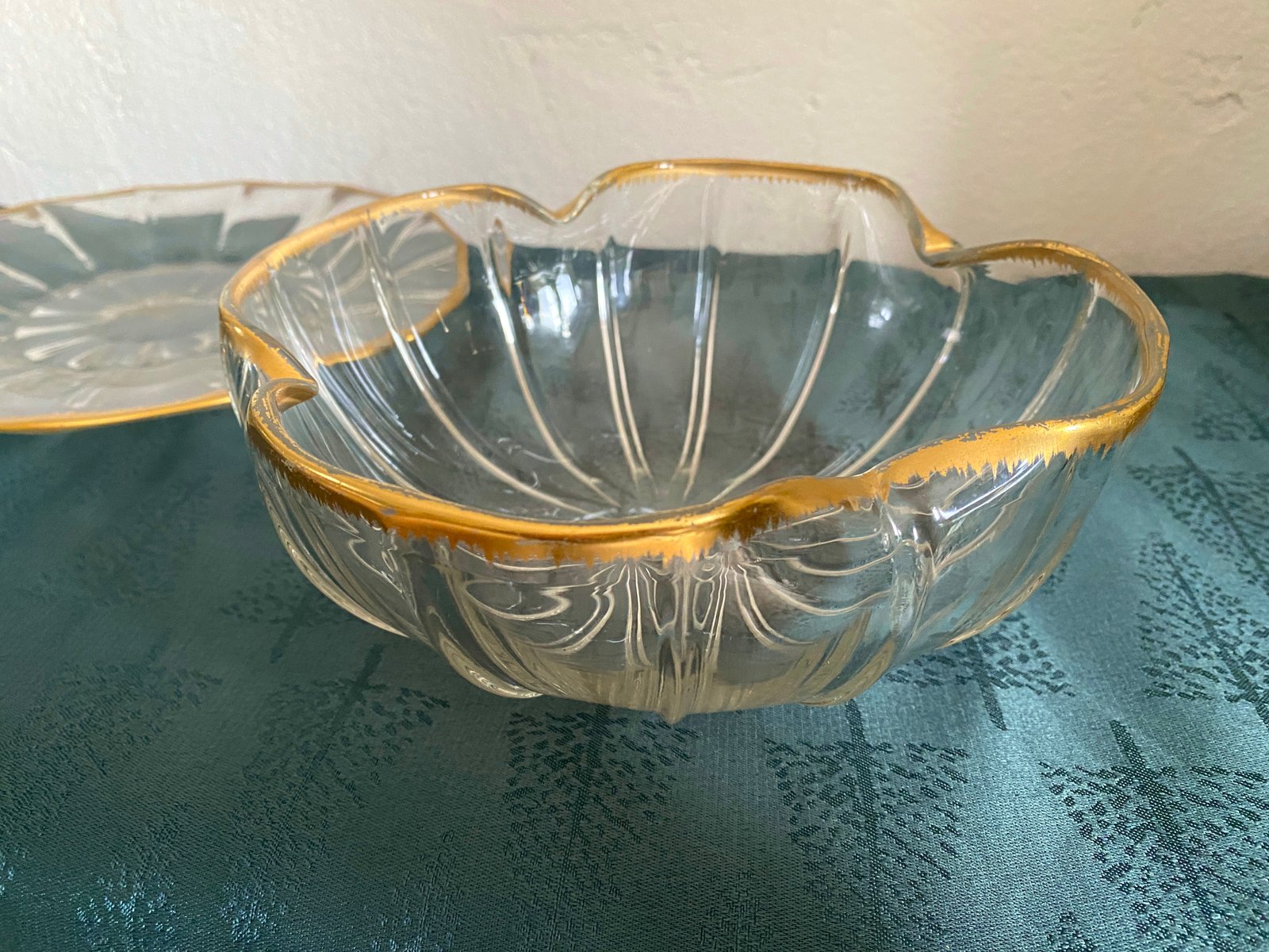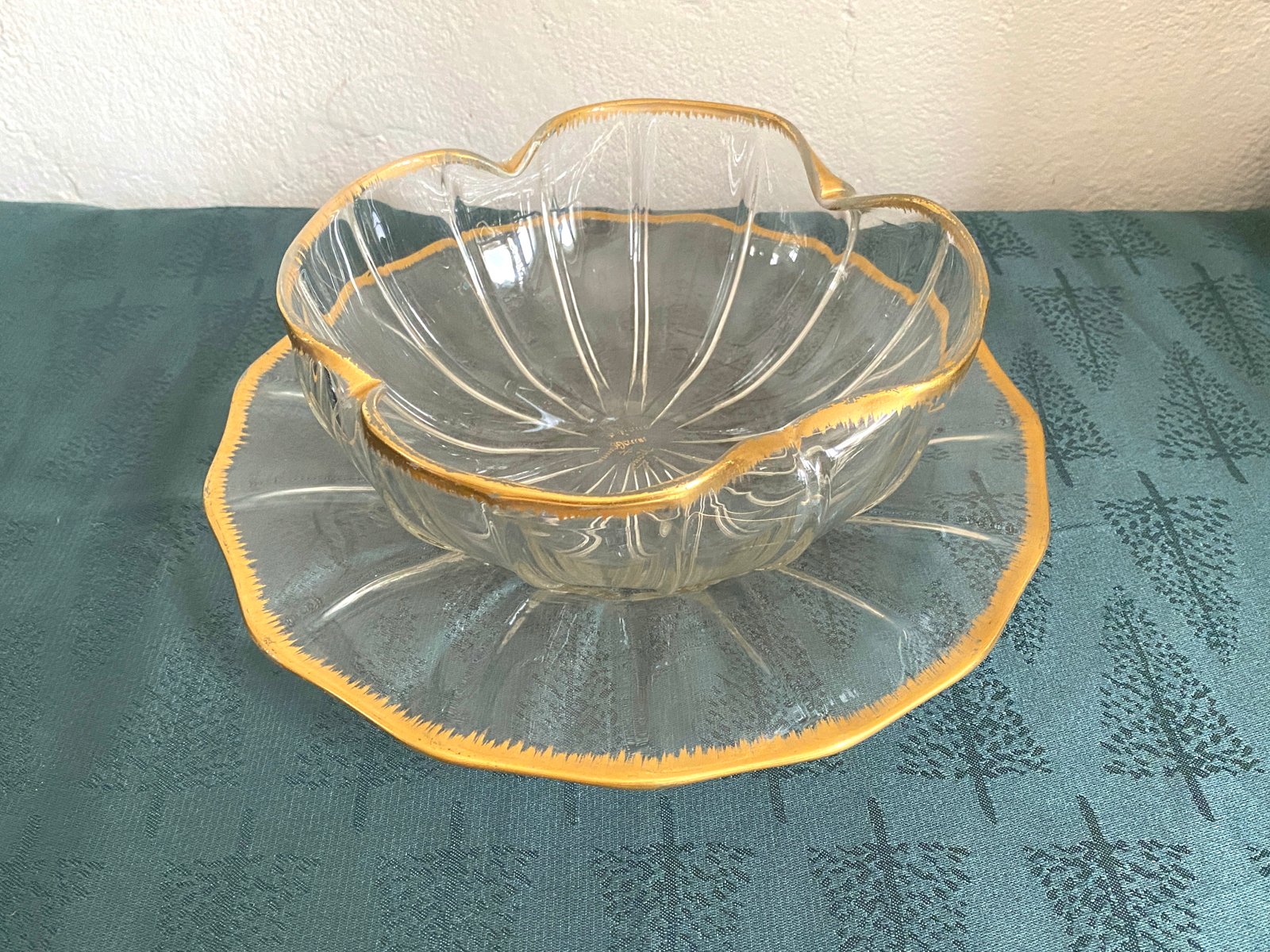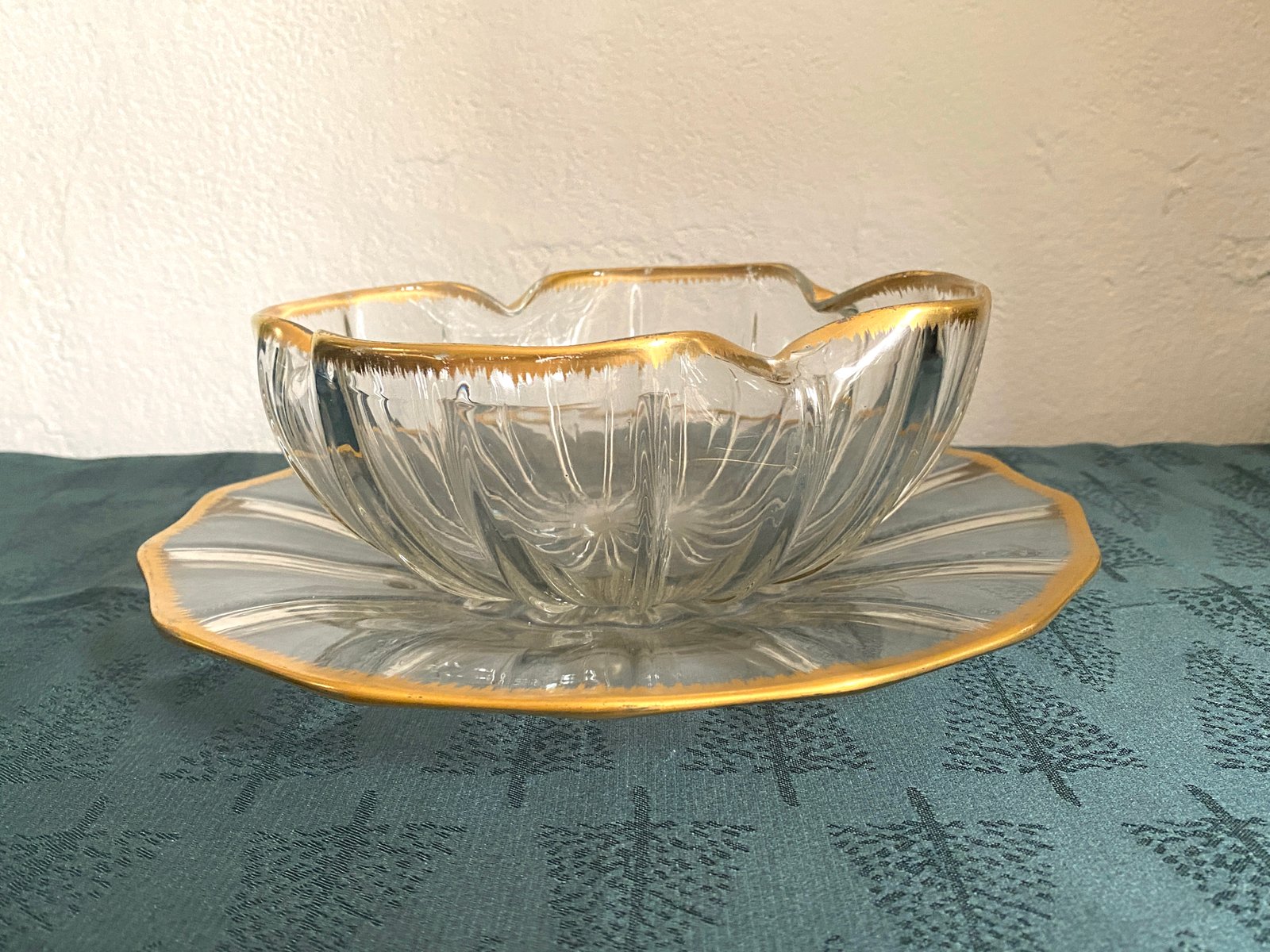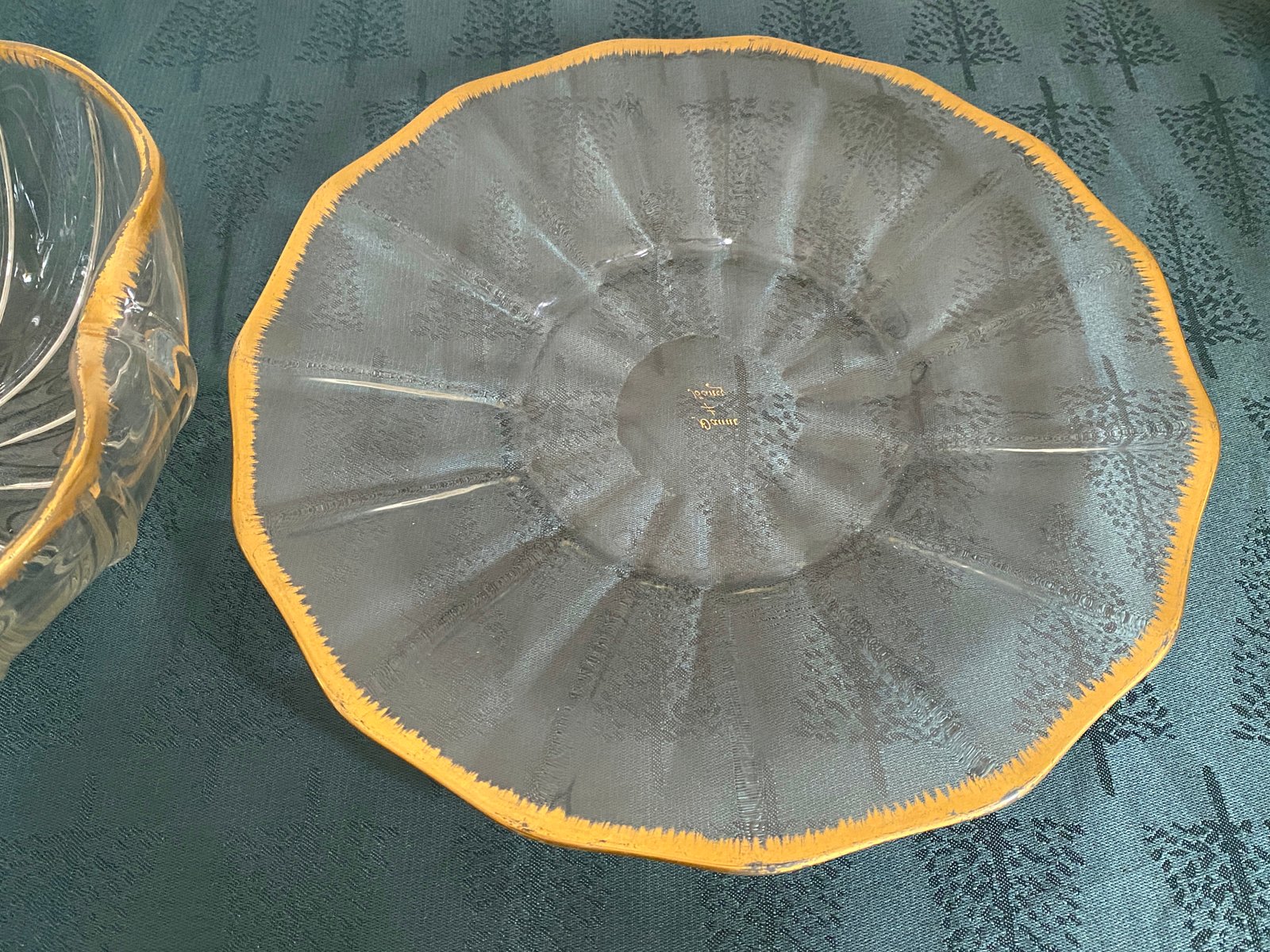 Servicio de taza y bandeja antiguo de cristal de Daum Nancy, década de 1800. Juego de 2
