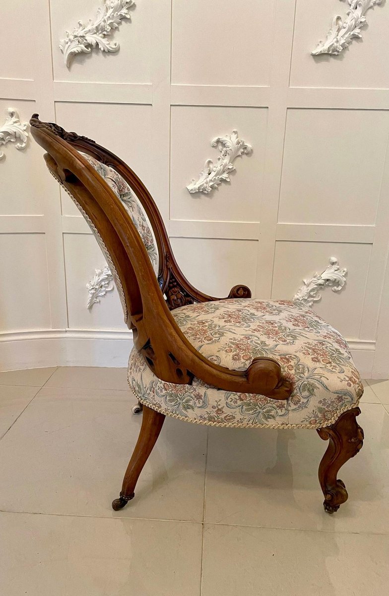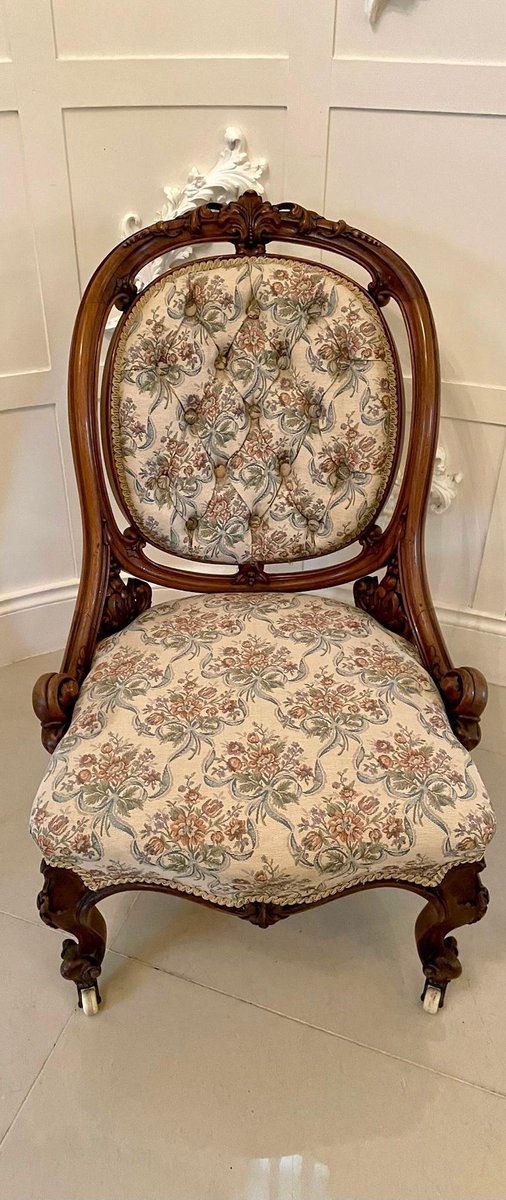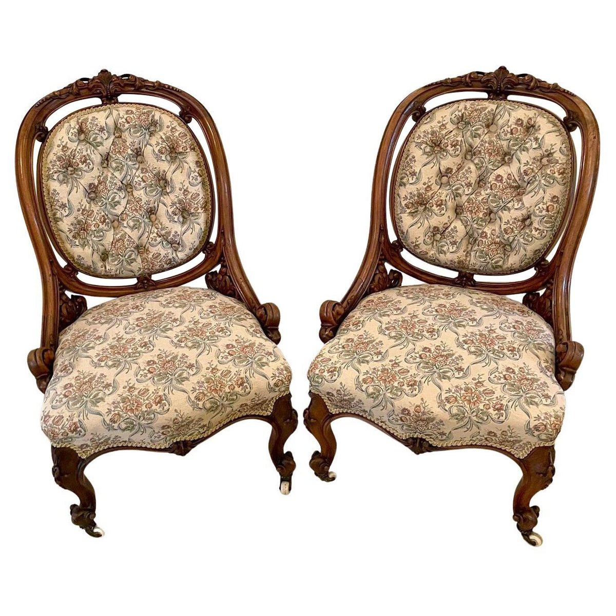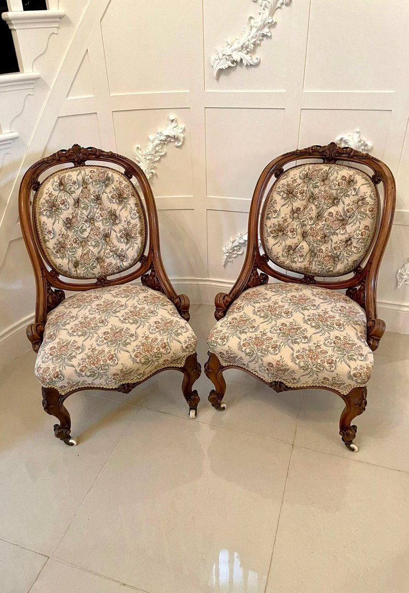 Sillas victorianas antiguas de nogal tallado. Juego de 2