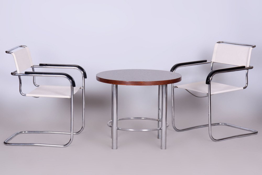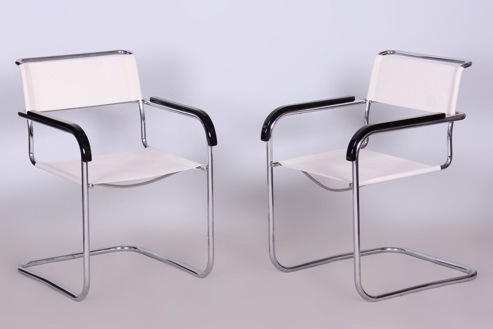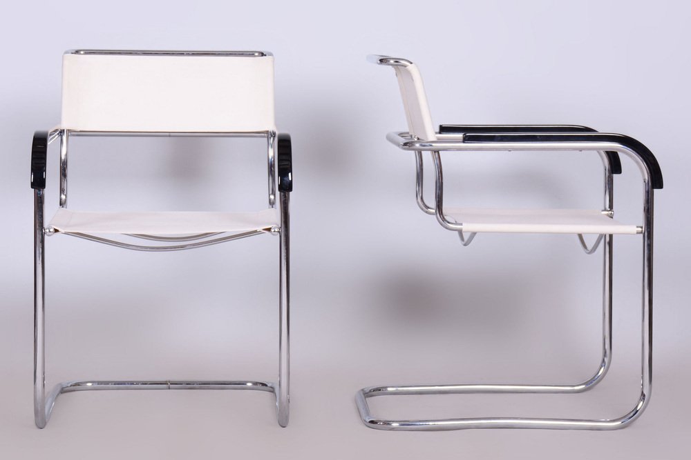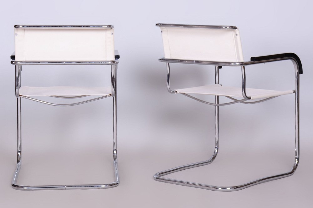 Butacas Bauhaus de cromo de M. Breuer para Thonet, Chequia, años 30. Juego de 2