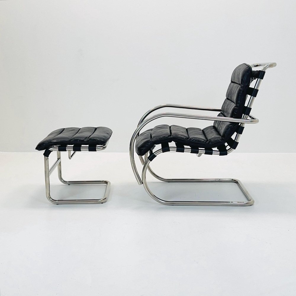 During the 1920s, Mies was active in Berlin’s avant-garde circles, participating in organizations like the Novembergruppe and Zehner Ring and contributing to the magazine G. He began studying and designing skyscrapers, which, while not built, portended future designs. He also directed the Weißenhofsiedlung exhibition in Stuttgart, a model housing colony project for which he invited the era’s most accomplished European architects to participate—including Walter Gropius and Le Corbusier—and 20 permanent residential buildings were built around his own steel-framed apartments, revealing a series of individual interpretations of workers’ housing. This project introduced him to Lilly Reich and the pair collaborated frequently over the next decade. His other major project of this era was the German (or Barcelona) Pavilion, built for the German section of the 1929 Barcelona International Exposition, which helped establish him on an international stage. Using glass and marble interior walls that could be easily moved, he merged interior and exterior spaces, emphasizing a fluidity of space and incorporating specially designed furniture, including the iconic leather and chrome Barcelona chair. Shortly after, in 1932, his work was included in the first architectural exhibition at the Museum of Modern Art in New York, entitled Modern Architecture: An International Exhibition, which helped introduce his work to an American audience. From 1930 to 1933, he served as Director of the Bauhaus; under political pressure from the Nazis, he moved the school from Dessau to Steglitz, Berlin and ultimately closed the school in 1933.