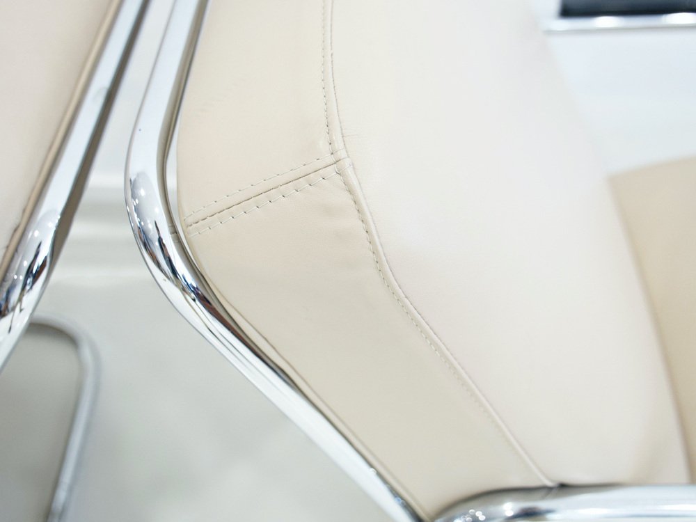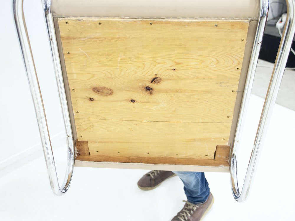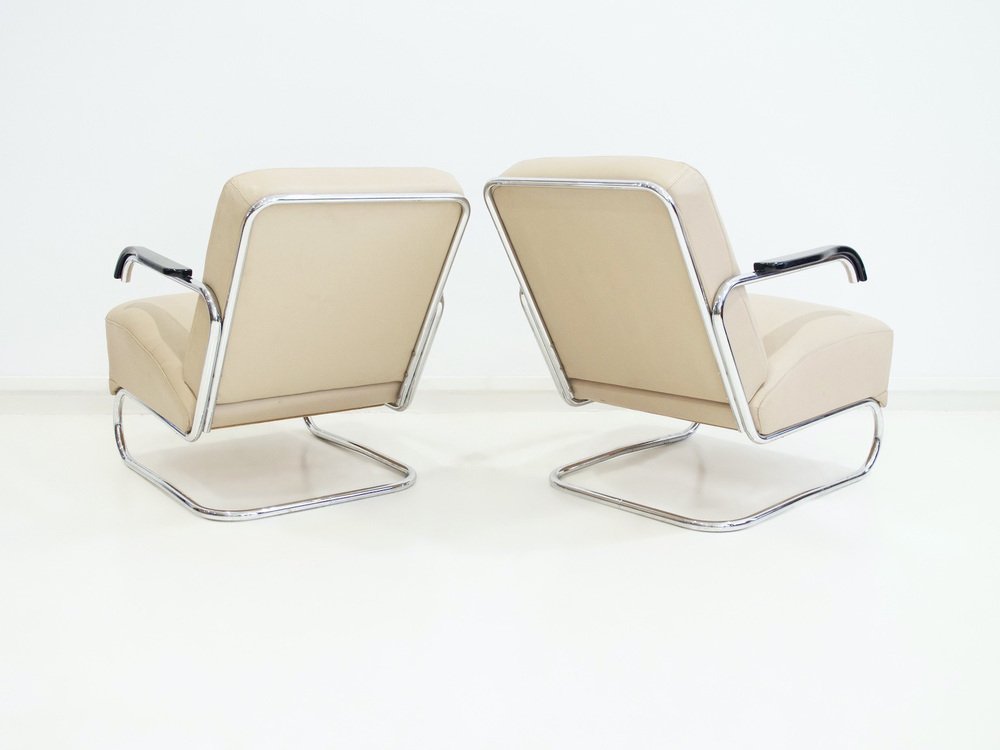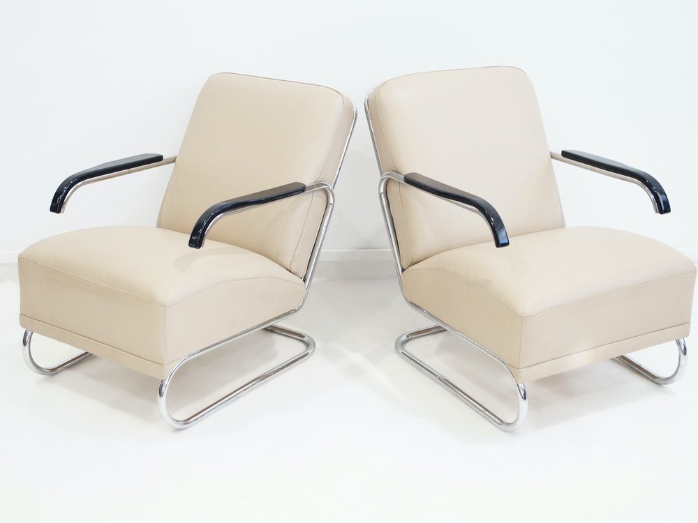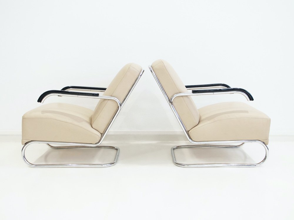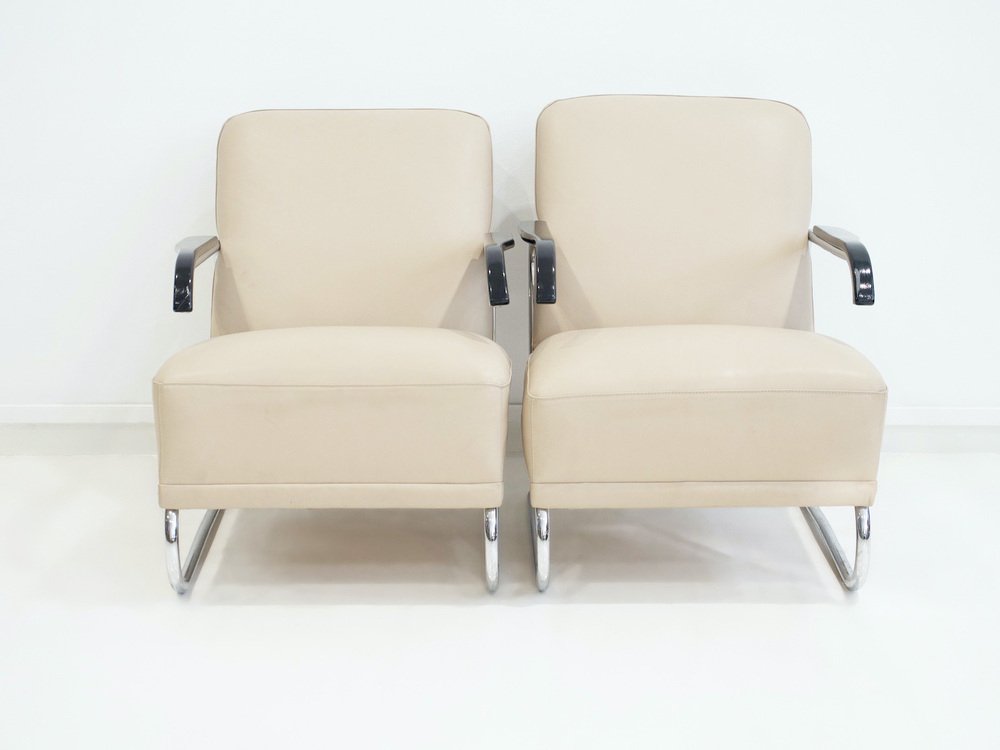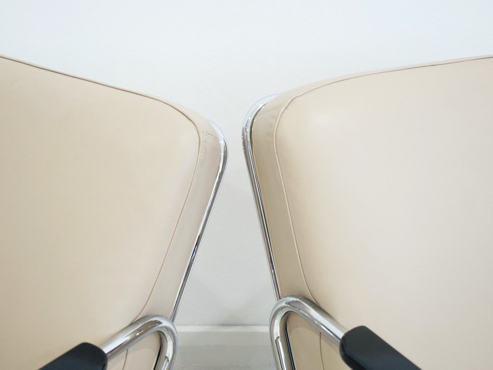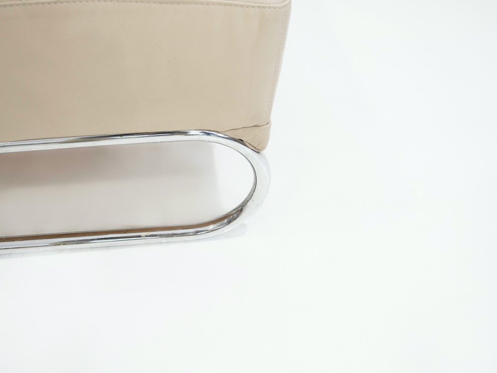 Sillones de cuero beige y acero tubular, años 70. Juego de 2