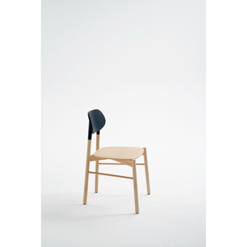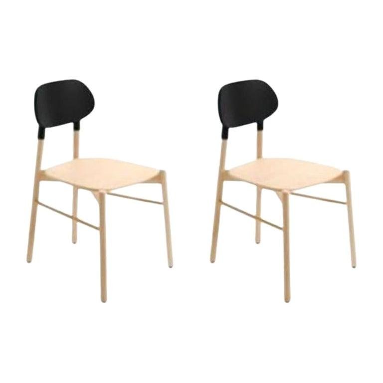 Set of 2, Bokken chair, natural beech, black by Colé Italia with Bellavista/Piccini Dimensions: H.81,7 D.49 W.53,5 cm Materials: Solid Beech Wood Structure, Plywood Lacquered Back Panel Also Available: Natural Beech Structure; Lacquered Back, Natural beech structure; Gold or Silver leaf back, Beechwood stained, Beech Structure Stained; Lacquered Back, Beech Structure Stained; Gold or Silver leaf back, An essential chair in the form yet precious in colors. Tapered and elongated, the legs of the seat are inspired by the bokken, a wooden replica of the Japanese sword used in the training of the Japanese martial art of Aikido and Kendo. Bokken chair is characterized by the backrest in precious colors: blue aquamarine, ruby red off-white, anthracite, and authentic gold or silver leaf, to match the structure of natural or walnut dyed beech wood. These chairs are customizable like all the brand’s products to meet the specific demands of the contract sector. Colé is a young Italian design brand, with a high-end production 100% made in Italy.