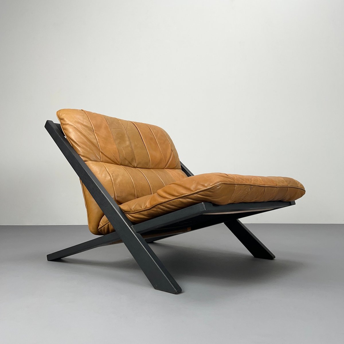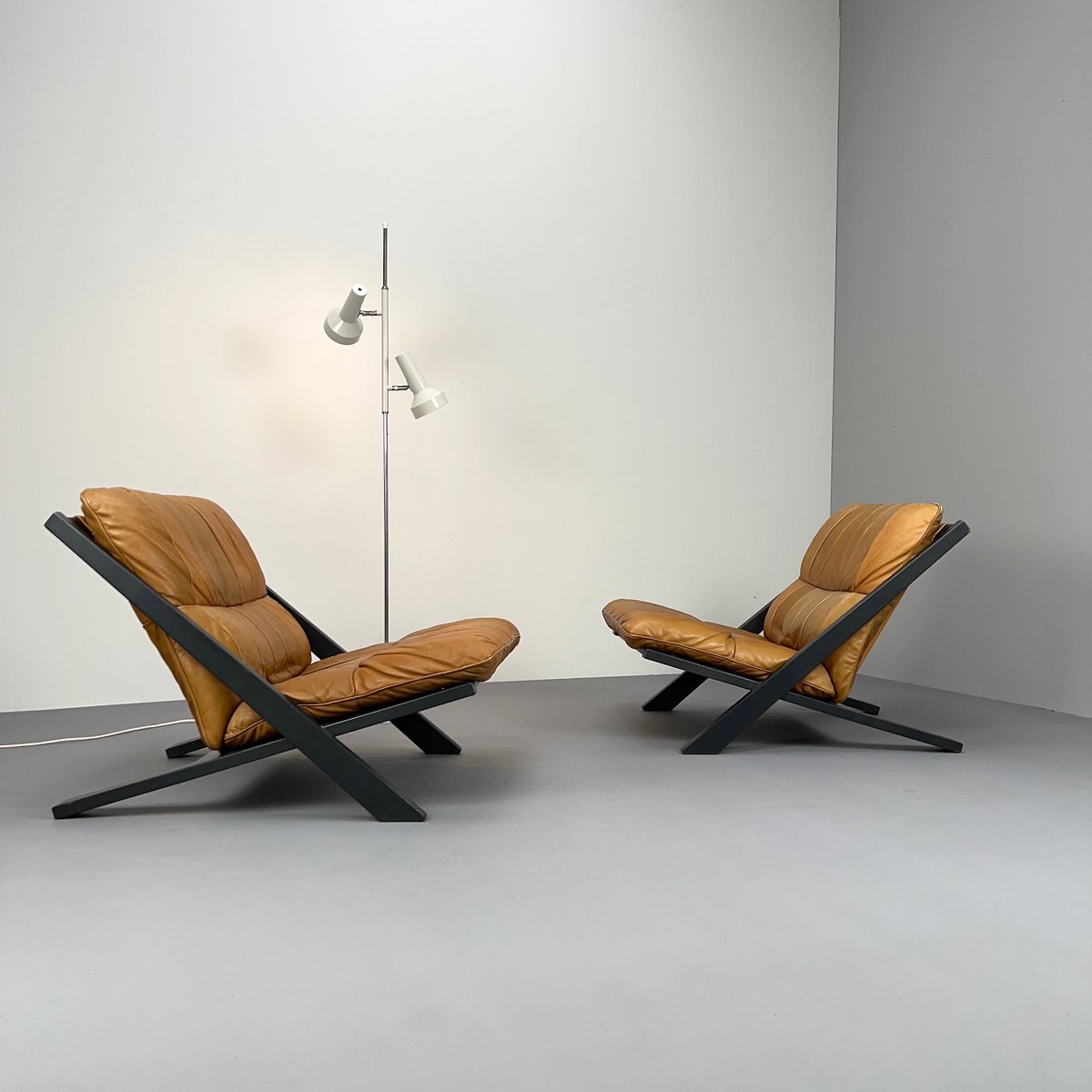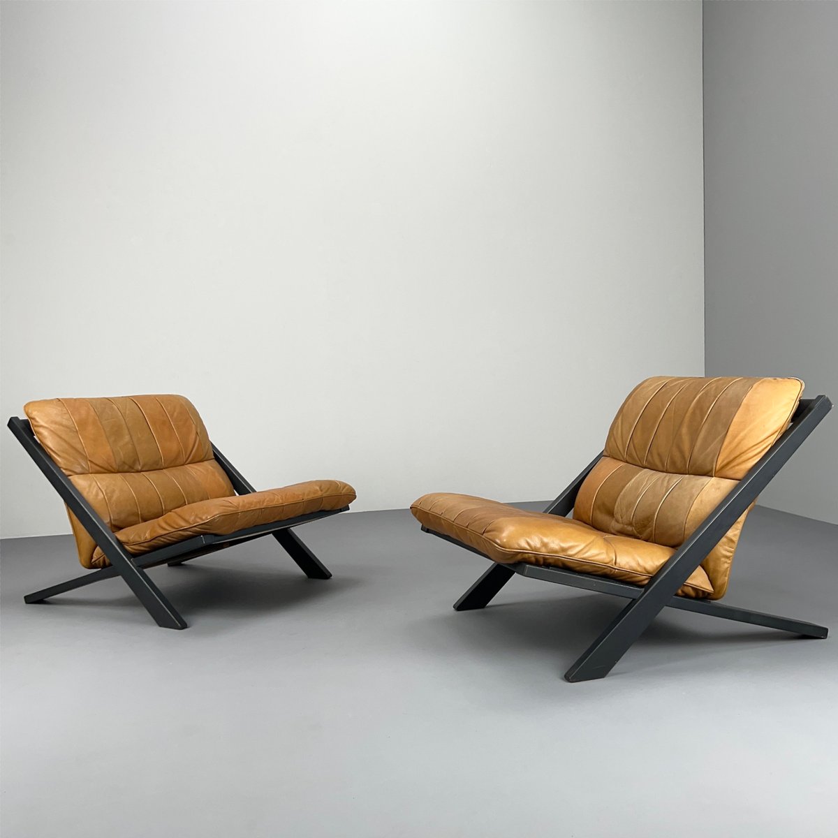 Butacas DS80 de cuero en color coñac de de Sede, Suiza, años 70. Juego de 2