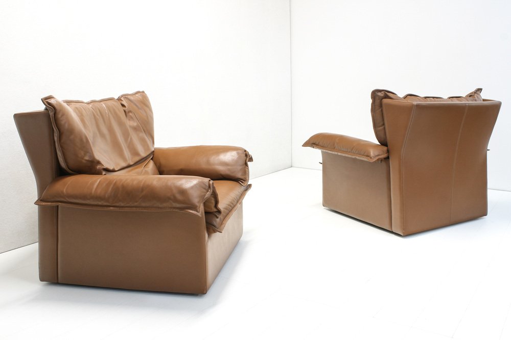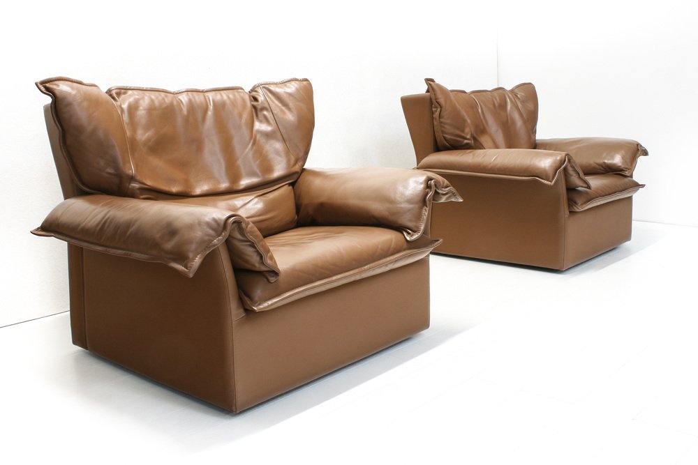 Butacas de orejas de cuero de Durlet, años 70. Juego de 2