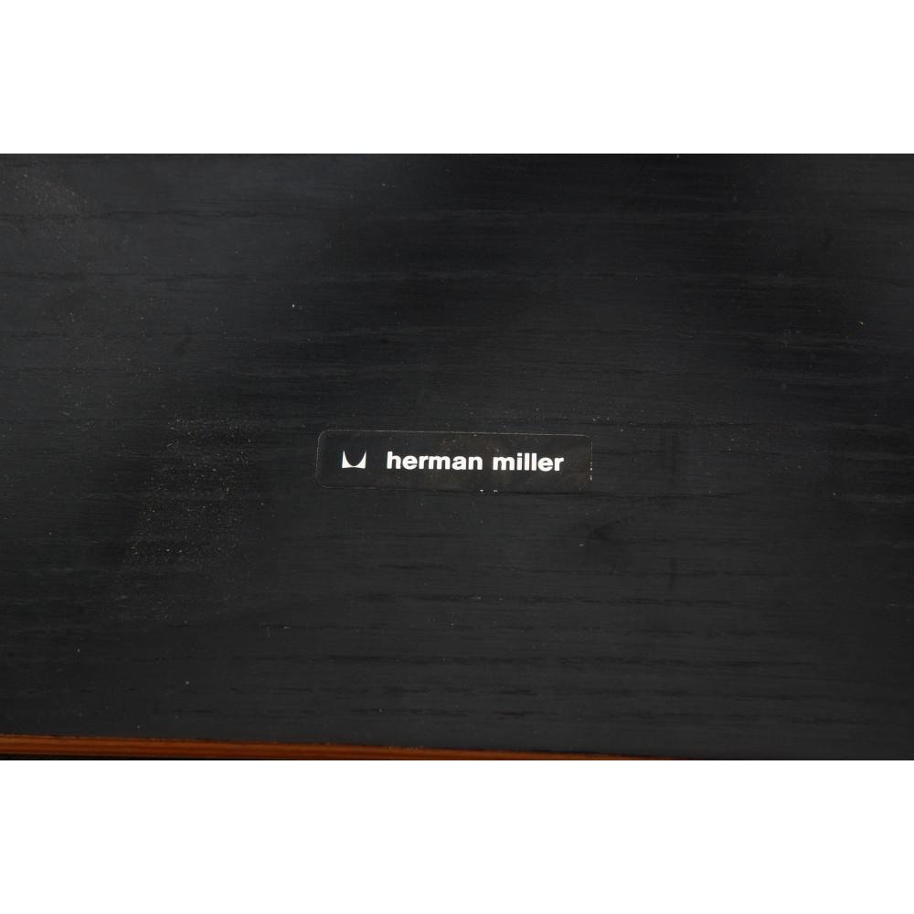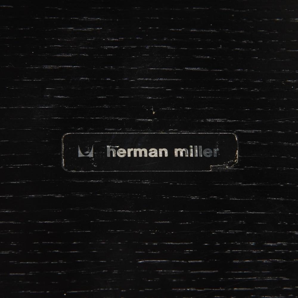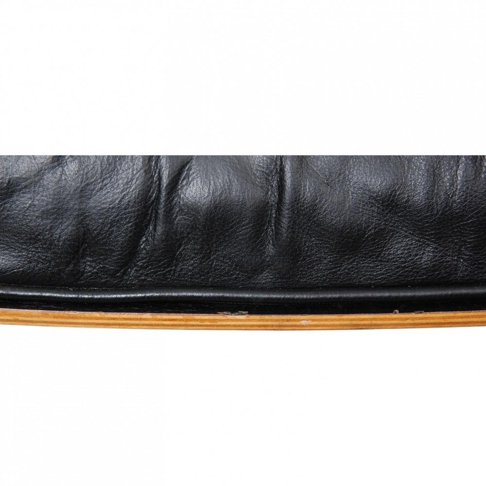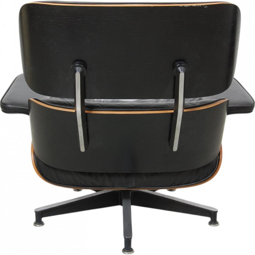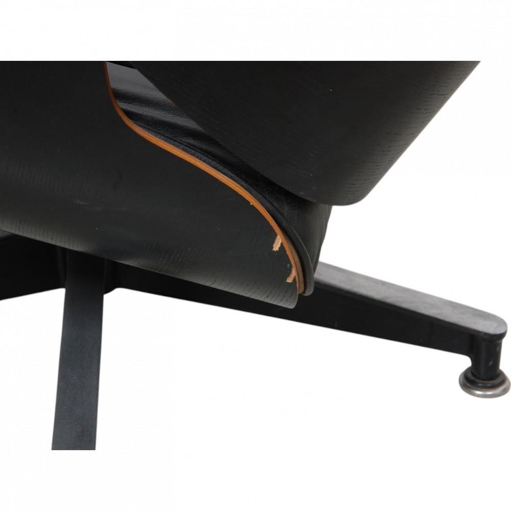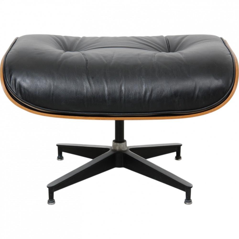 Sillón con otomana de cuero negro de Charles Eames, años 80. Juego de 2