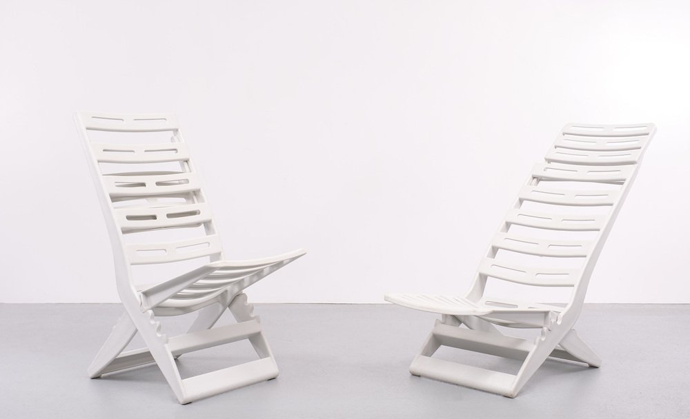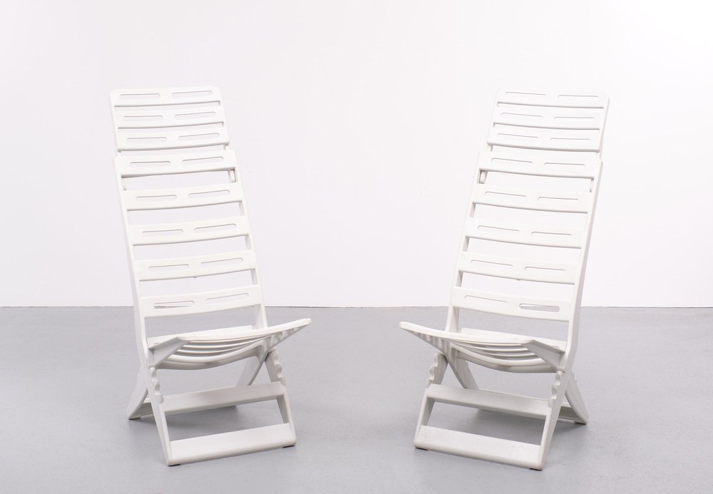 Two plastic folding design chairs (type Maratea) produced by the Italian manufacturer Fanini Fain (Ascoli Piceno).