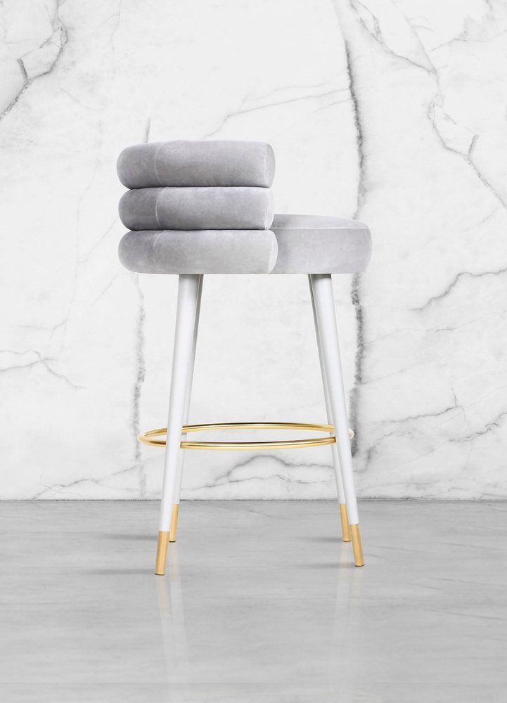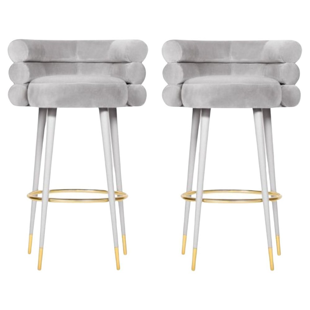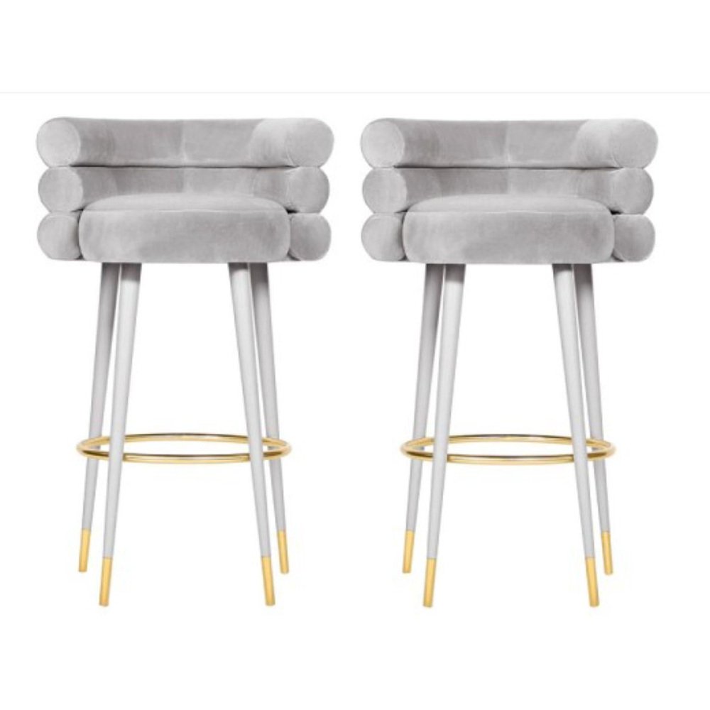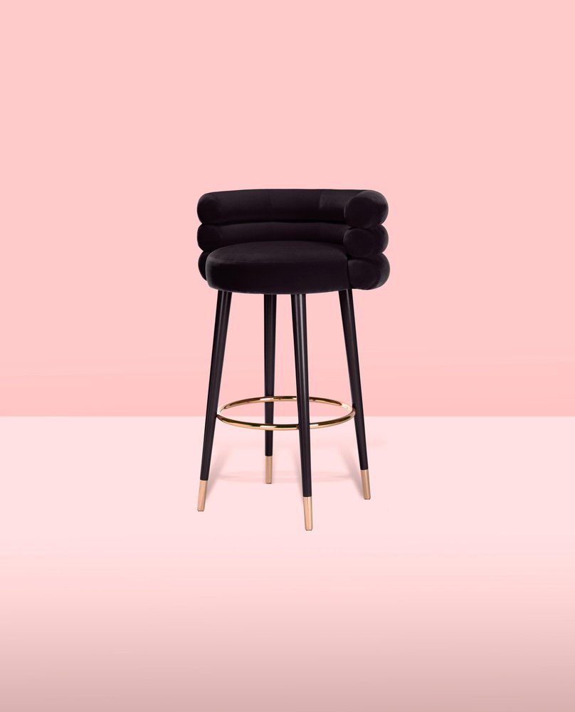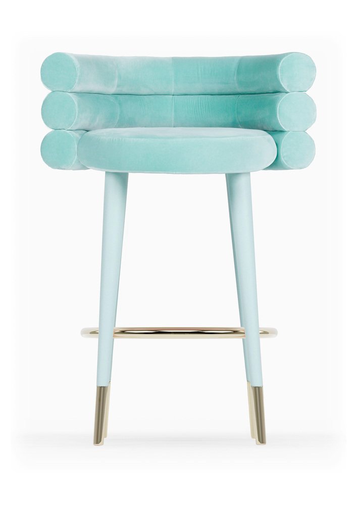 Set of 2 Marshmallow bar stools, Royal Stranger Dimensions: 100 x 70 x 60 cm Materials: Velvet upholstery, brass Available in: Mint green, light pink, royal green, royal red Royal stranger is an exclusive furniture brand determined to bring you the best unique pieces of art and design. Fusing design, art and the best craftsmanship, they strive to deliver the best state of the handmade art furniture. The design team works every day to create meaningful products that represent values such as passion, function, aesthetics and know-how. Values that are meant to represent Royal stranger’s DNA. This dedication is present at all stages of production and the combination of craftsmanship and innovative design contributes to our final purpose: to produce certified high-quality products, made with passion and expertise and using royal materials such as gold leaf, rich woods and high quality lacquers. It was in 2013, as an architects, that Sofia Santos & Rui Santos started to push the boundaries of innovation in several retail design concepts for some of the best stores in Portugal. This will has always been present in their work, and that’s how the brand was born.