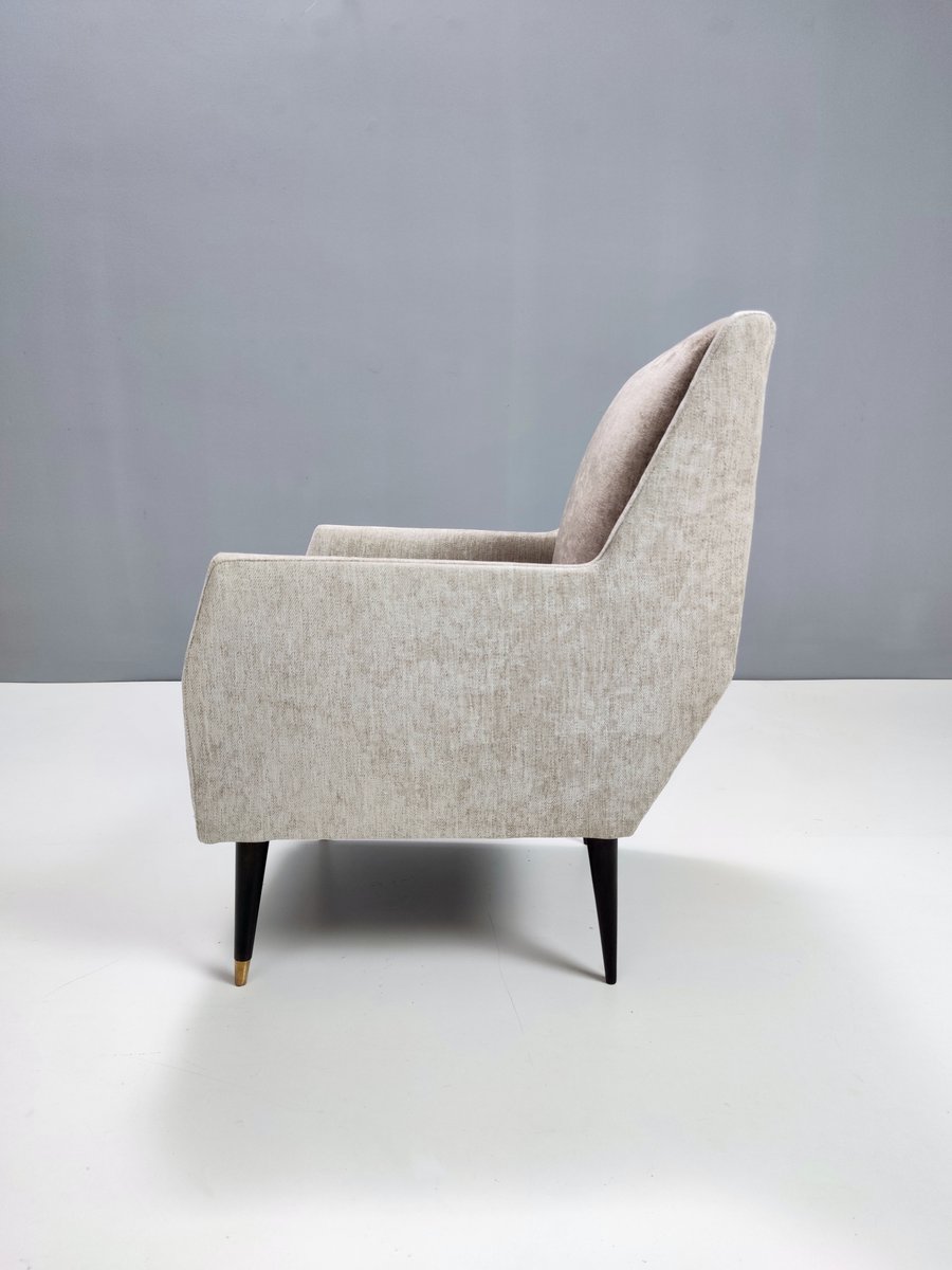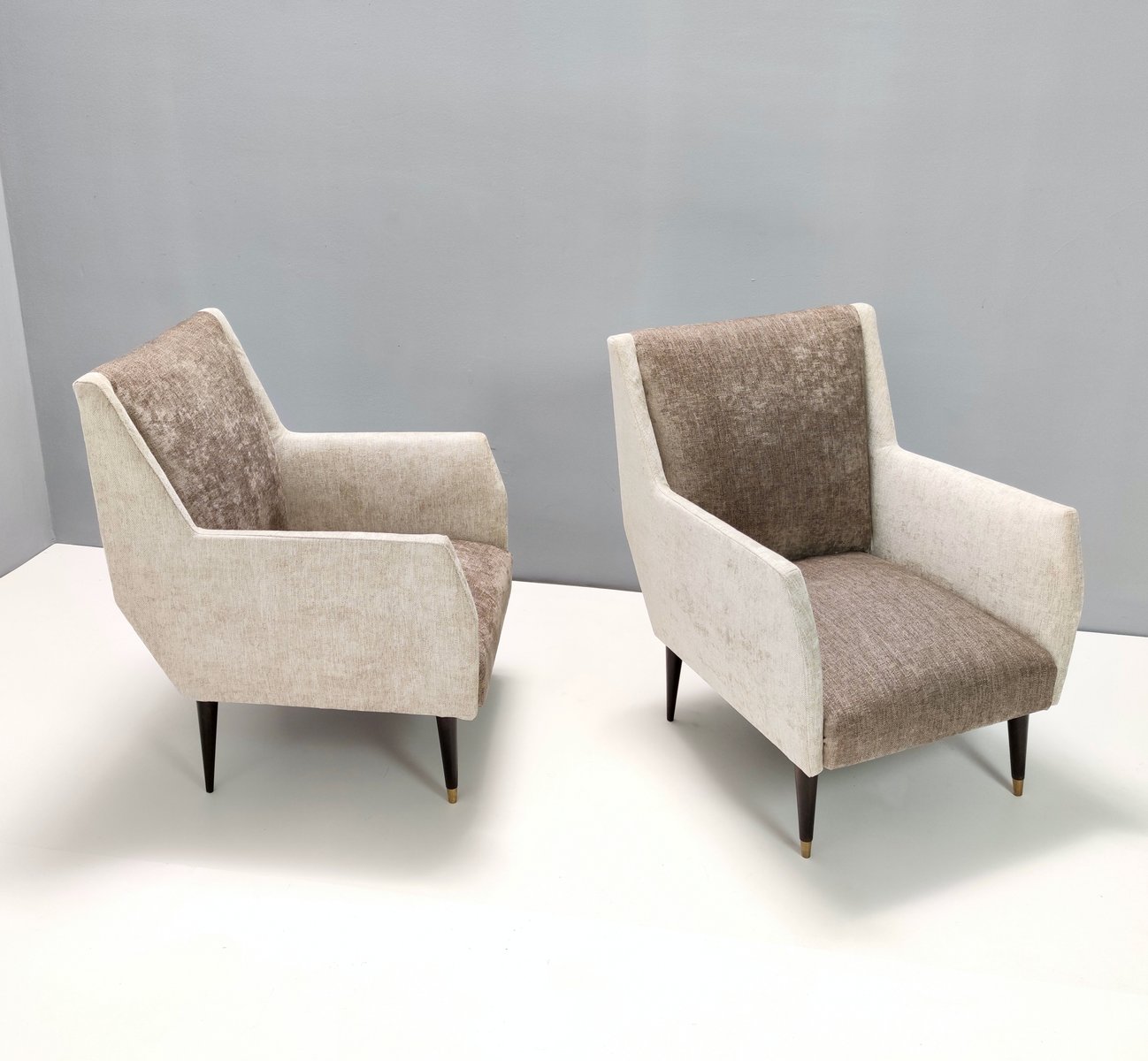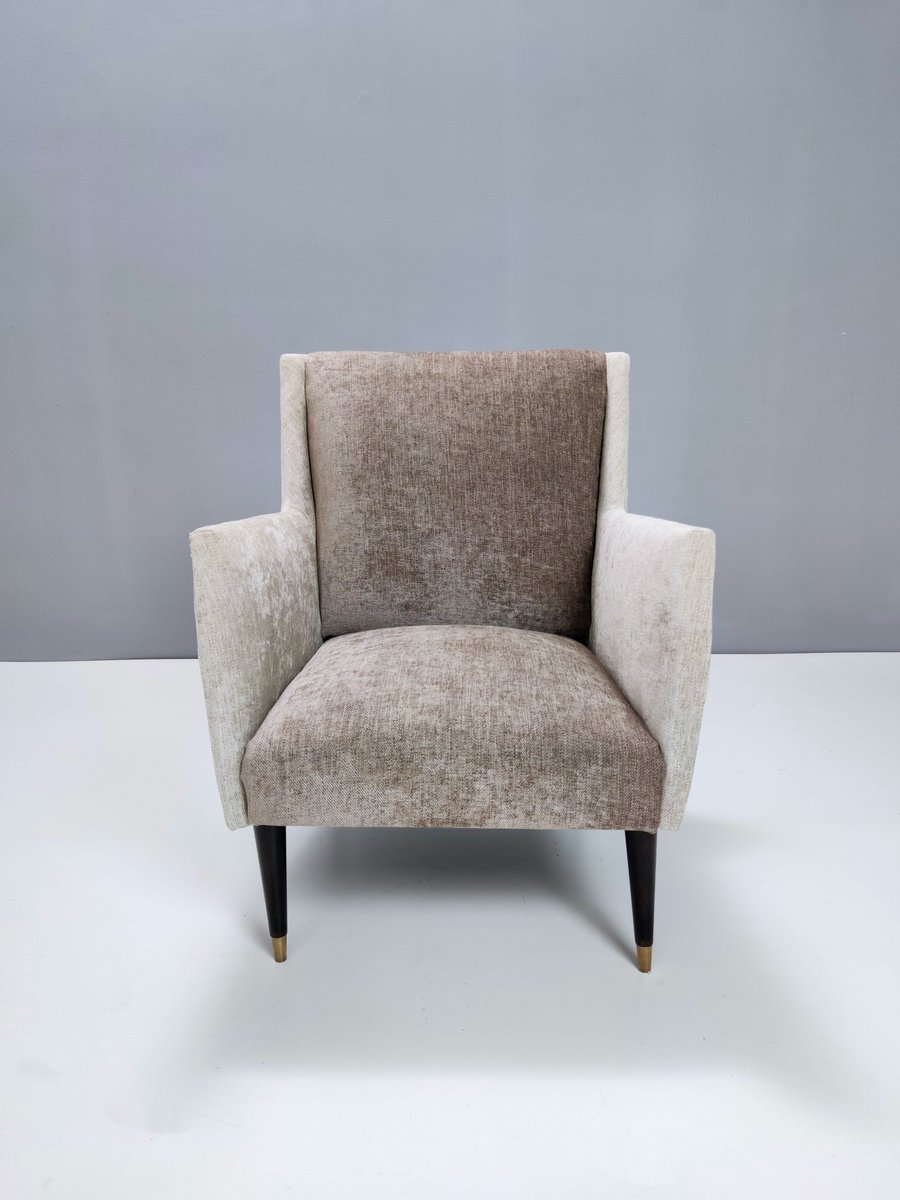 Butacas de terciopelo gris perla y taupe atribuidas a Carlo De Carli. Juego de 2