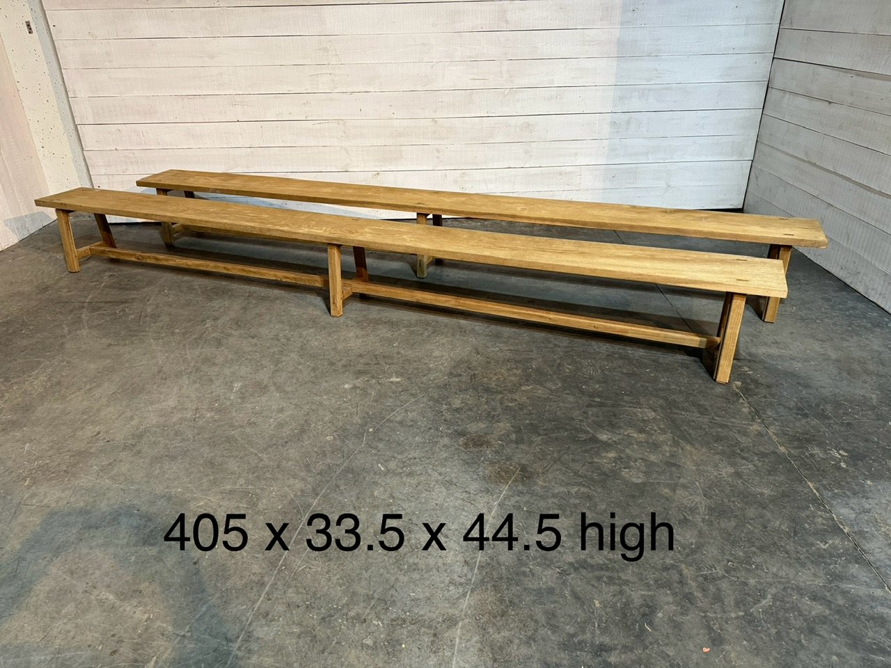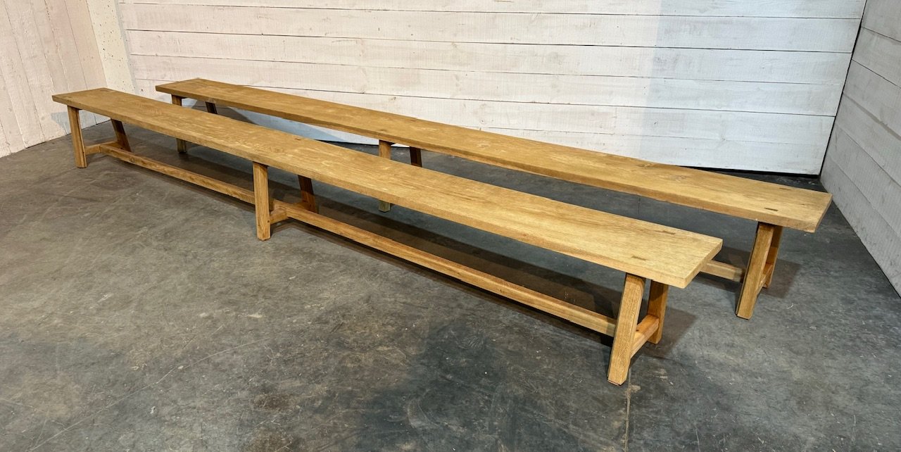 Bancos de comedor muy largos de roble, 1930. Juego de 2