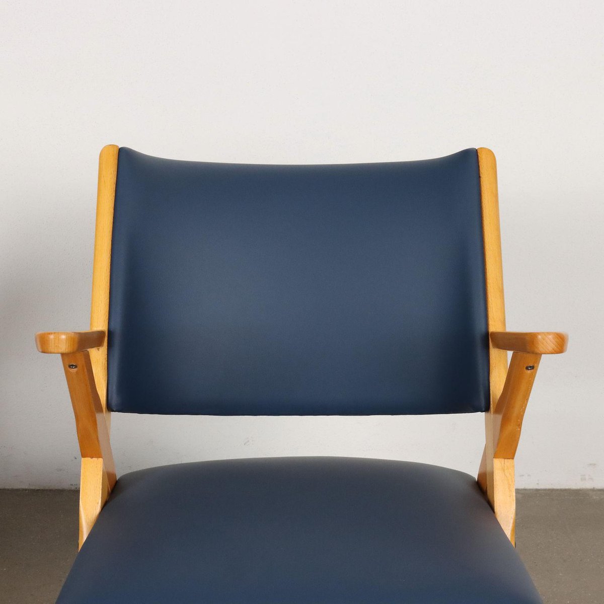 Butacas vintage de cuero sintético y haya, Italia, años 50. Juego de 2