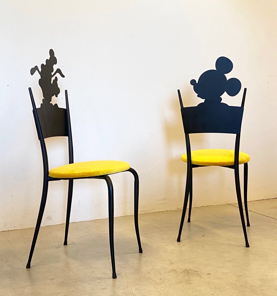 Sillas infantiles Mickey & Pluto vintage, años 80. Juego de 2