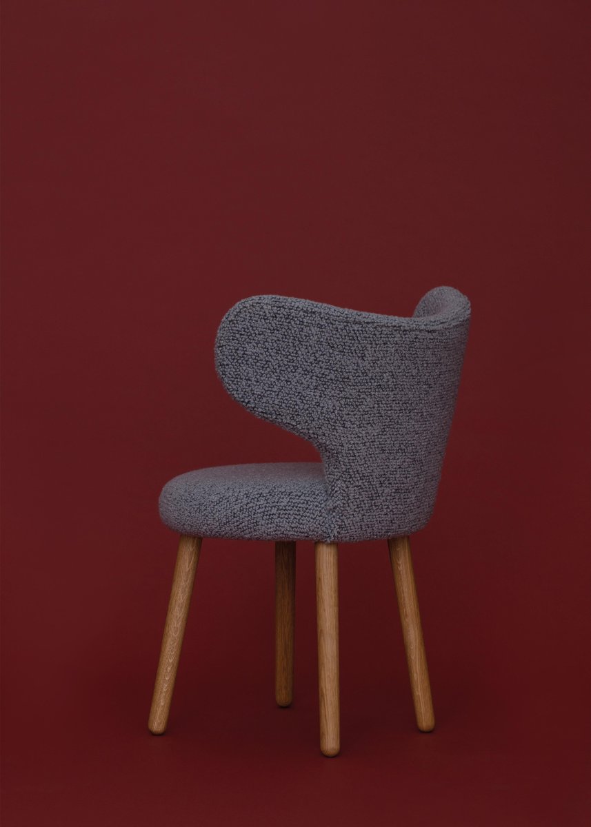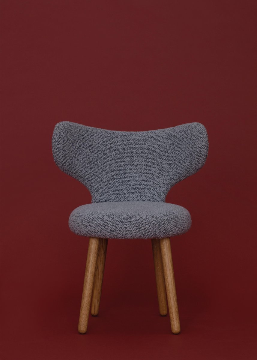 BUTE/Storr WNG chair by Mazo Design Dimensions: W 60 x D 50 x H 76 cm Materials: Oak, Textile Also Available: DAW/Royal, KVADRAT/Hallingdal & Fiord, KVADRAT/ Vidar, DAW/Mcnutt, DEDAR/Artemidor, Sheepskin. The WNG Chair’s rounded shape is puffed up with the upholstery, which enhances its childlike chubbiness, and invites you to sit, like a baby elephant tempting you to take a ride on its back.