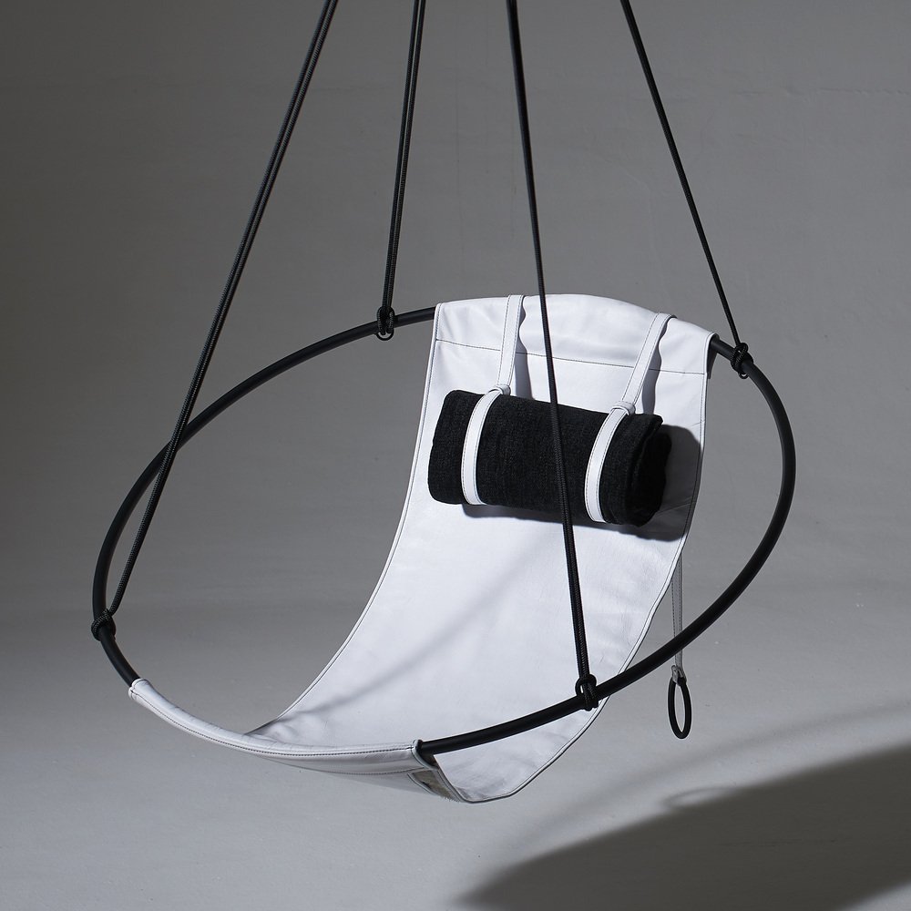 Despojada de todo exceso, esta silla colgante tiene una estructura circular con el asiento de cuero colgando suelto dentro de ella, para crear una experiencia elegante, sexy y oh tan cómoda. Las líneas limpias y la ligereza de esta silla la hacen perfecta para cualquier espacio