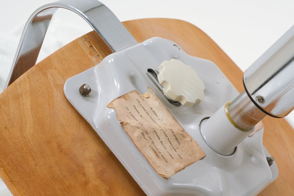 La silla está en muy buen estado, restaurada. El asiento y el respaldo presentan signos de desgaste propios de la edad (como arañazos) que no se han ocultado para preservar la autenticidad de la época. Los asientos se han pulido. En general, la pátina existente armoniza con el conjunto. El armazón cromado se ha limpiado cuidadosamente y se ha abrillantado con cera.