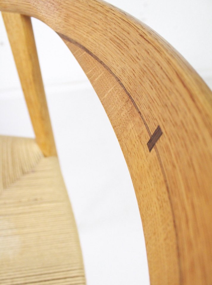 Championing modernism, craftsmanship, and Nordic functionality in combination with the unexpected influence of Chinese furniture, Wegner designed over 500 chairs in his lifetime. Over 100 of these were produced, and several became icons in the international furniture design arena, including: the Peacock Chair (1947); the Wishbone Chair (1949); the Round Chair (1949)—which the American magazine Interiors called “the world’s most beautiful chair” (and was featured in the first ever televised presidential debate between John F. Kennedy and Richard Nixon in 1961); the three-legged Shell Chair (1949)—which was designed for MoMA’s historical competition on low-cost furniture; Papa Bear Chair (1950); Flag Halyard Chair (1950); Dolphin Chair (1951), the Valet Chair (1953); Ox Chair (1960); and Wing Chair (1960). His designs were at once functional and graceful; his solid wooden chairs, for example, featured limbs that elegantly tapered and curved, and which were often paired with woven rattans or leathers. Wegner utilized traditional construction techniques, mixing materials such as plywood, metal, upholstery, caning, and paper cord.