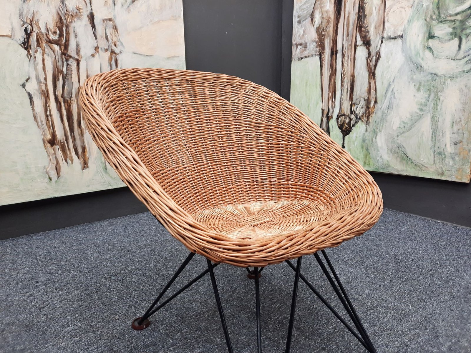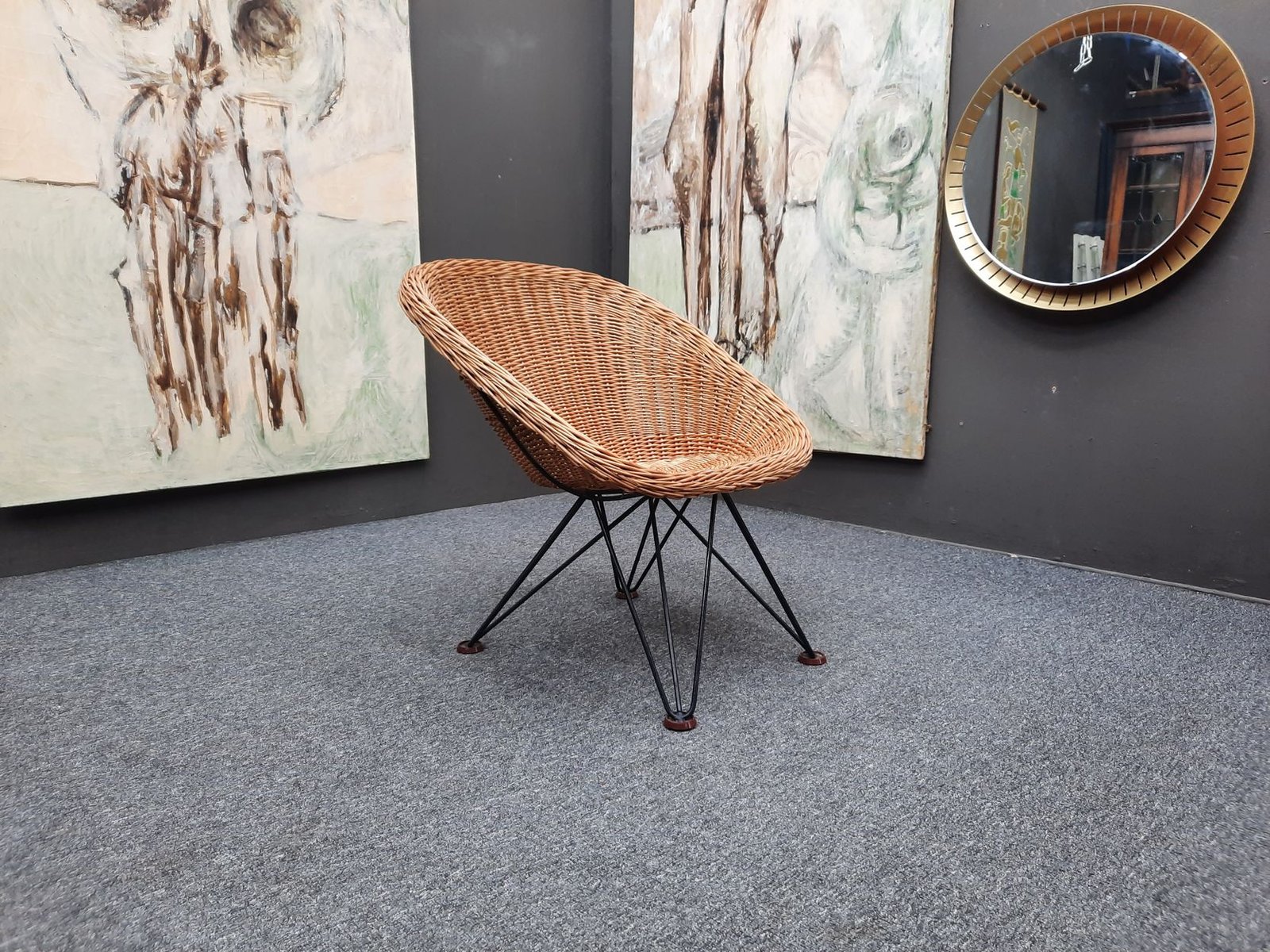 Silla Mid-Century moderna de mimbre de Teun Velthuizen para Urotan, años 50