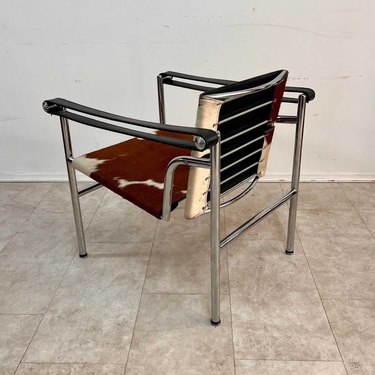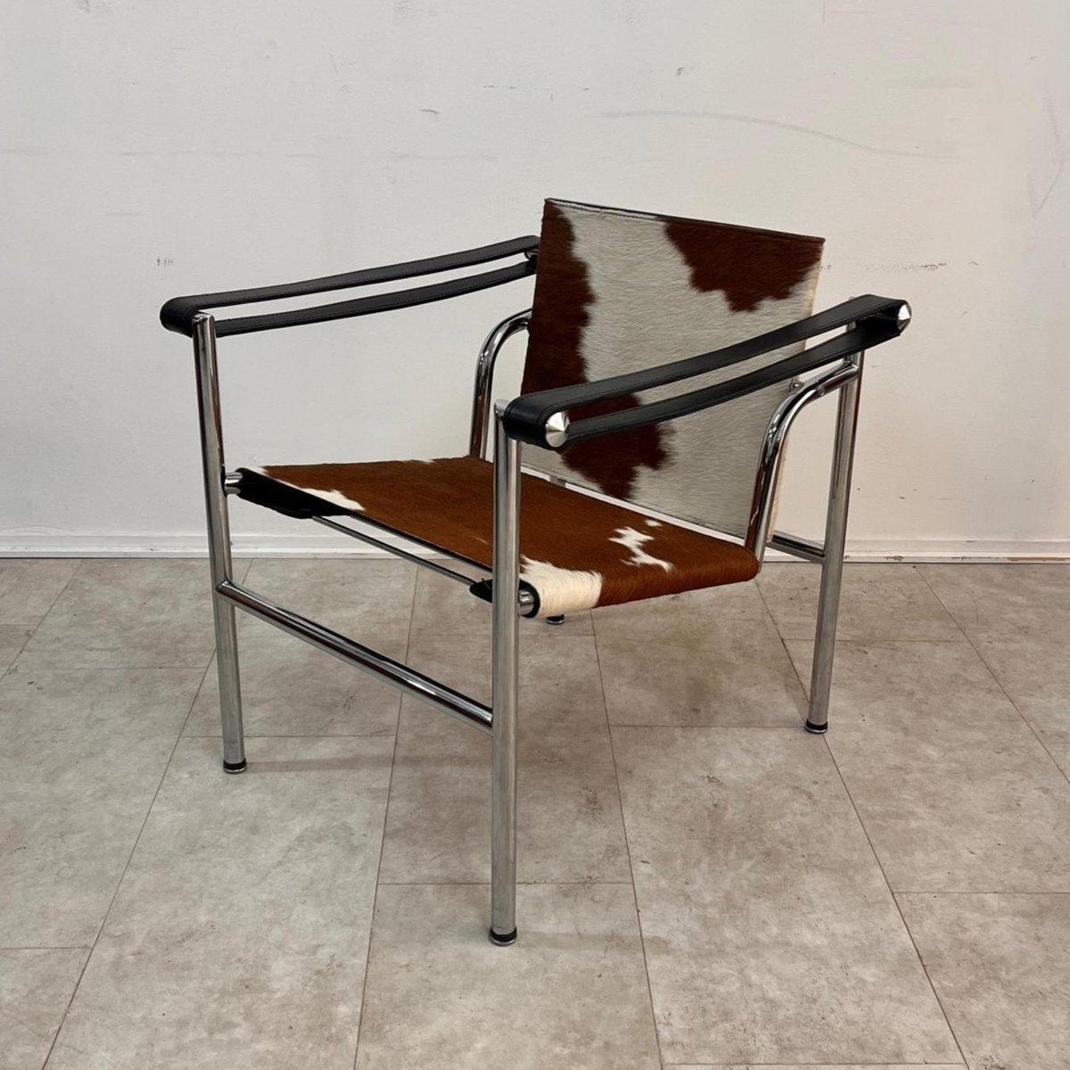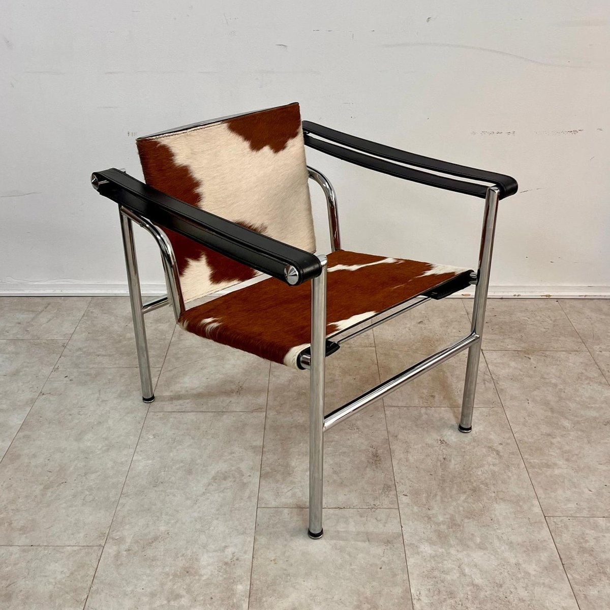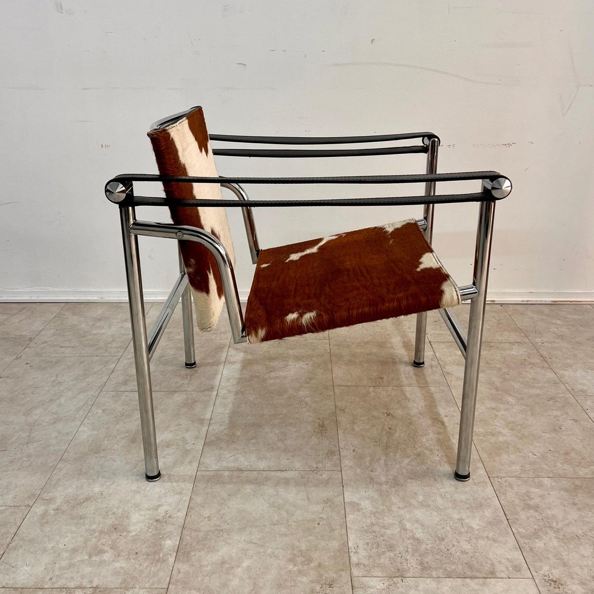 Silla Sling LC1 de cuero Ponyskin atribuida a Le Corbusier para Alivar, años 80