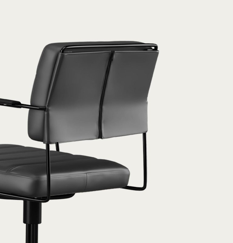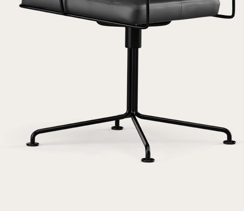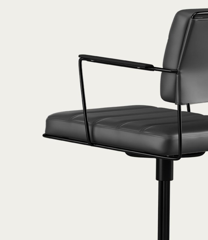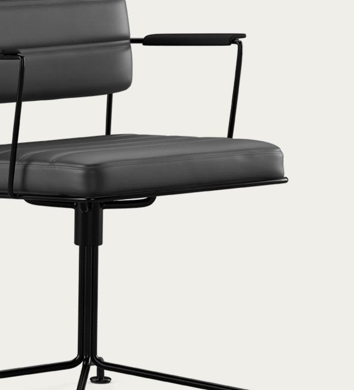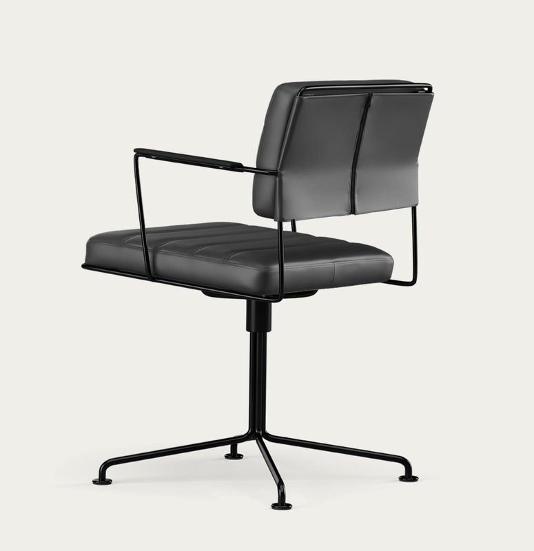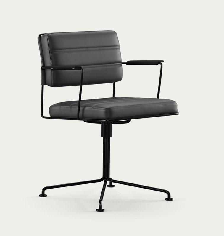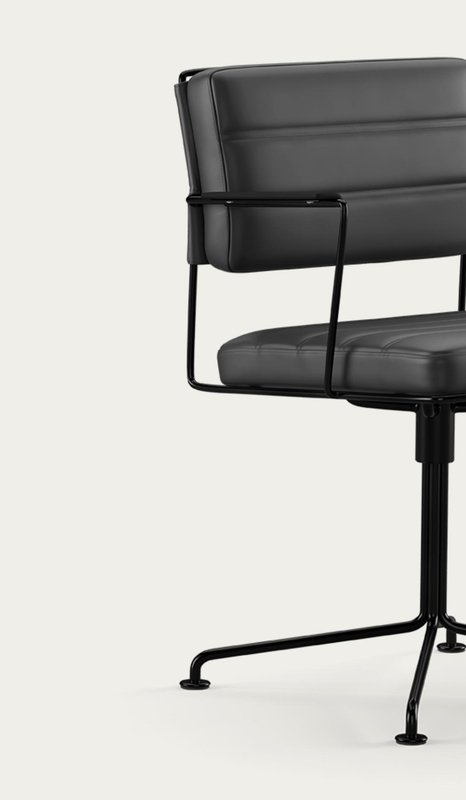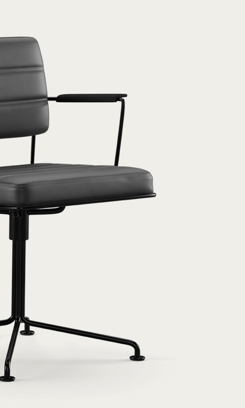 Henrik Tengler Time Chair Frame: Black, Upholstery: Black For One Collection The Time Chair, designed by Henrik Tengler in 2012, is a dynamic and comfortable conference chair. Its design deliberately diverges from passing trends, instead embracing the cosmopolitan functionalism of the Bauhaus period. The chair features an innovative steel construction that balances aesthetics and strength while maintaining a minimalist appearance. Its ergonomic design ensures a comfortable and supportive seating experience throughout the day. The Time Chair is available in either chrome or black-painted steel with upholstery in leather or textile. Additionally, you can choose between two configurations: one with four legs and a swivel function or another with five legs, wheels, and an adjustable seat. General Info Design by: Henrik Tengler Year: 2012 Dimensions: W 57cm x D 55cm x H 80cm Seat height: 46cm Specifications Model and materials: HT 2012 Chrome or black painted, 4-star frame with feet, incl. swivel. Upholstery: Fabric or leather. To the naked eye, the Time Chair may appear simple and minimalist in its appearance. However, behind its simplicity lies a design that pushes the boundaries of how a chair can be composed.