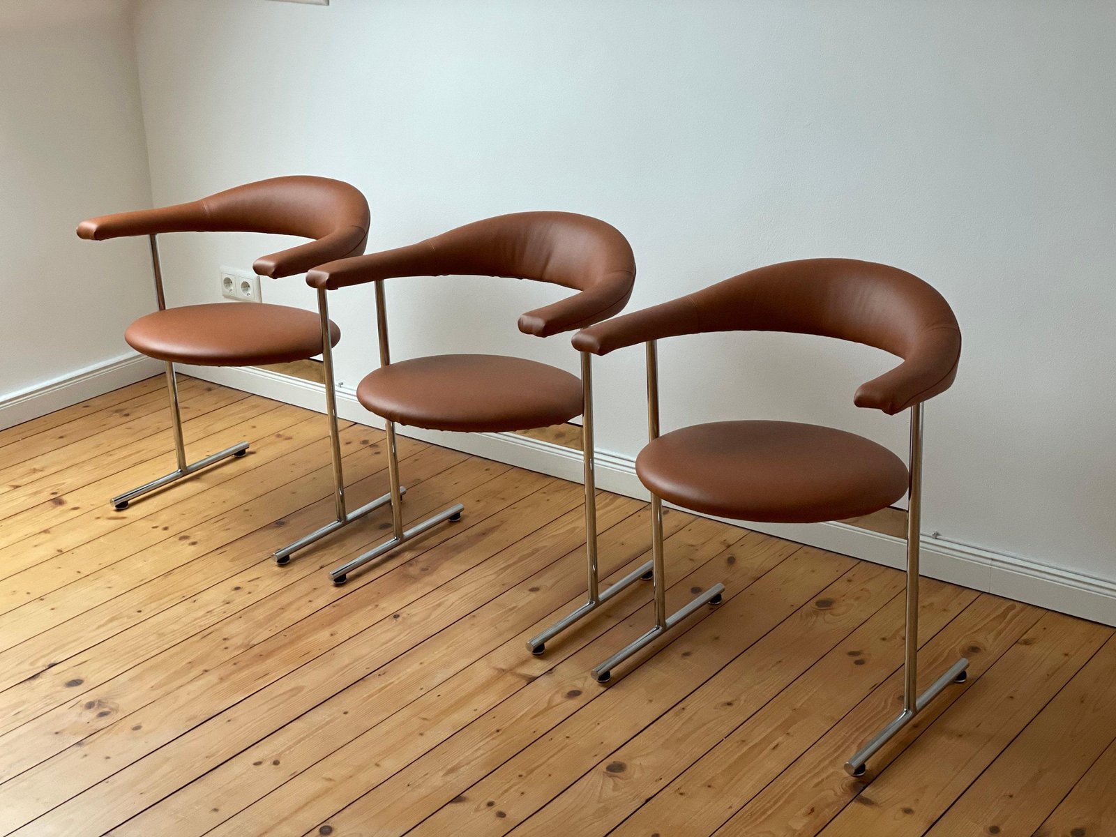 In 1962 he moved back to England and established his own practice based in Oxfordshire. There, he began designing various seating programs for the Dutch manufacturing brand Artifort. Harcourt played a significant role in Artifort’s successful transition into the contract furniture market. Their collaboration set a precedent for alliances between British designers and foreign companies. The futuristic, boldly-colored seating created from this fruitful partnership became Harcourt’s most well-known work. High demand for Space Age design in the 1960s and 1970s meant Harcourt’s designs for Artifort were met with international success, with many models still in production today. Important designs for Artifort include, 042 Series (1963)—which became Harcourt’s first big success; 500 Series (1967)—including the F 510, F 511, F 584, F 585, and F 587 chairs; F 141 Chair (1967); F 978 Chair (1968); 975 IntermediateChair (1968); Cleopatra Chaise Lounge (1970); and the Chicago Chair and Michigan Chair (both 1971), among many others.