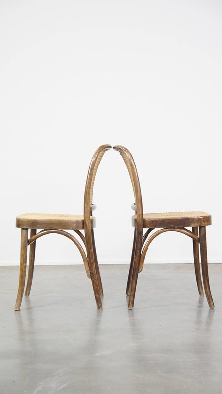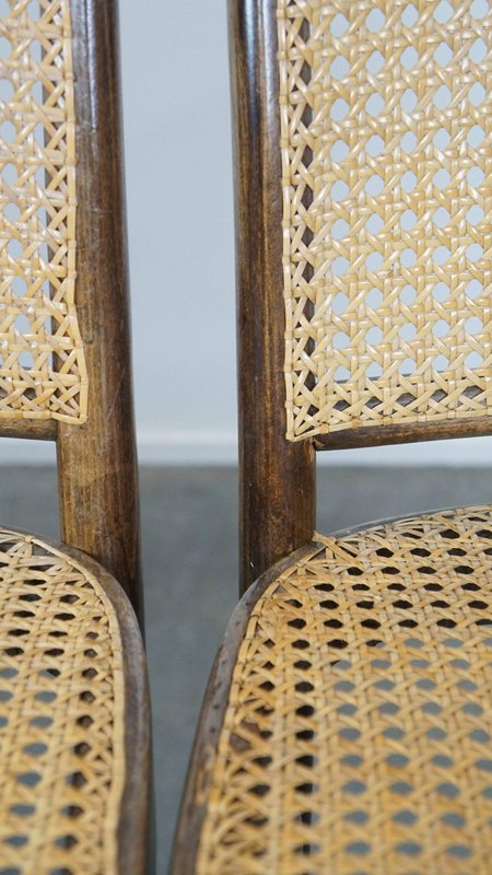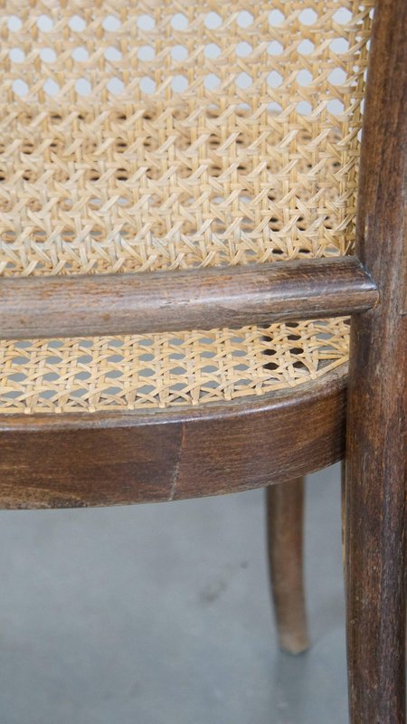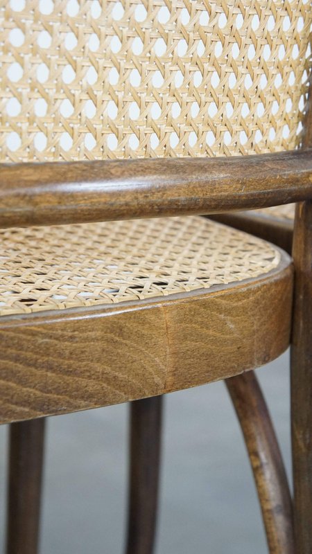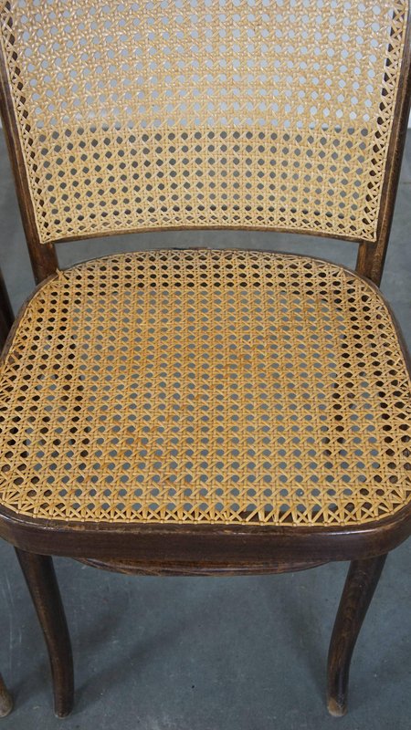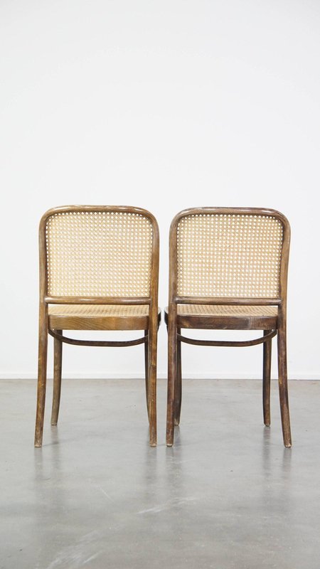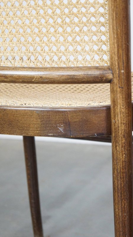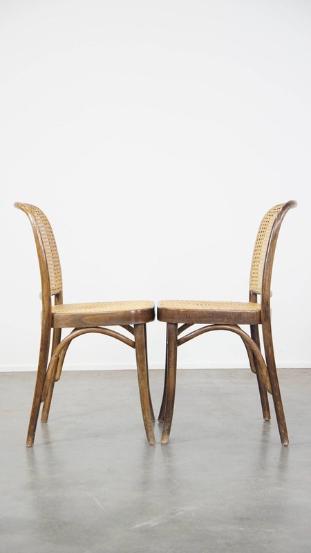 Set of 4 vintage bistro chairs model 811 by Josef Hoffmann for FMG. This nice set of vintage design café chairs, model no. 811, are also called 'Prague chairs'. They were designed by Josef Hoffmann for Thonet and the chairs were produced by FMG in Poland in the 1960s. The chairs look beautiful in both a classic and a modern interior. They have normal signs of wear considering their age, which is partly why they have acquired a beautiful patina. As shown in the photos, they have had some repairs in the past. Naturally, they are still structurally in a good and immediately usable condition. When used properly, they will provide you with many years of seating and viewing pleasure! Please note: The dimensions stated in our advertisement text are leading.