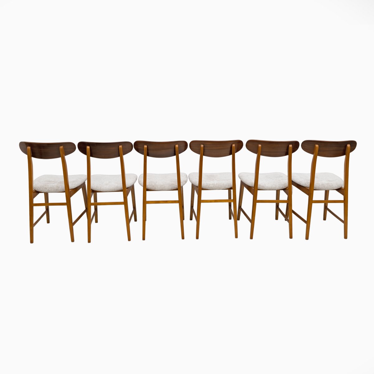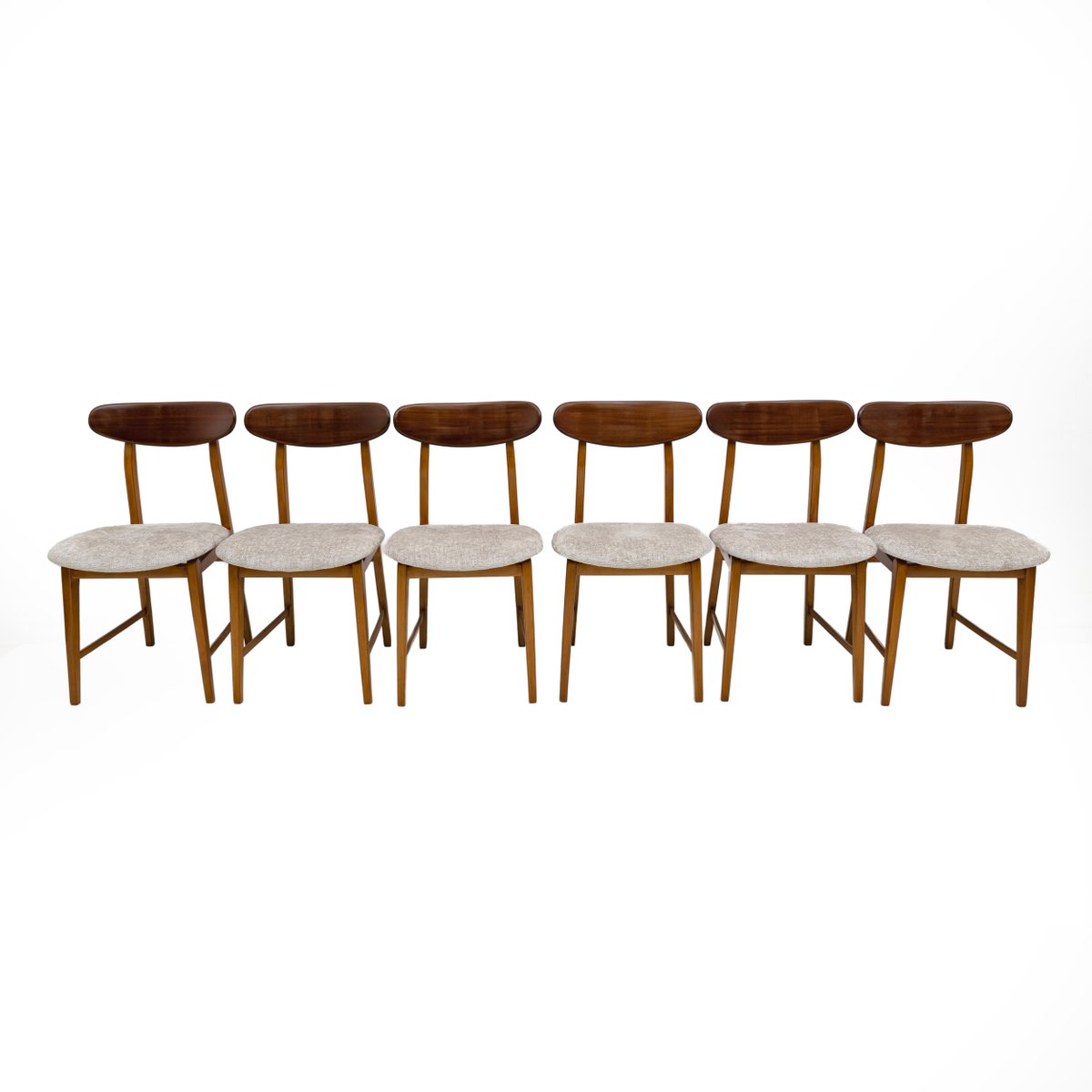 Sillas de comedor danesas vintage de teca y tela bouclè, años 60. Juego de 6