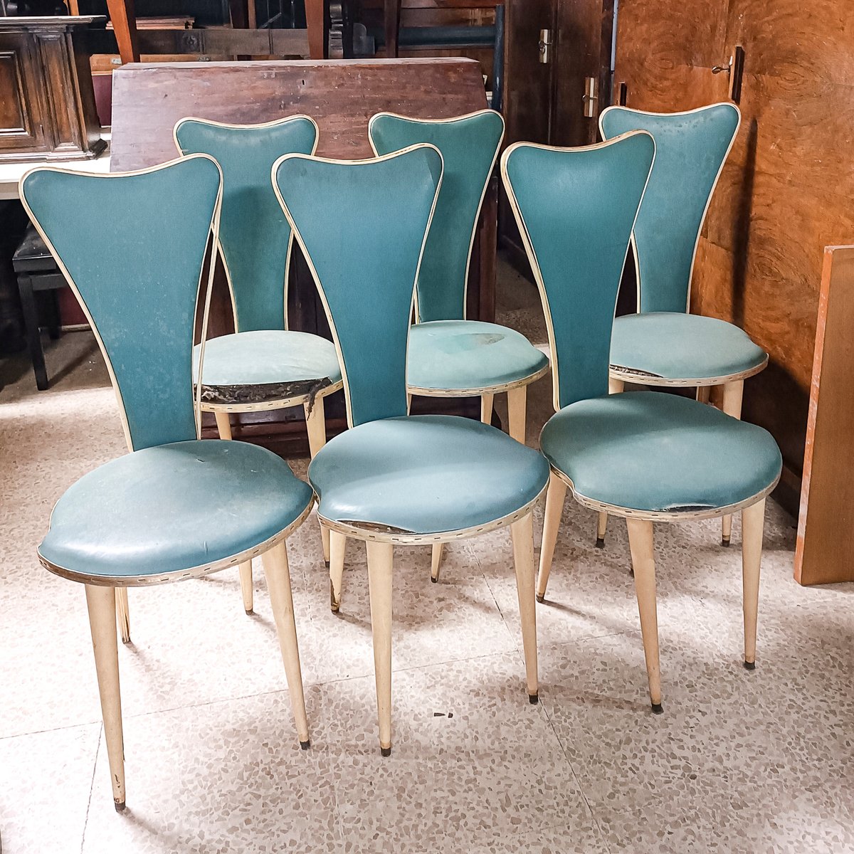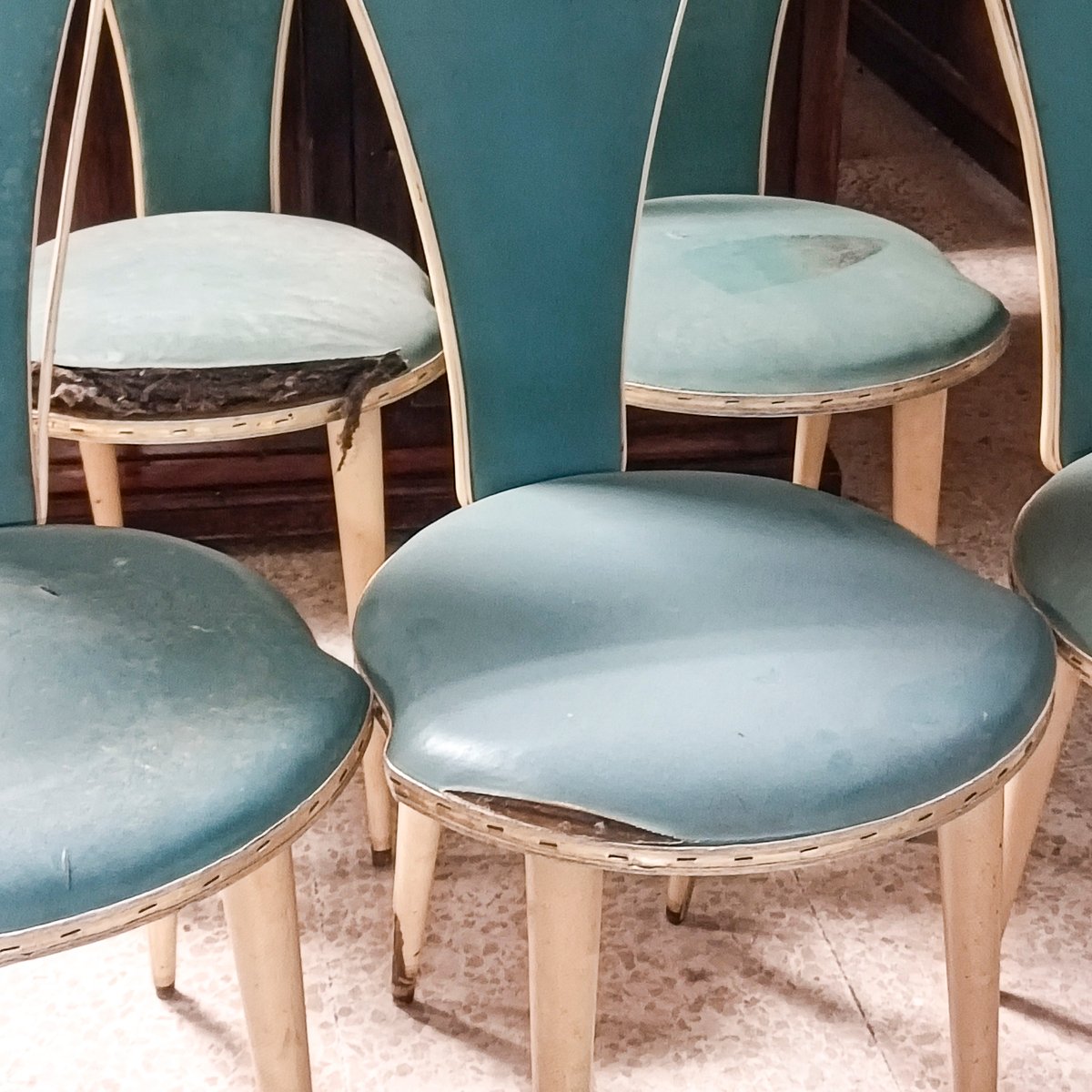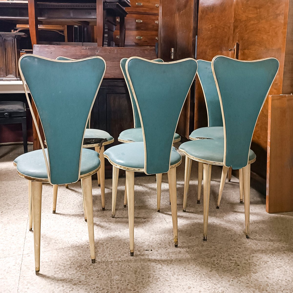 Sillas de comedor de cuero sintético de Umberto Mascagni, años 50. Juego de 6