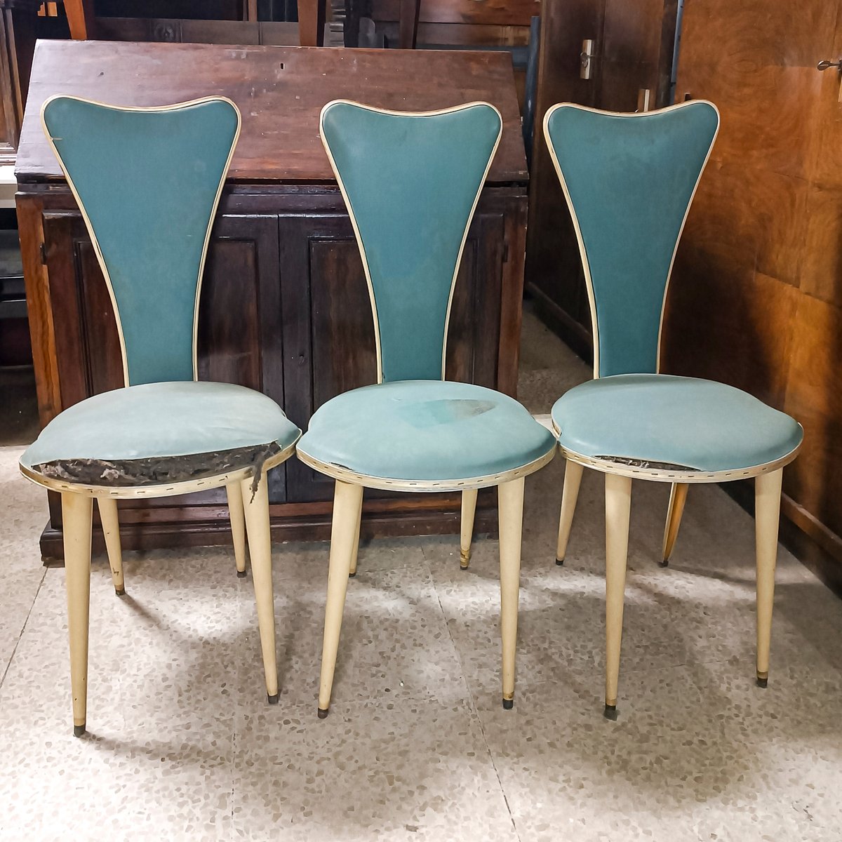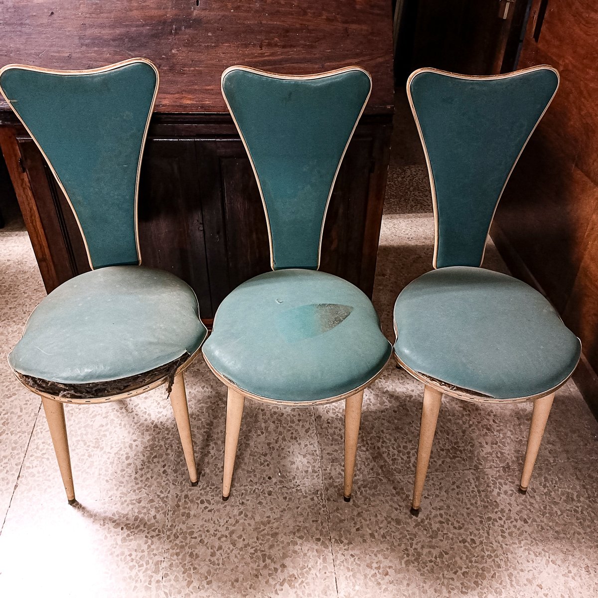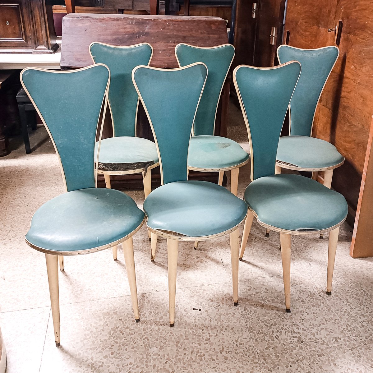 Sillas de comedor de cuero sintético de Umberto Mascagni, años 50. Juego de 6