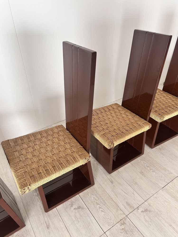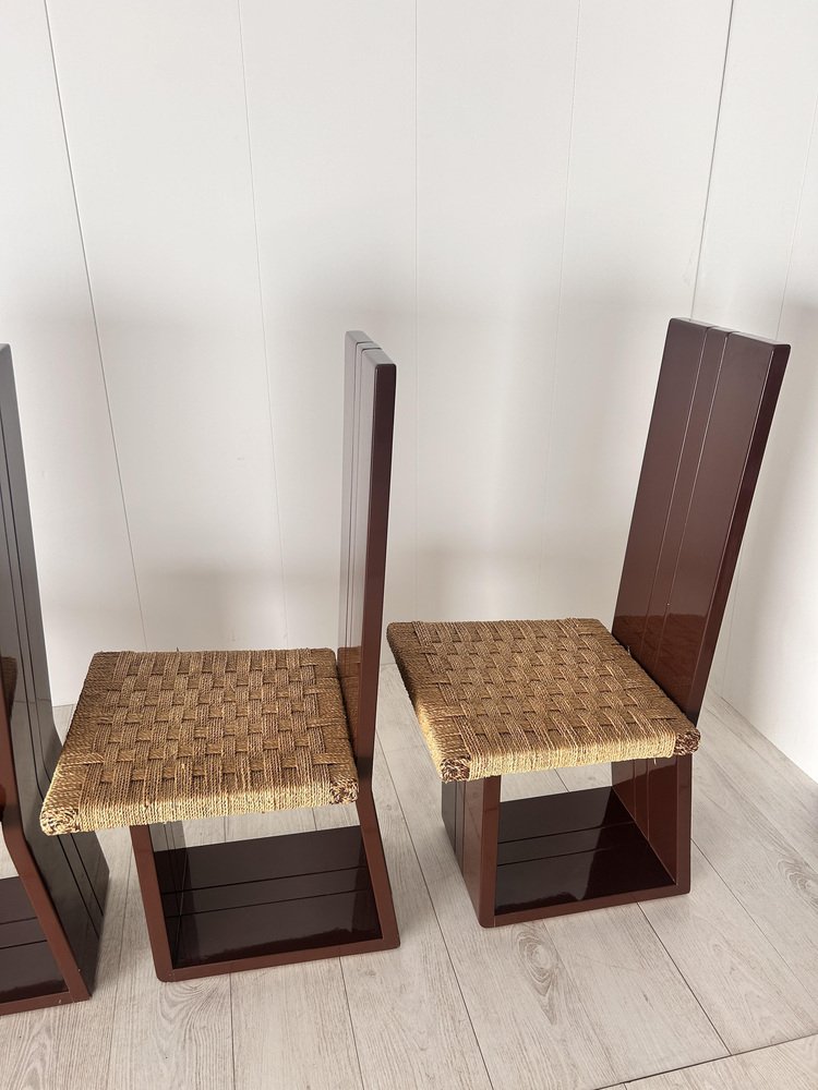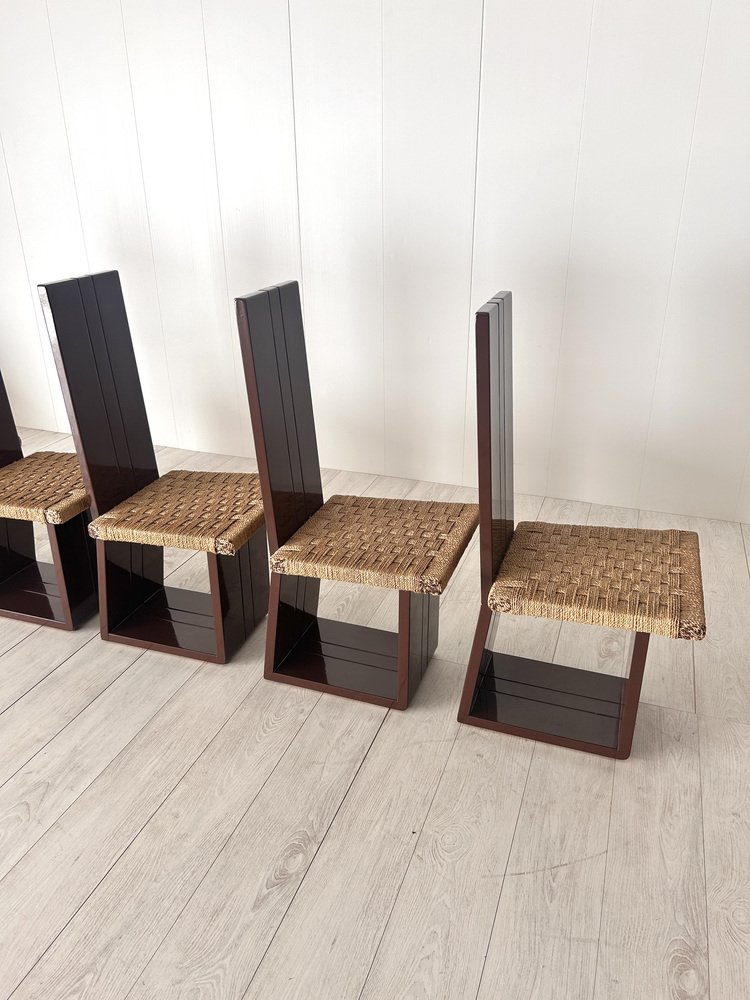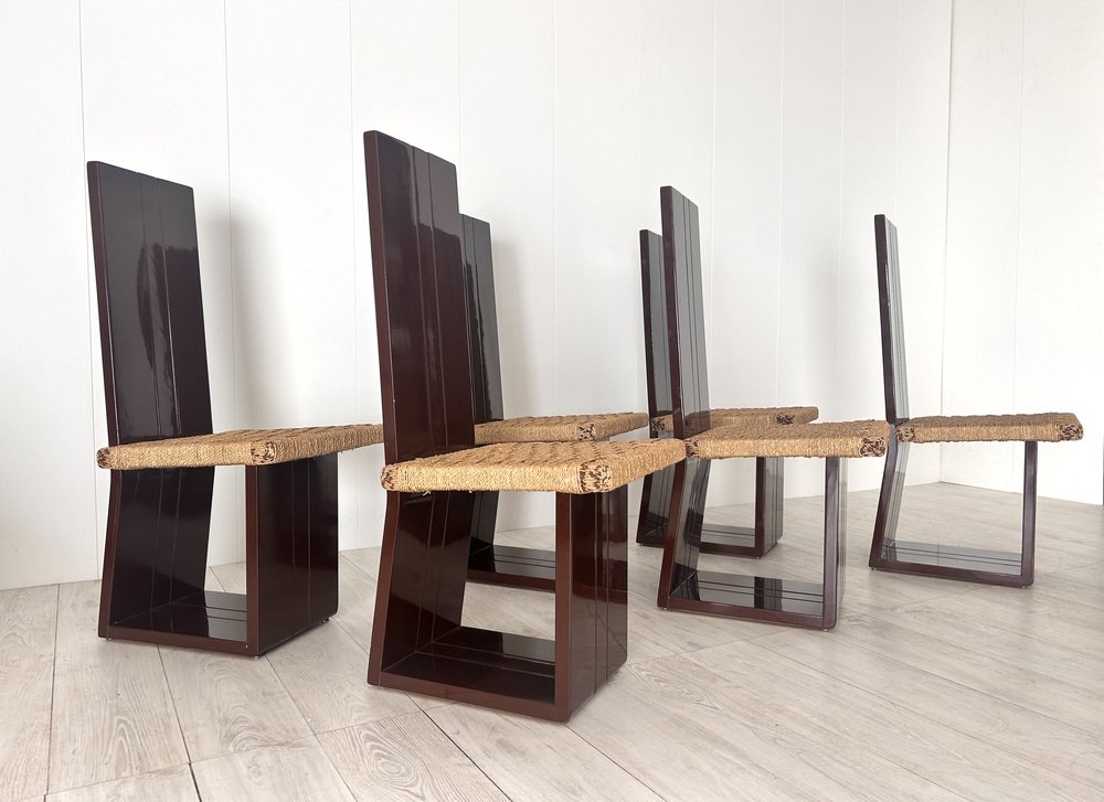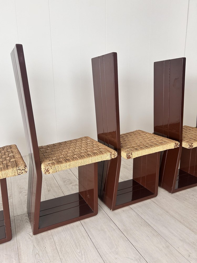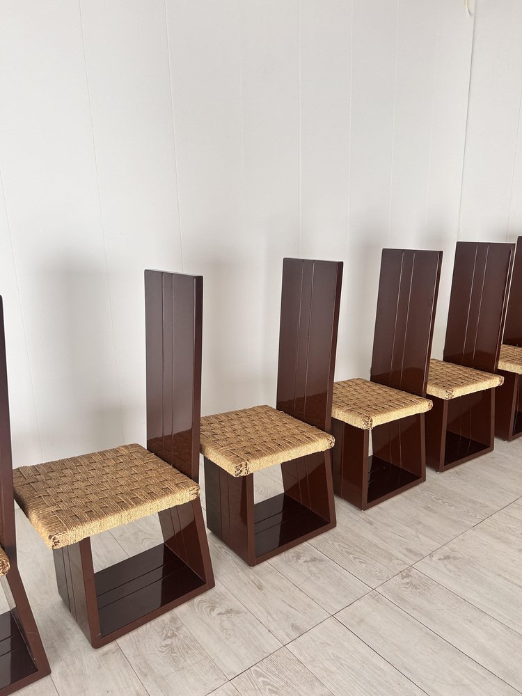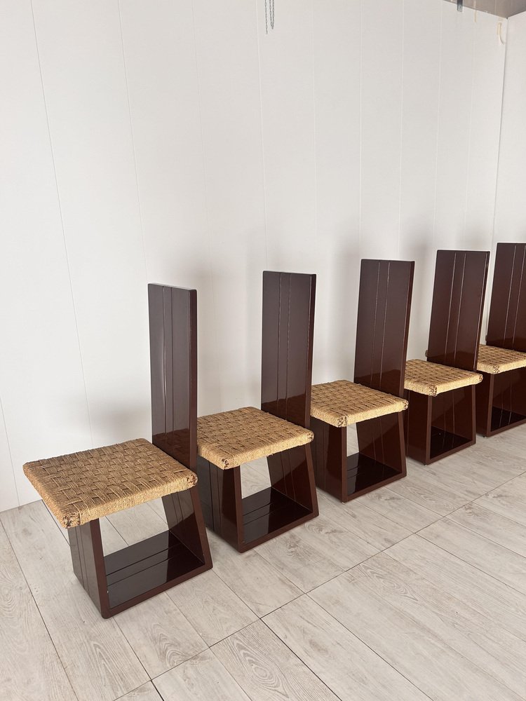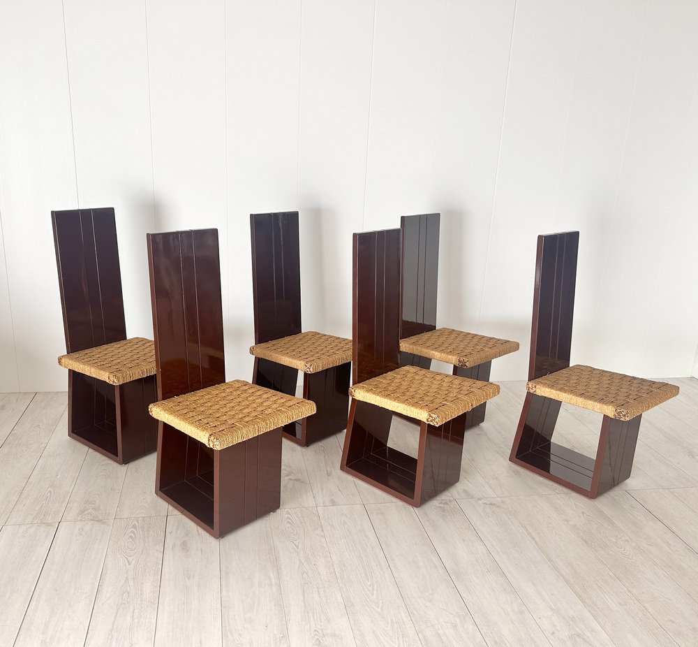 Sillas de comedor de madera lacada y asiento de paja, Italia, años 70. Juego de 6