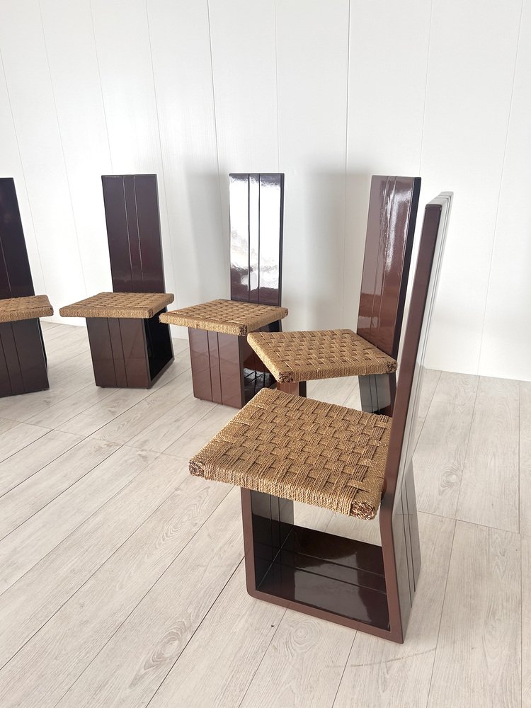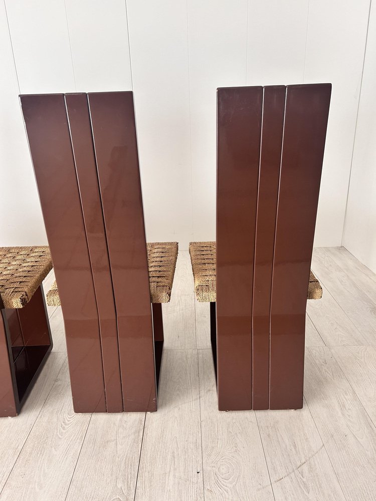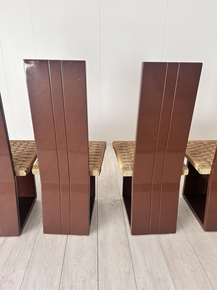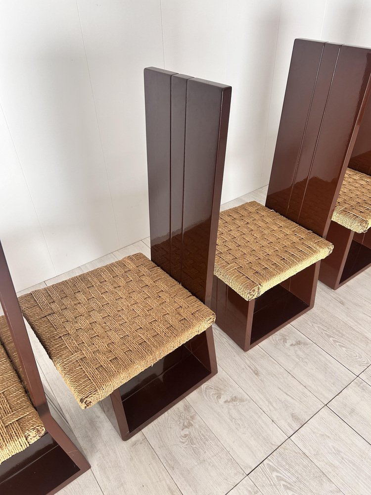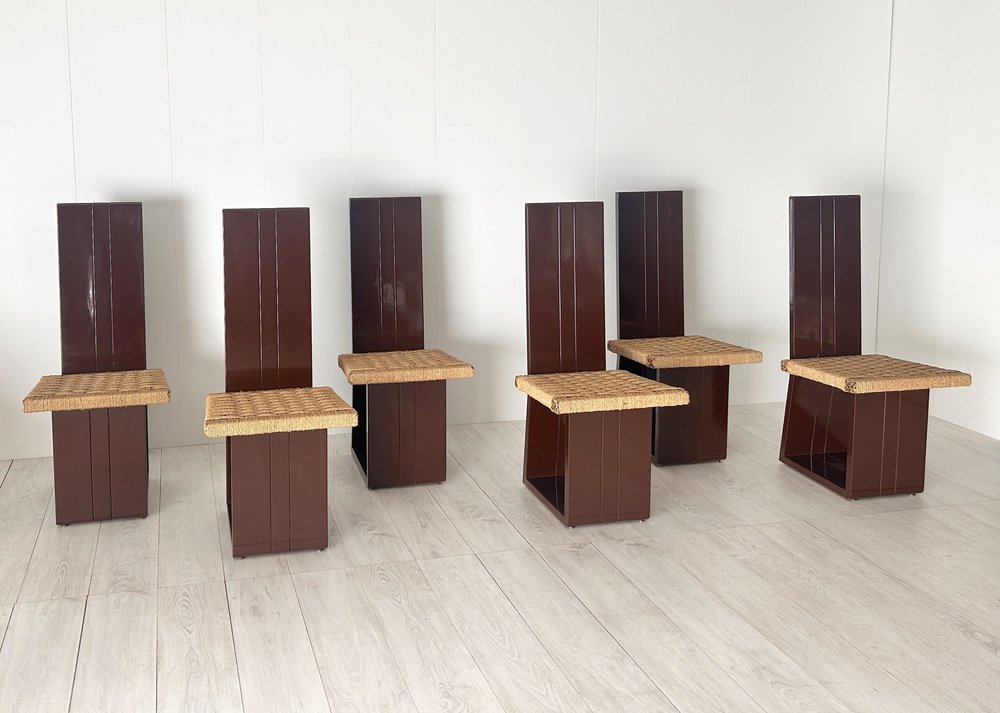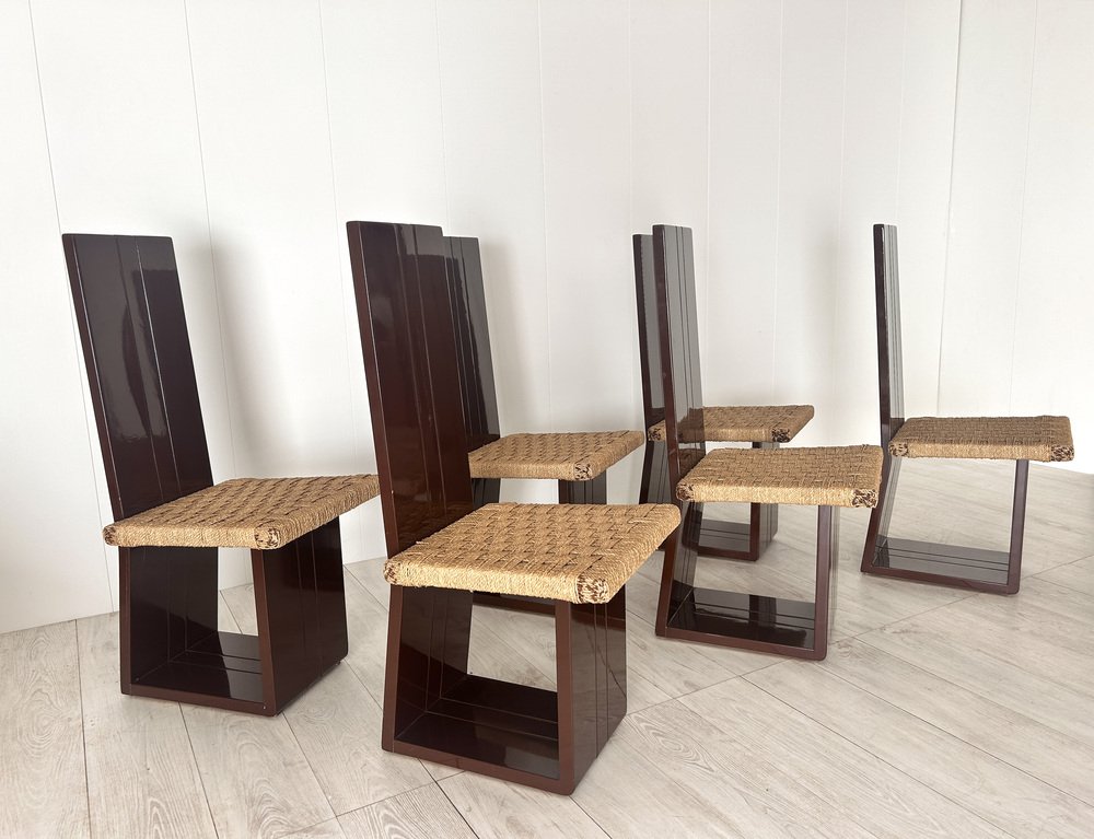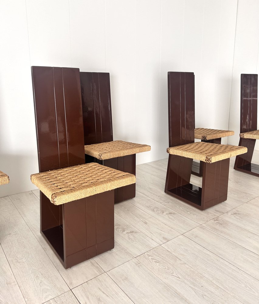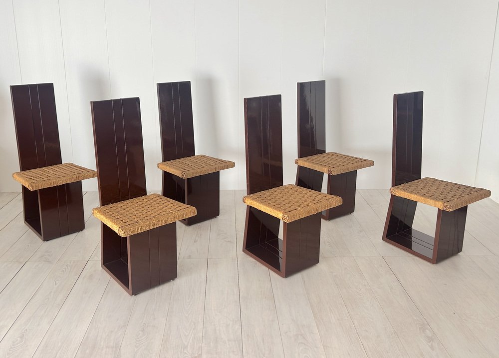 Sillas de comedor de madera lacada y asiento de paja, Italia, años 70. Juego de 6
