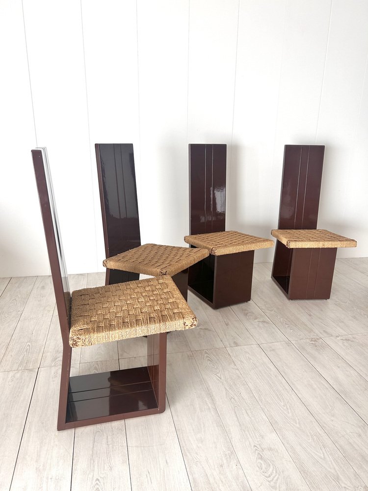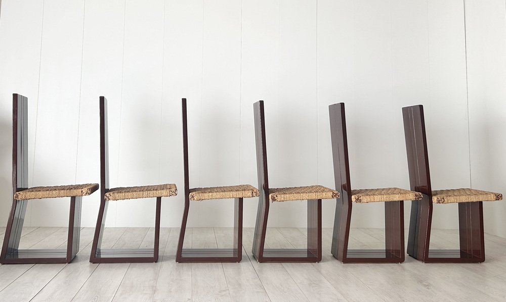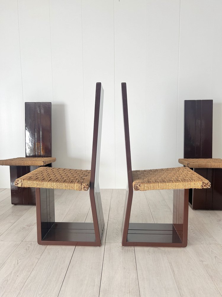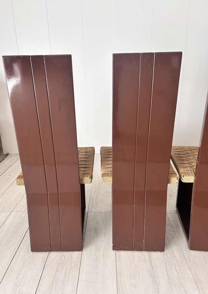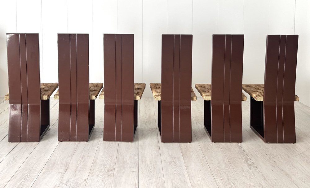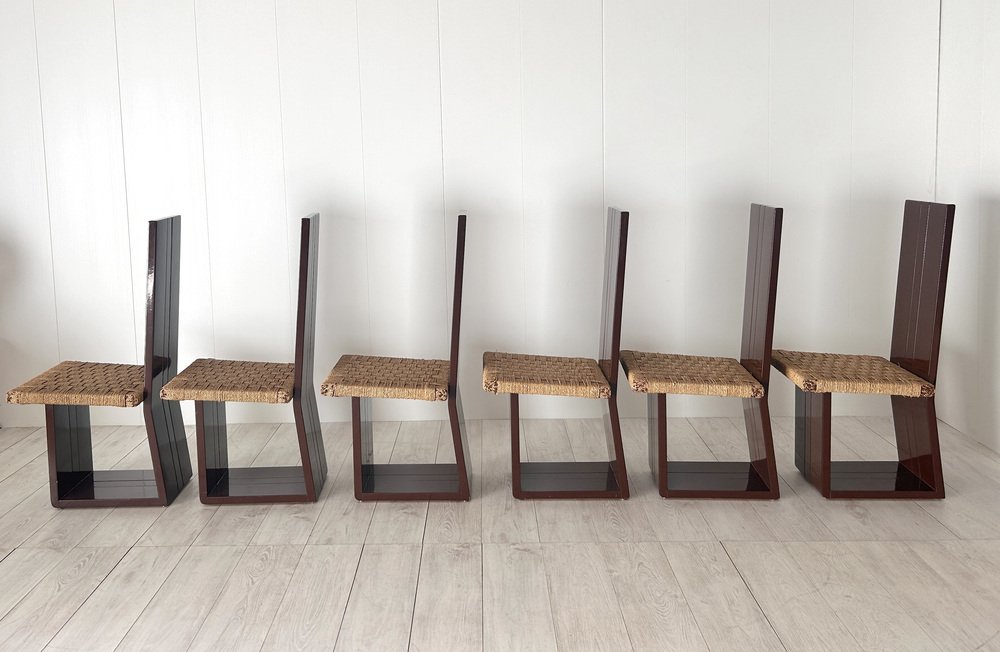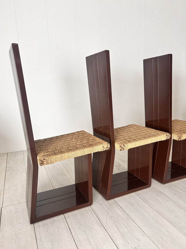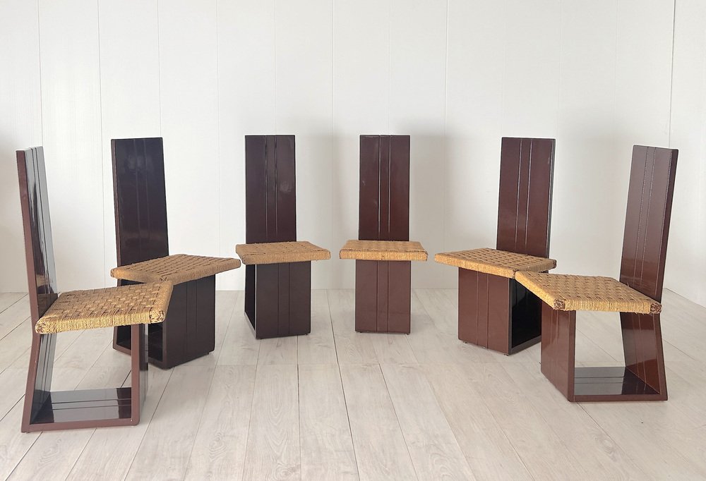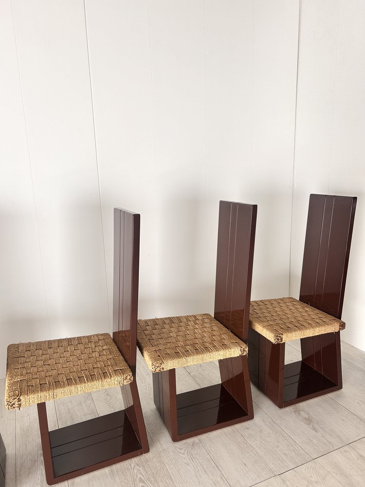 Sillas de comedor de madera lacada y asiento de paja, Italia, años 70. Juego de 6