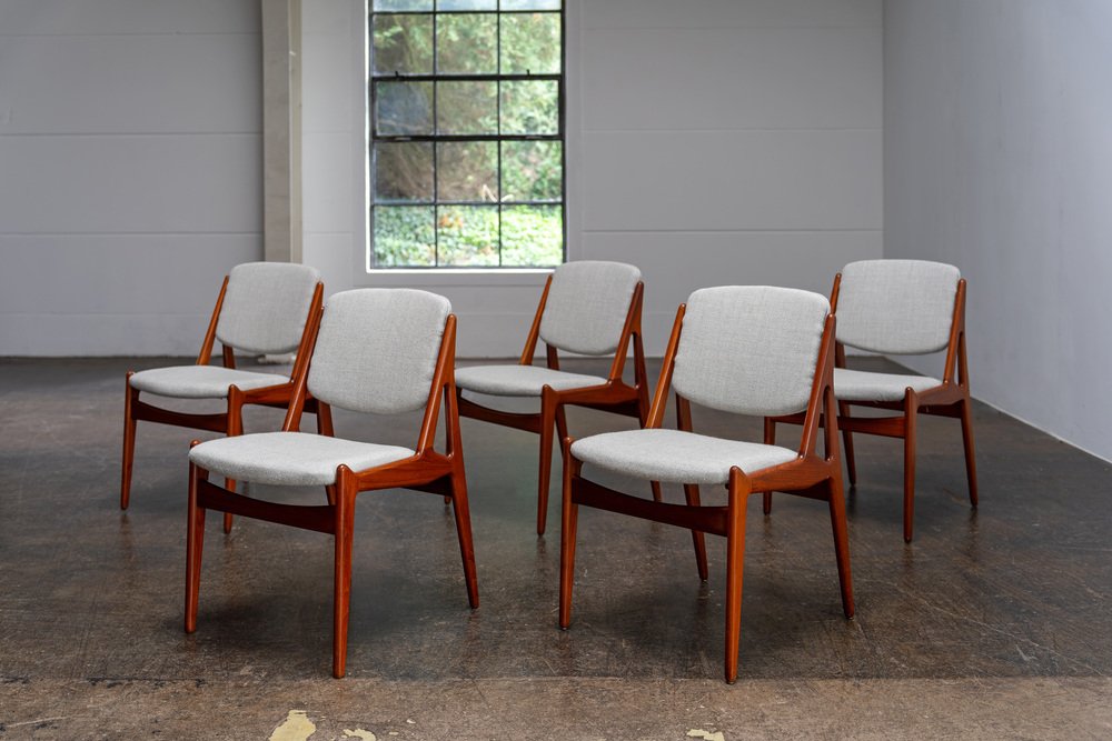 Sillas de comedor de teca de Arne Vodder para Vamø, años 60. Juego de 5