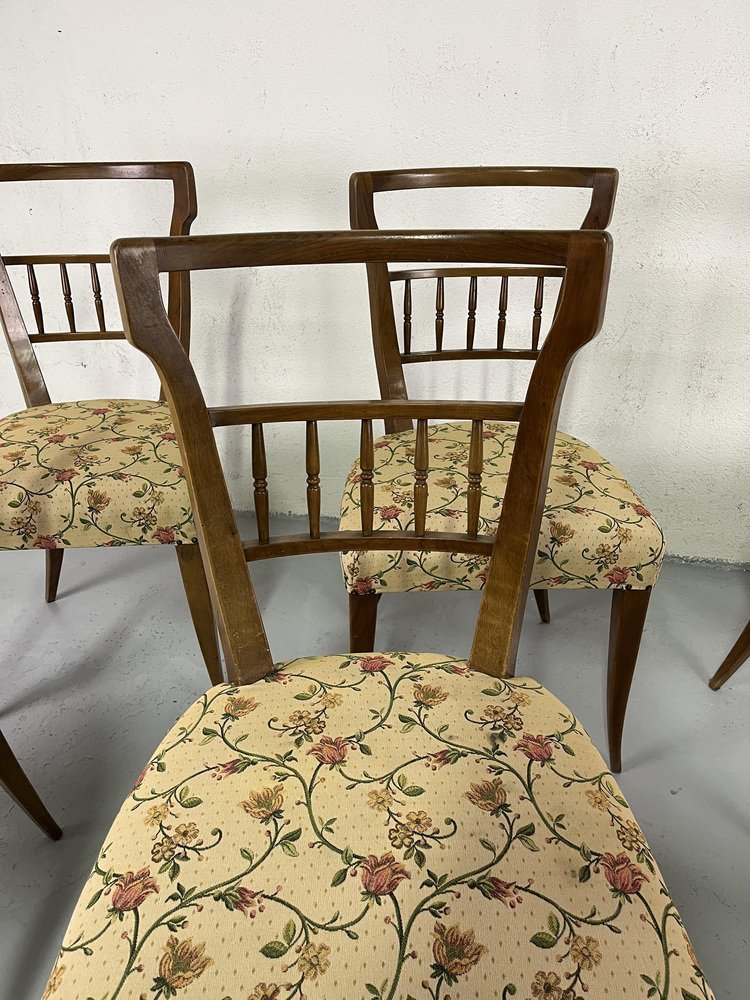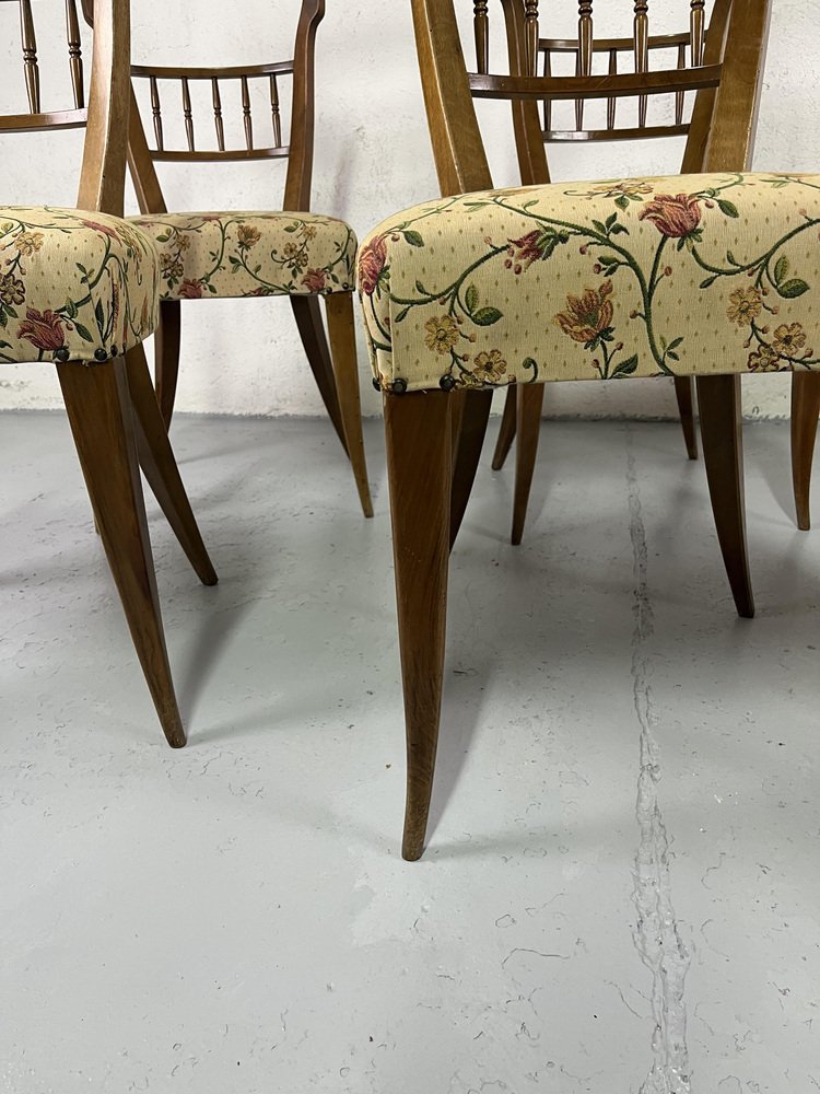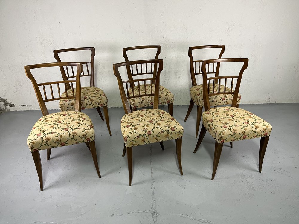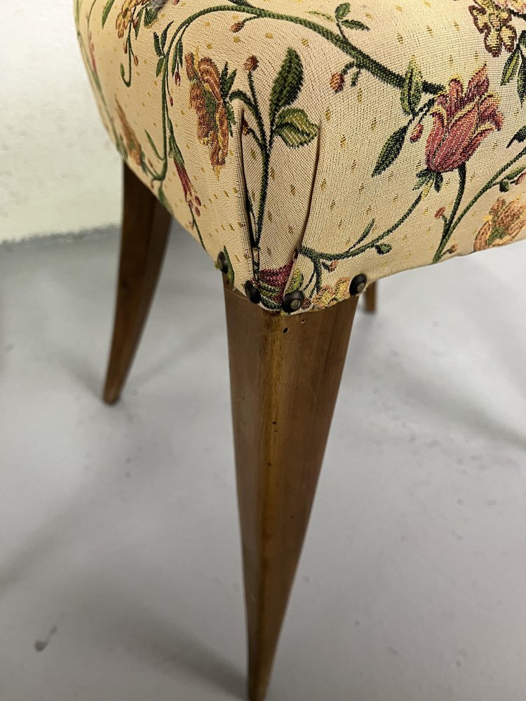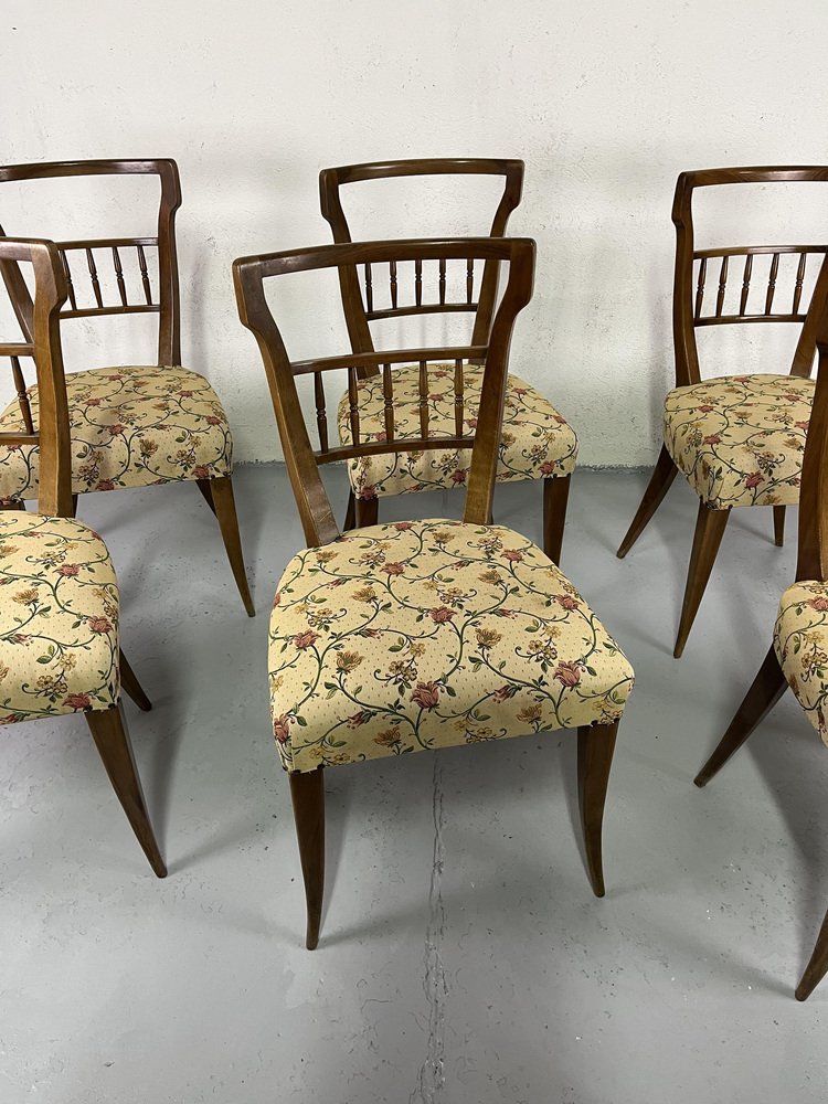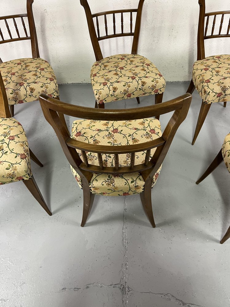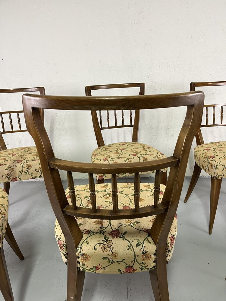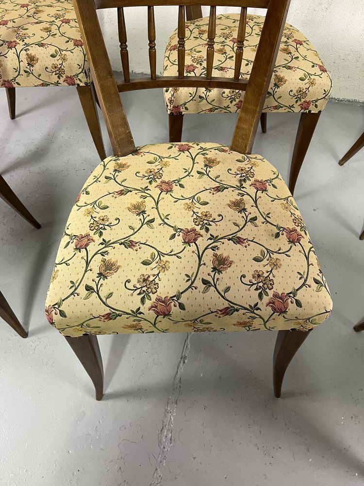 Sillas de comedor italianas de madera y tela floral de Maurizio Tempestini, años 50. Juego de 6
