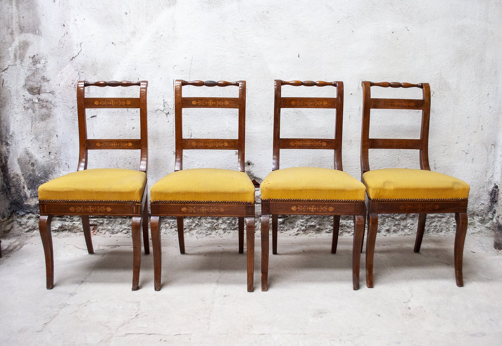 Sillas de comedor italianas estilo Imperio antiguas de madera. Juego de 4