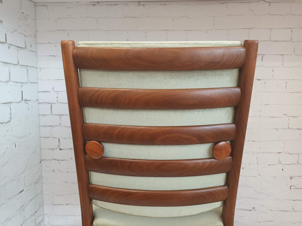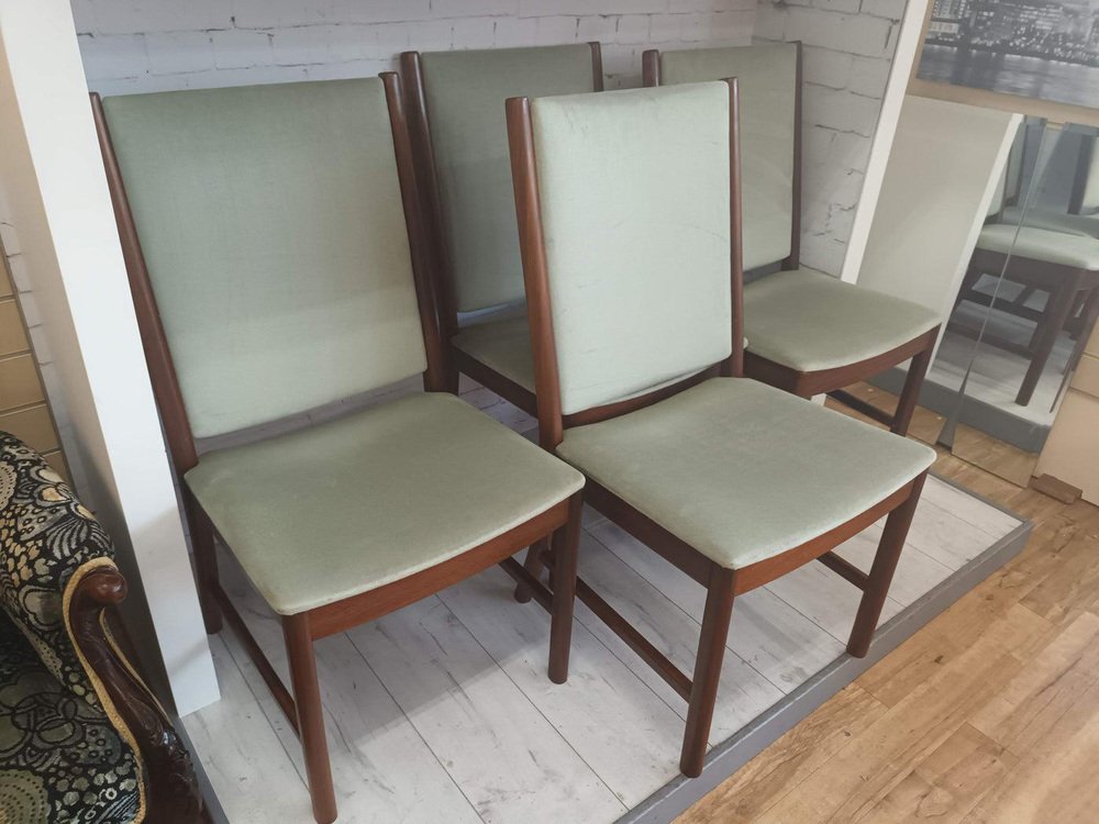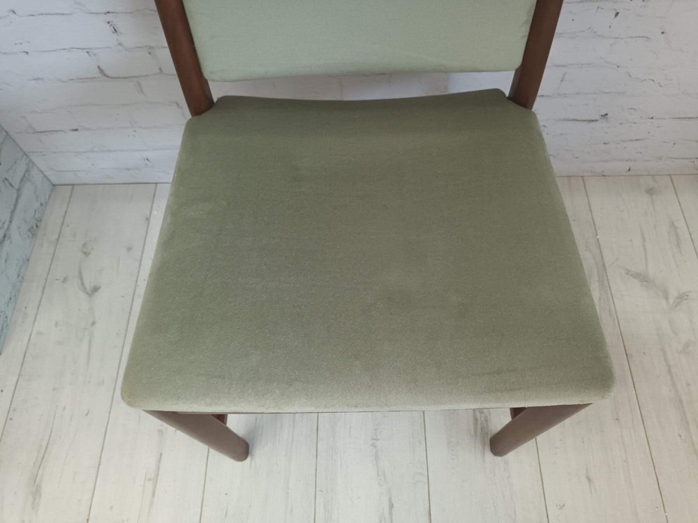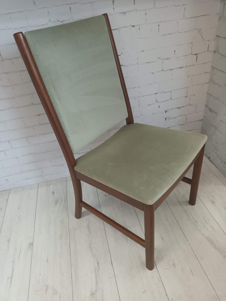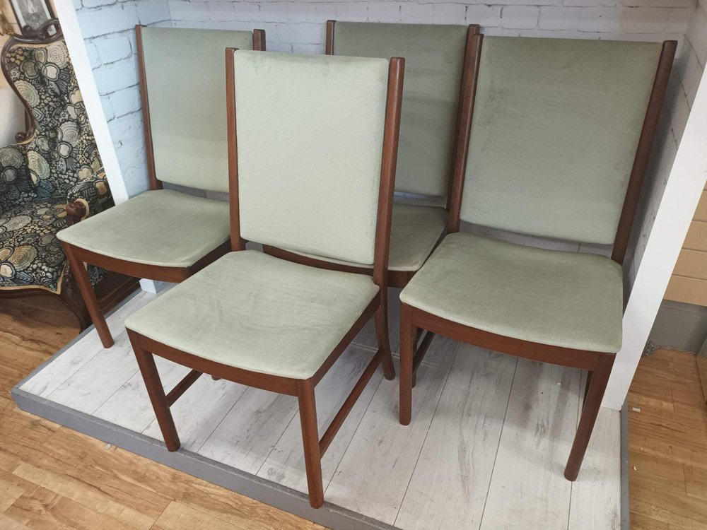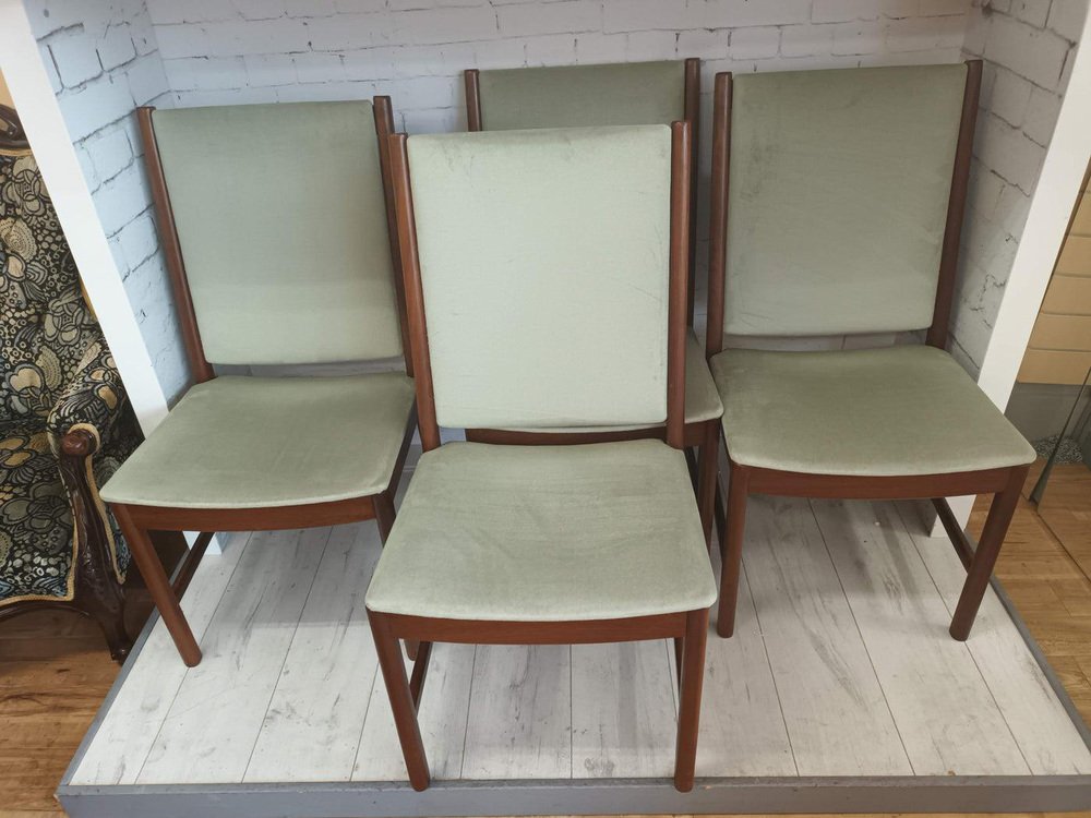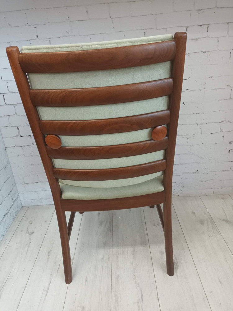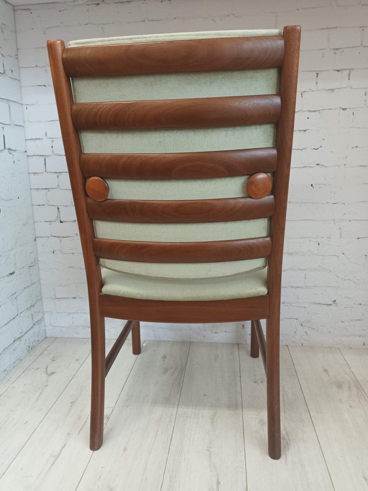 Transform your dining space with this exquisite set of four Mid Century White & Newton vintage dining chairs, impeccably preserved and in excellent condition. Crafted with a stunning solid Afromosia frame showcasing a captivating wood grain, these chairs boast high laddered backs and are upholstered in a charming velour light green. These mid-century vintage dining chairs boast exceptional craftsmanship, characterised by their superior quality and substantial weight. Their generous dimensions ensure durability, promising many years of use. with a distinctive Danish style charm, these chairs exude a timeless and stylish appeal. Notably, White & Newton, renowned furniture manufacturers from the mid-century era, crafted these pieces with top-notch quality. These vintage dining chairs have been meticulously cleaned and oiled, ensuring they remain sturdy and in exceptional condition for their age. Make a statement in your home with these iconic pieces that seamlessly blend style and durability. Approximate Measurements: Set of 4 Dining Chairs Floor to top of backrest - 96cm Overall Depth: 52cm Overall Width: 50cm Floor to seat 44cm Actual seat: Width 48cm Actual seat: Depth: 50cm
