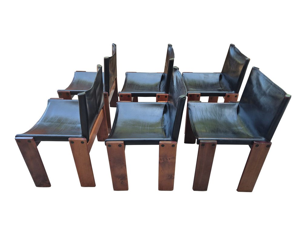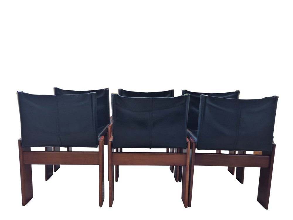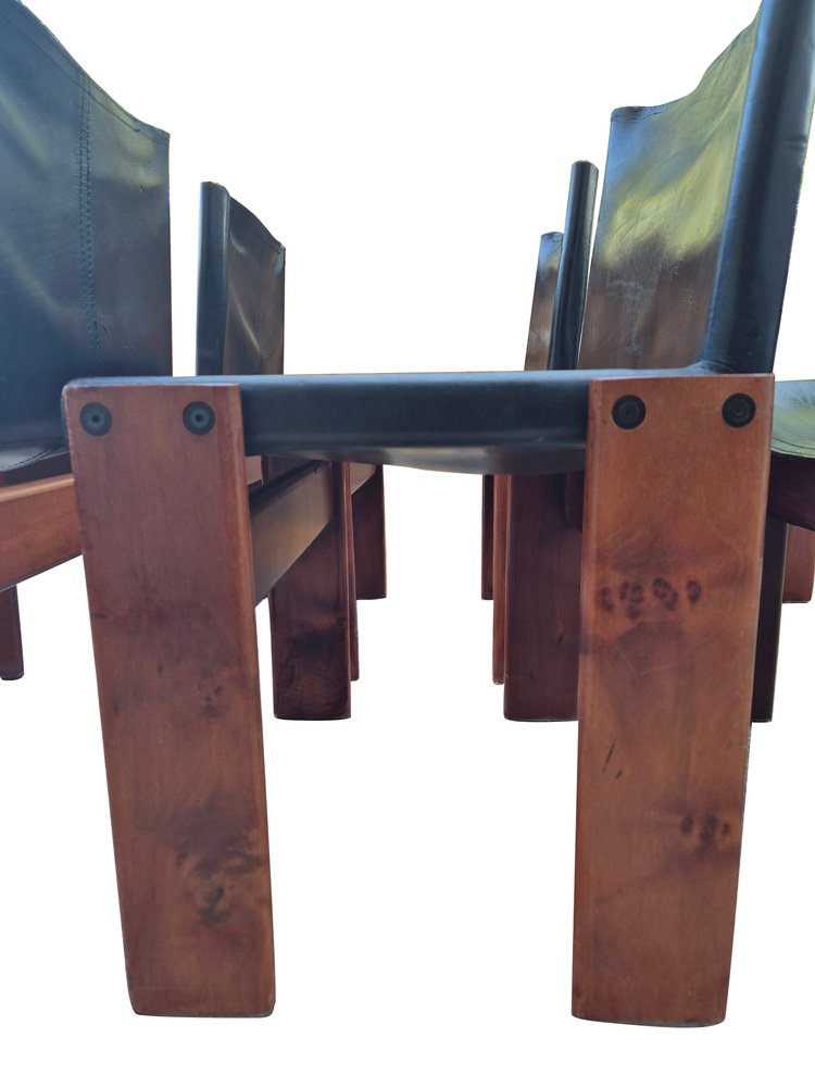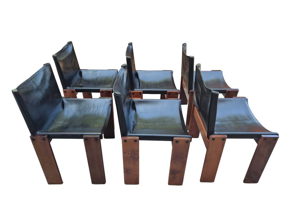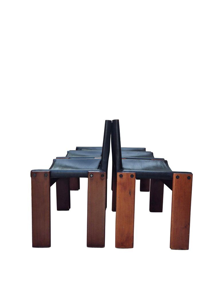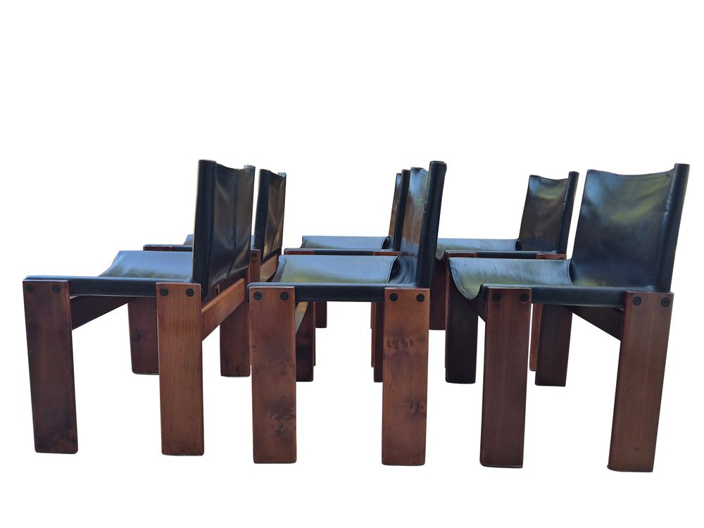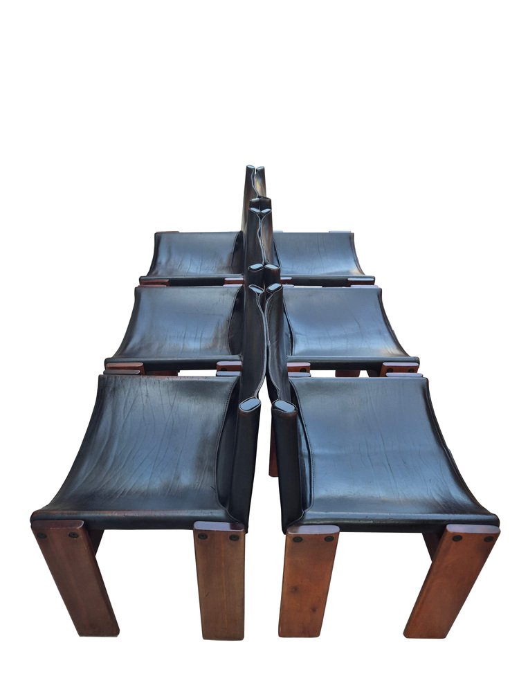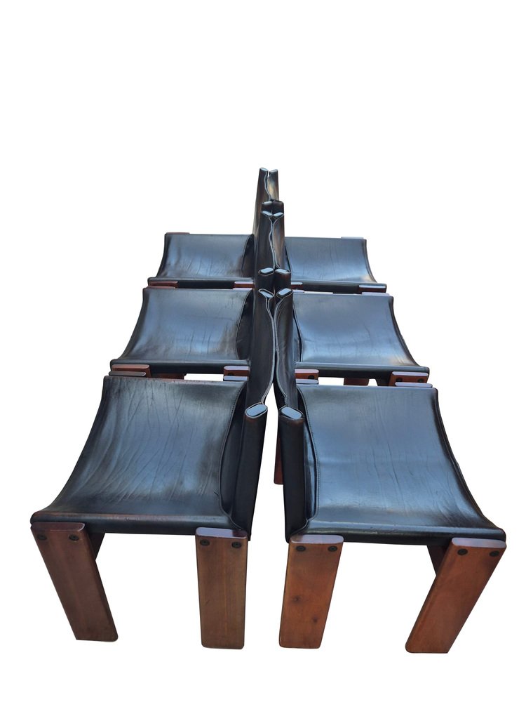Sillas de cuero y haya atribuidas a Afra & Tobia Scarpa para Molteni, 1973. Juego de 6