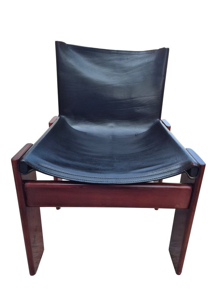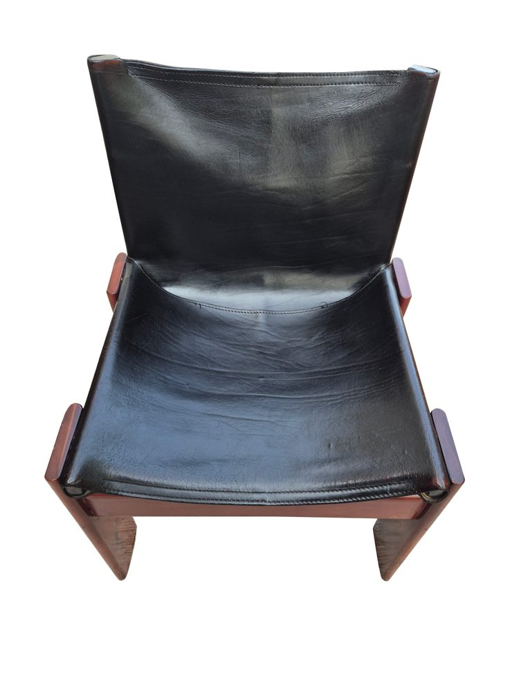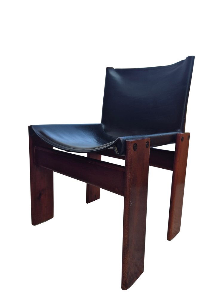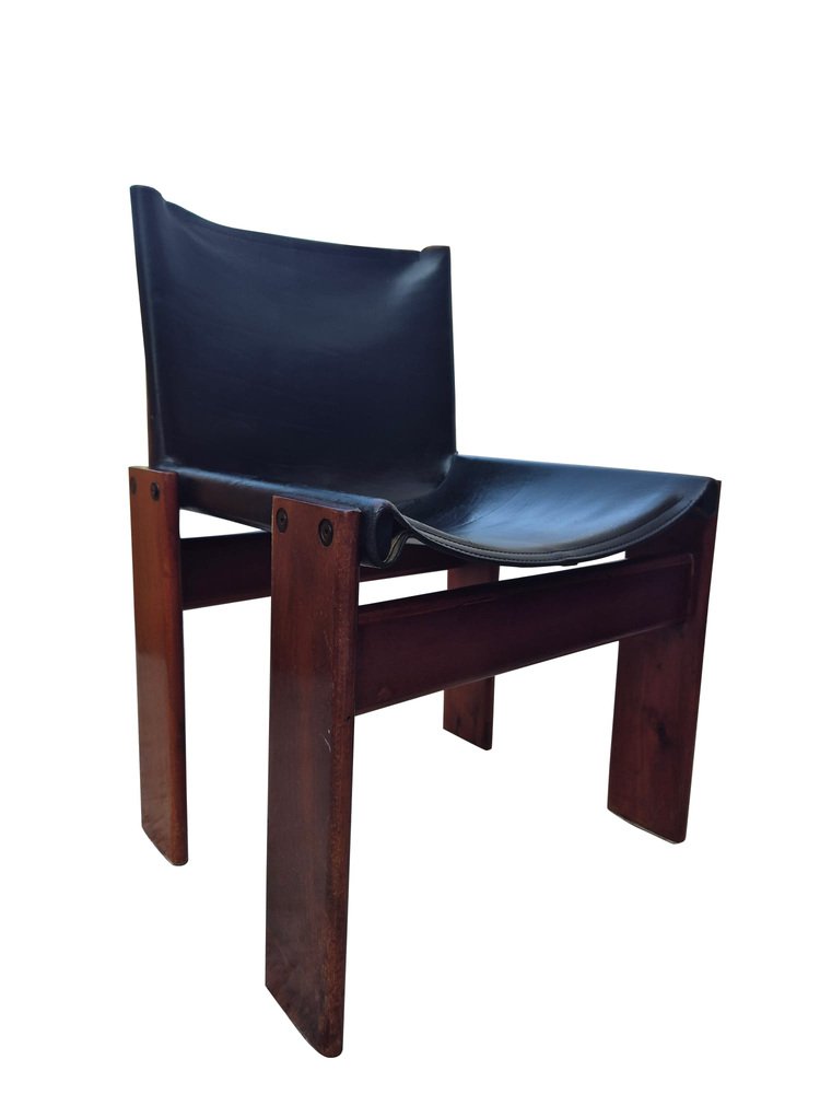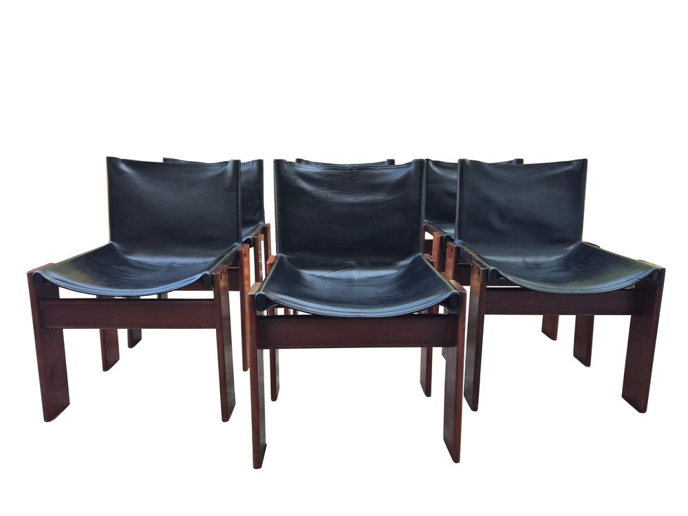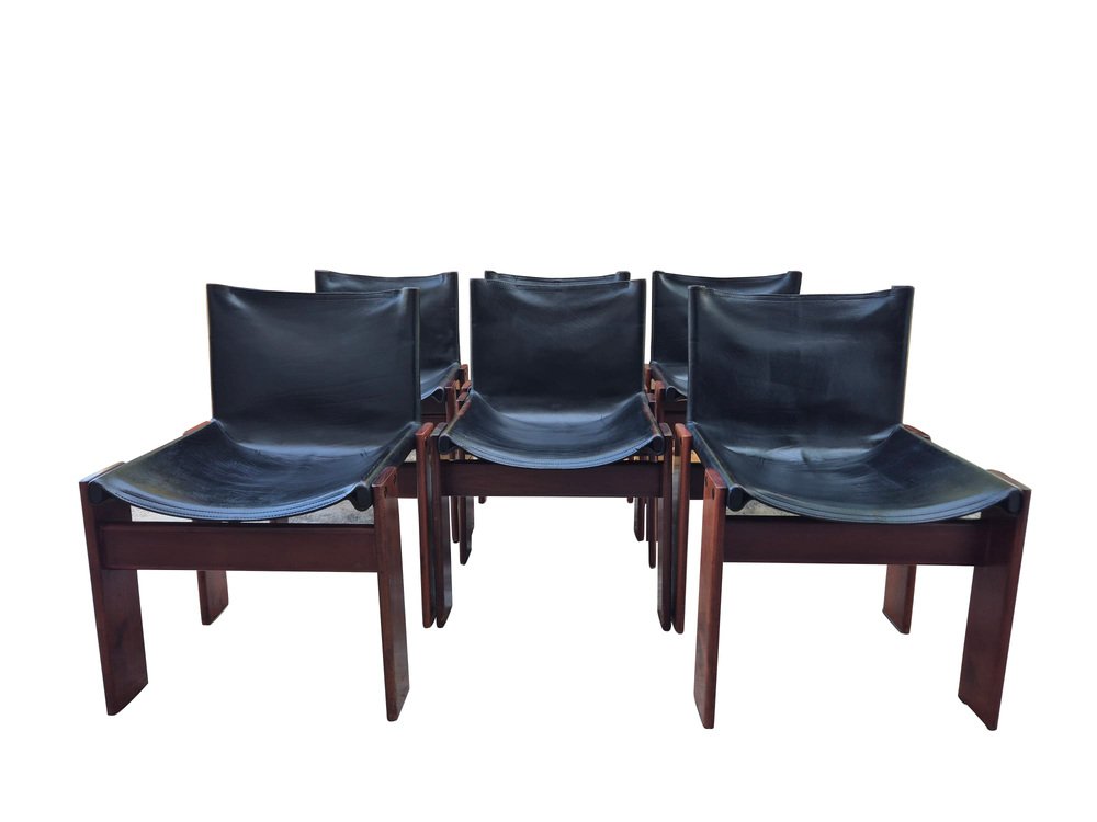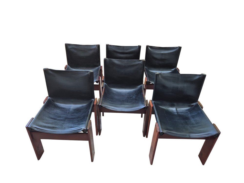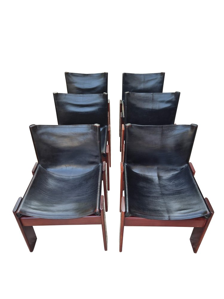 Sillas de cuero y haya atribuidas a Afra & Tobia Scarpa para Molteni, 1973. Juego de 6