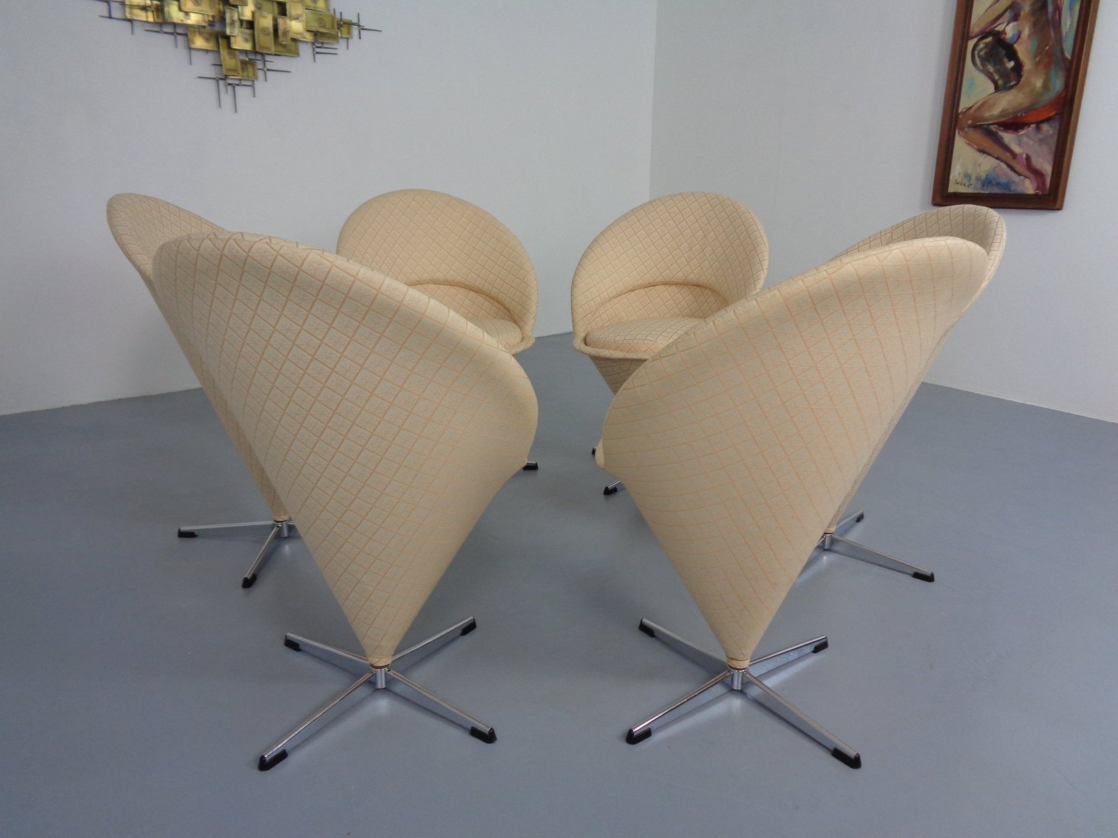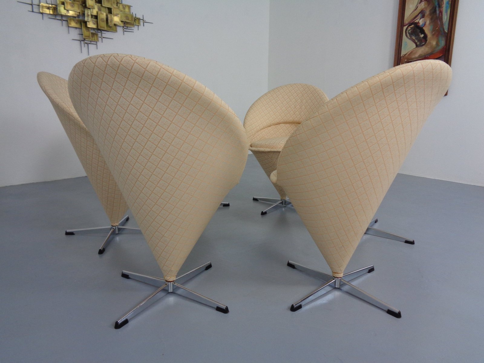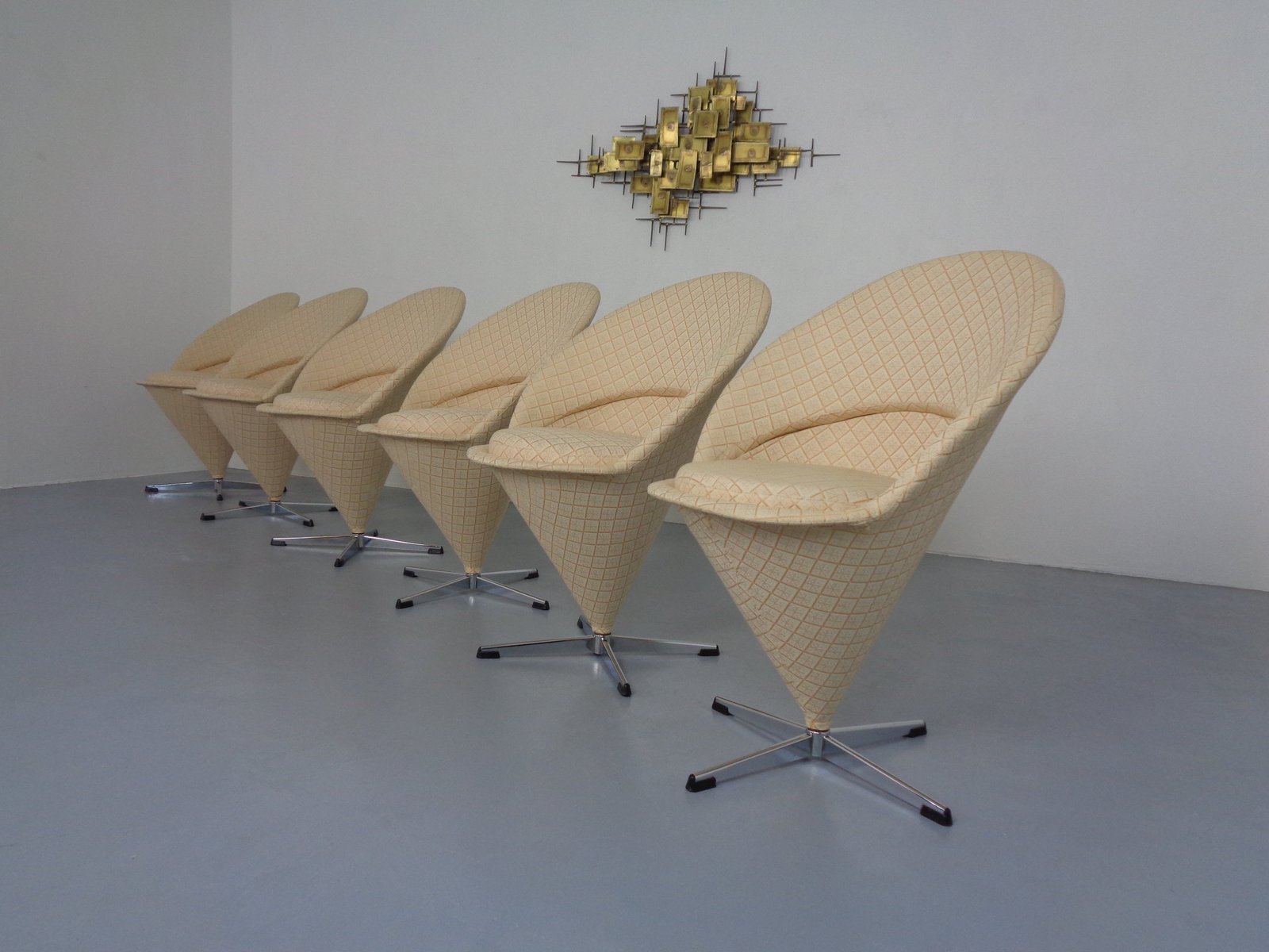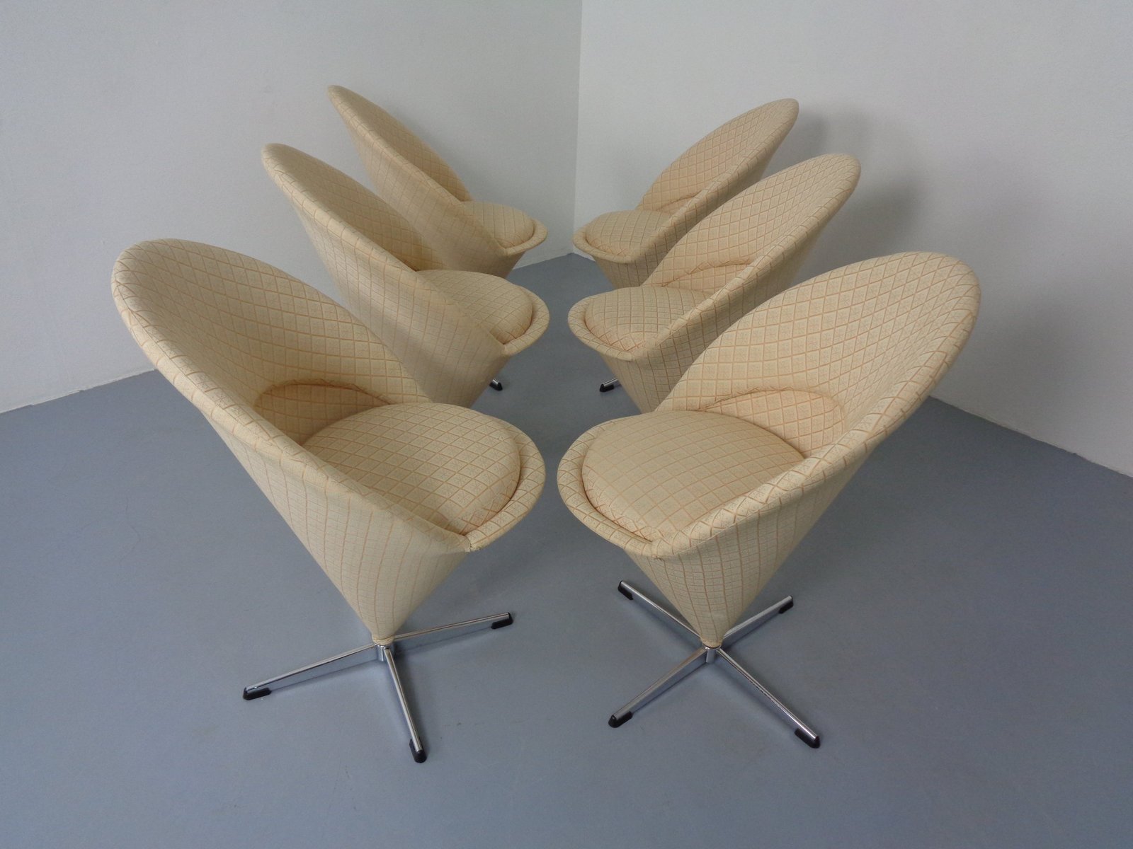 Sillas Early Cone de Verner Panton para Plus-Linje, Dinamarca, años 50. Juego de 6