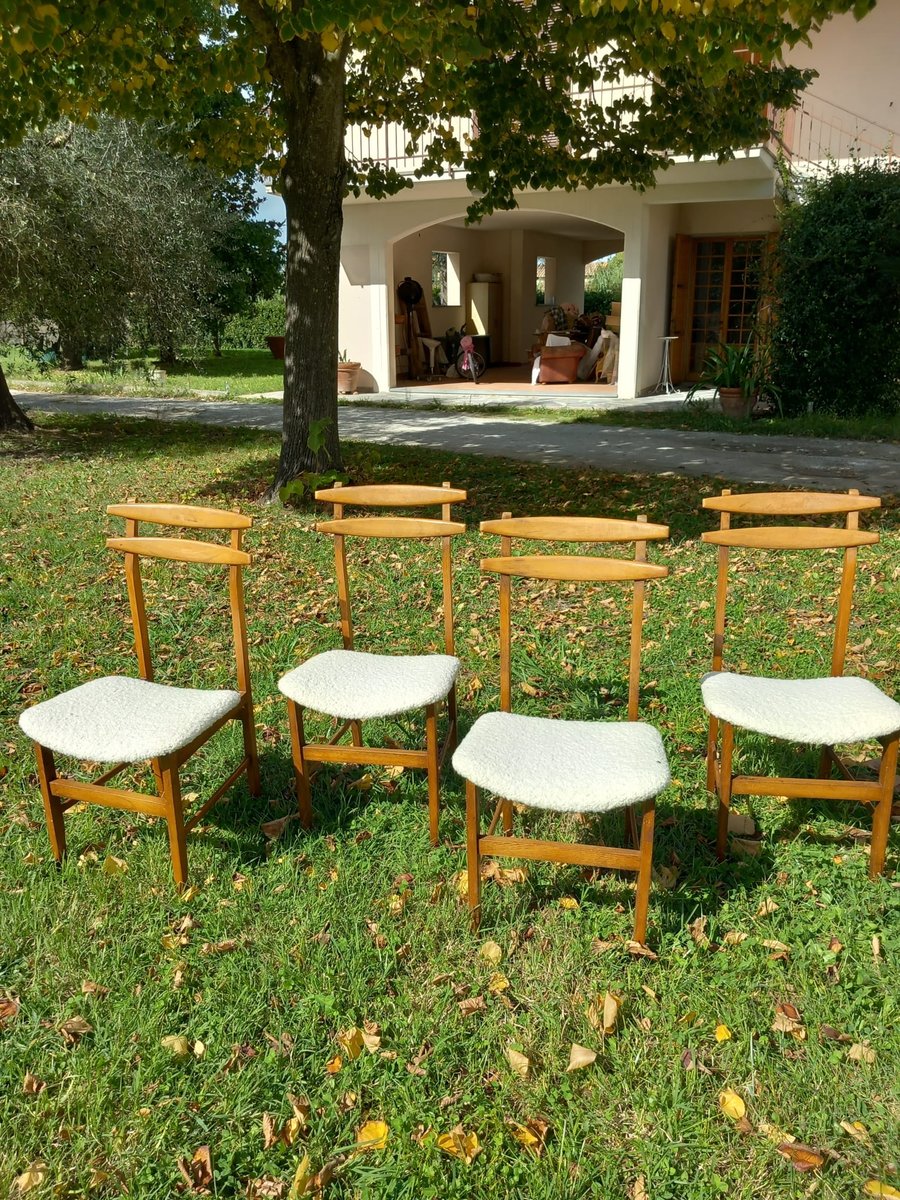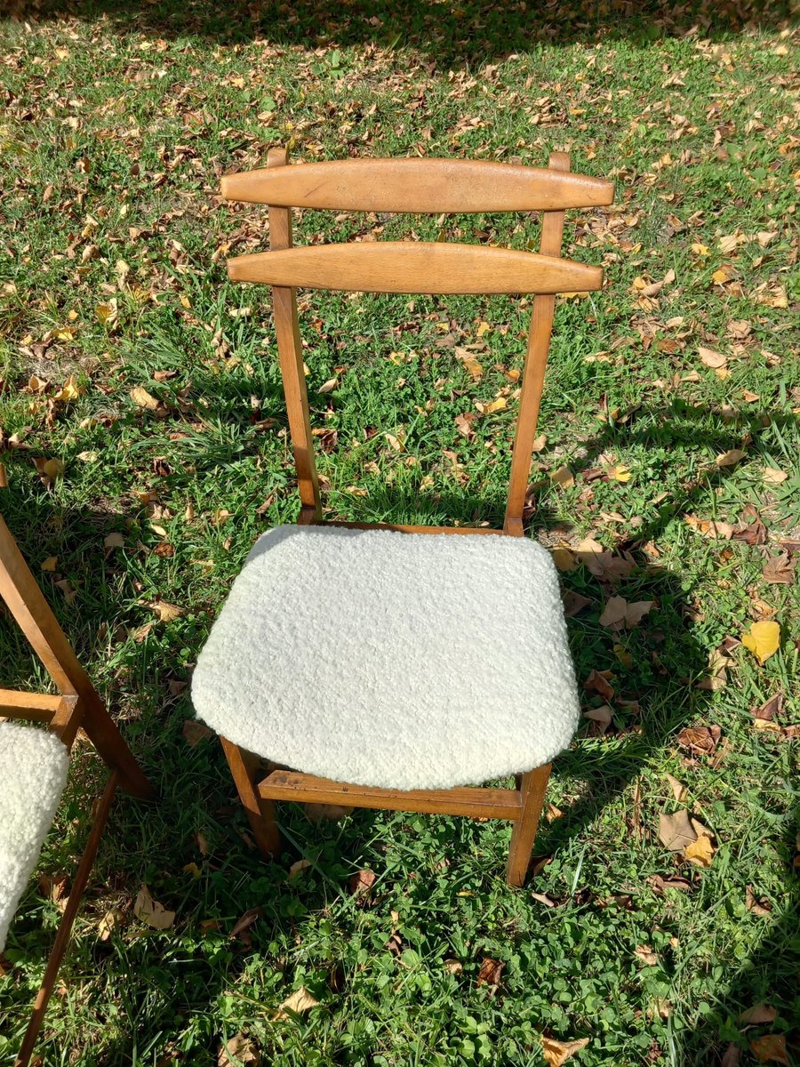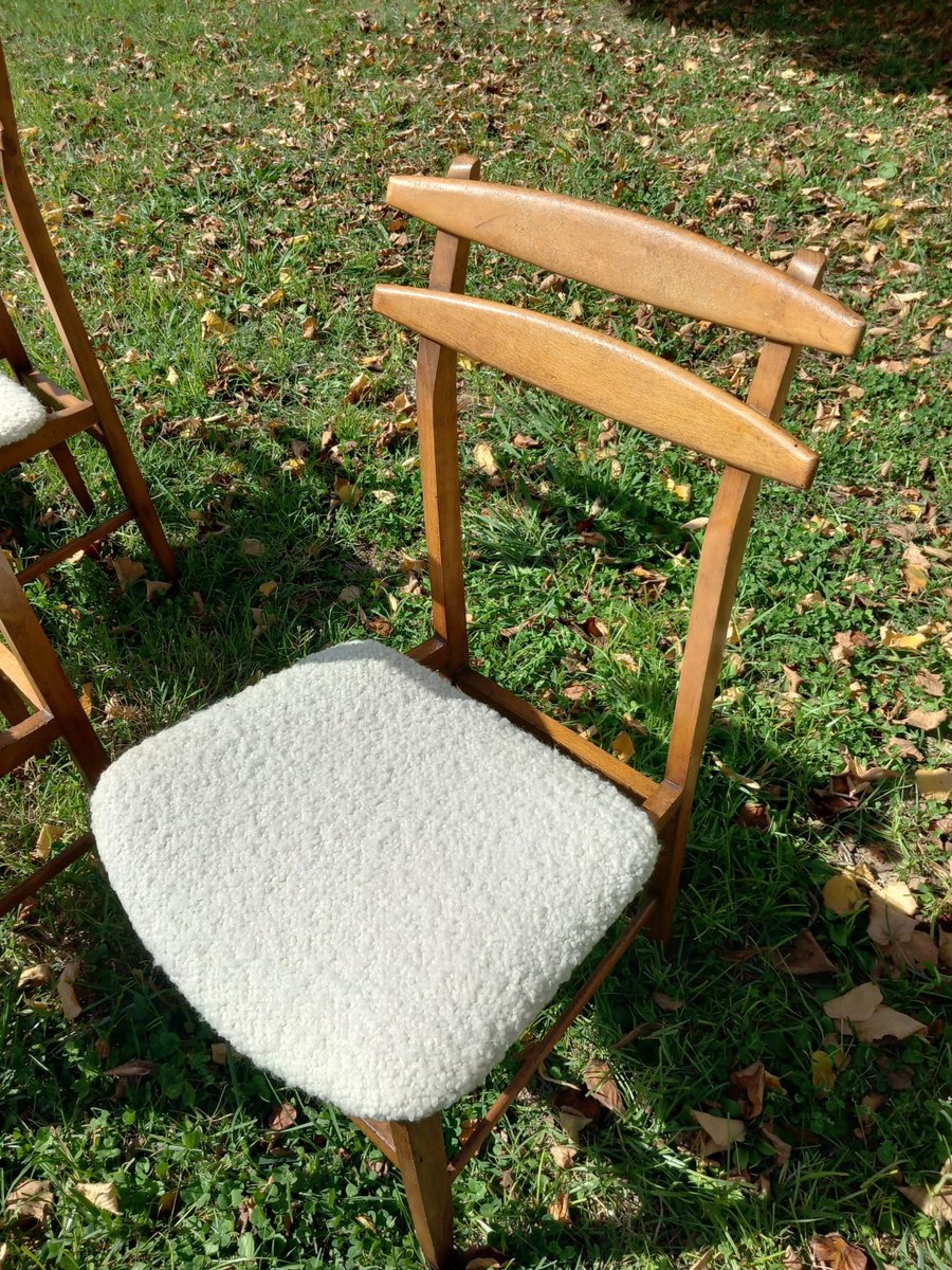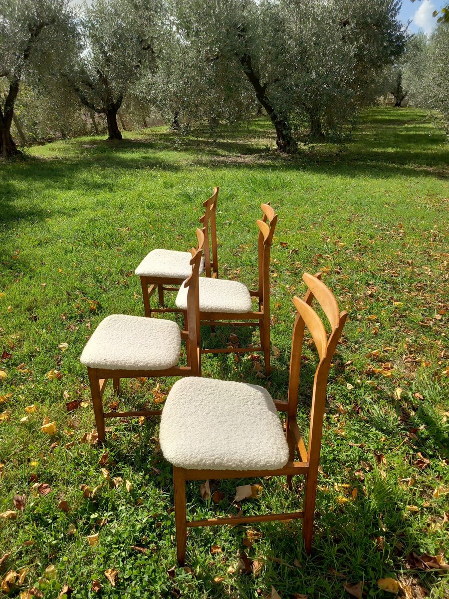 Sillas estilo escandinavo de roble claro y tela Bouclé atribuidas a Amma Studio, años 60. Juego de 4