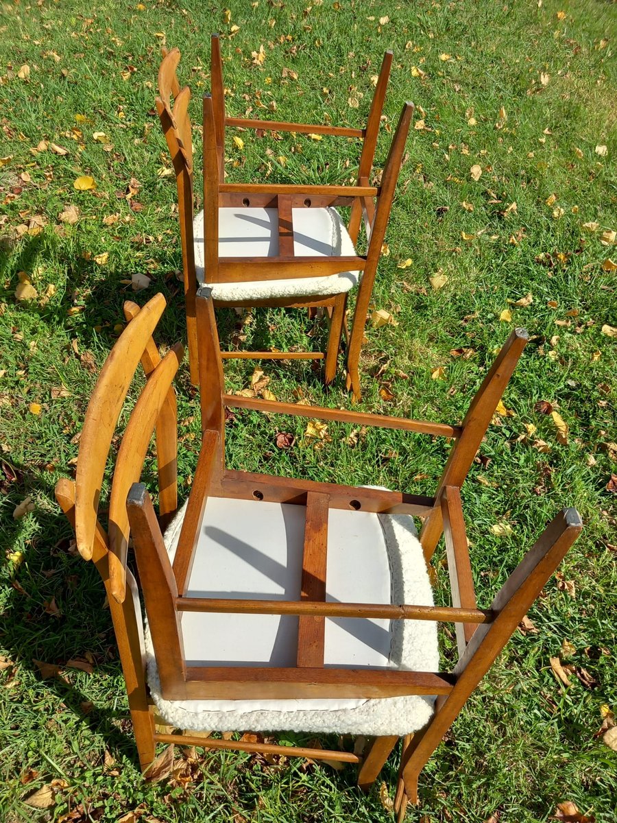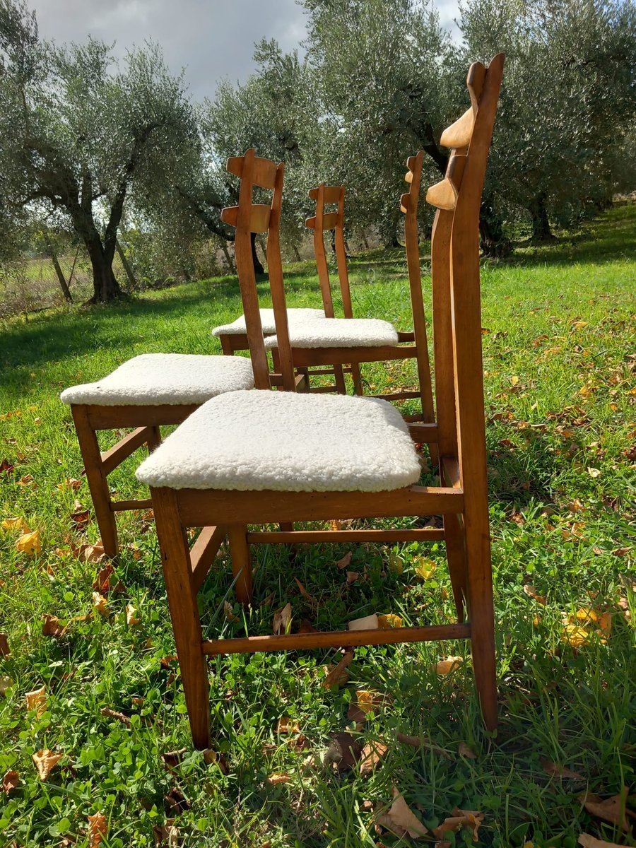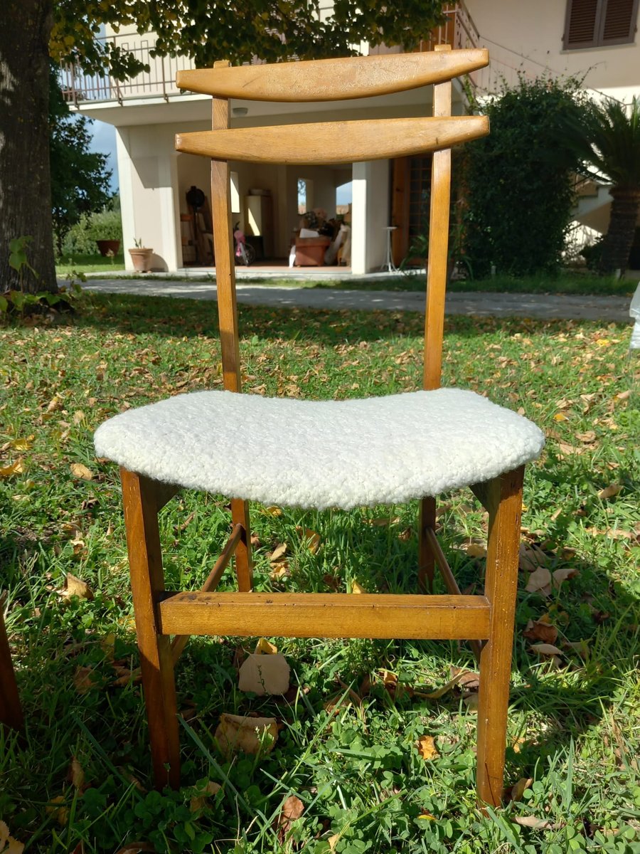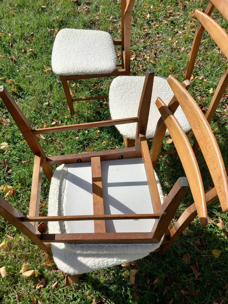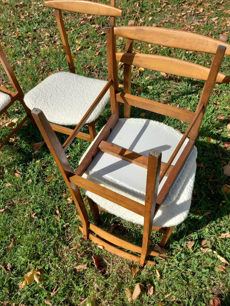 Sillas estilo escandinavo de roble claro y tela Bouclé atribuidas a Amma Studio, años 60. Juego de 4