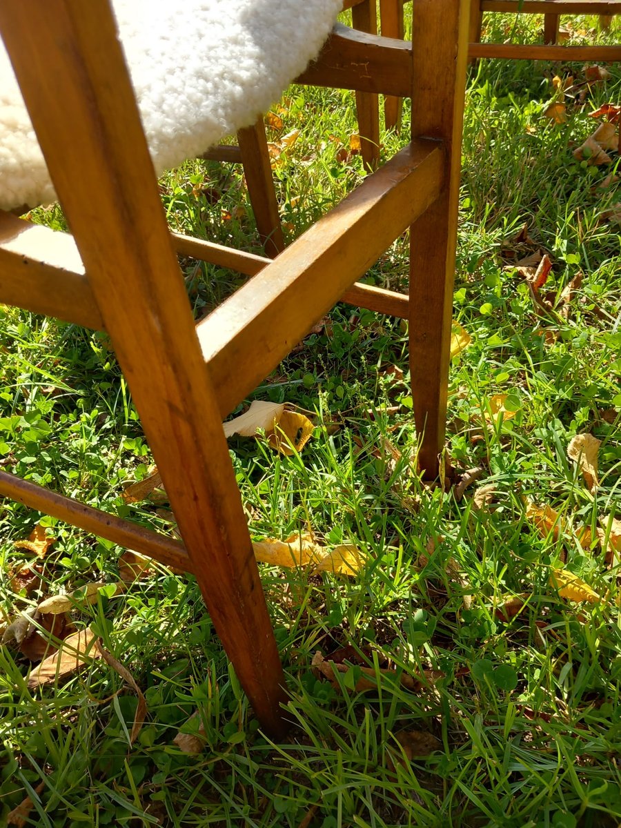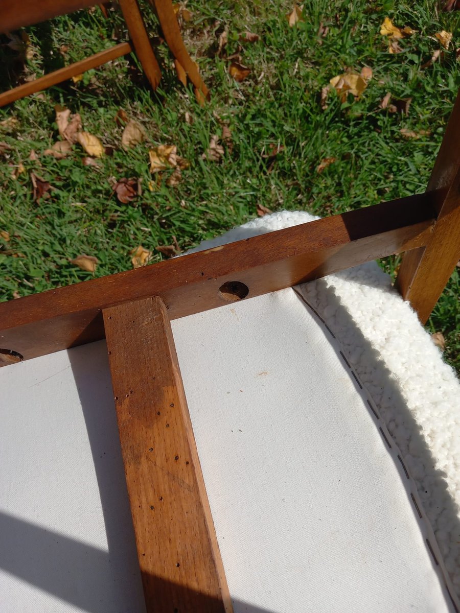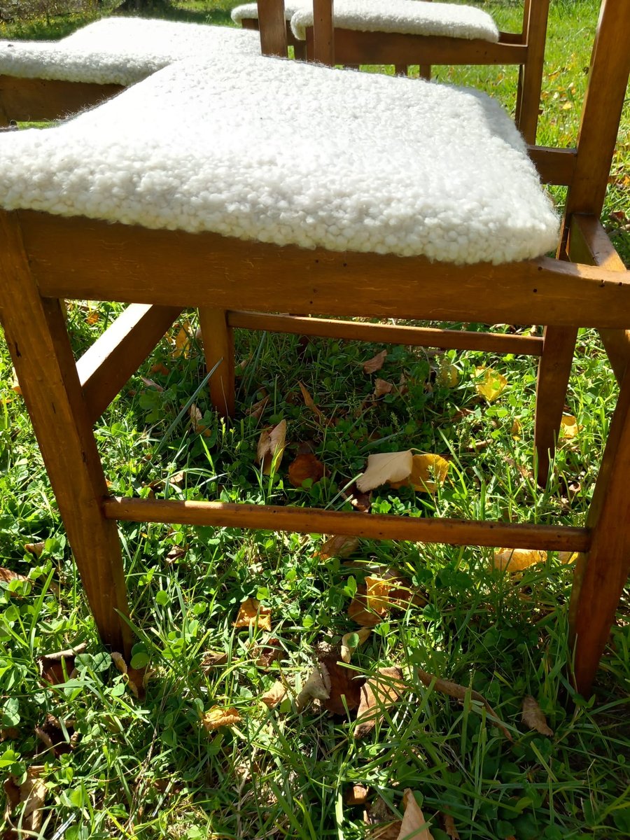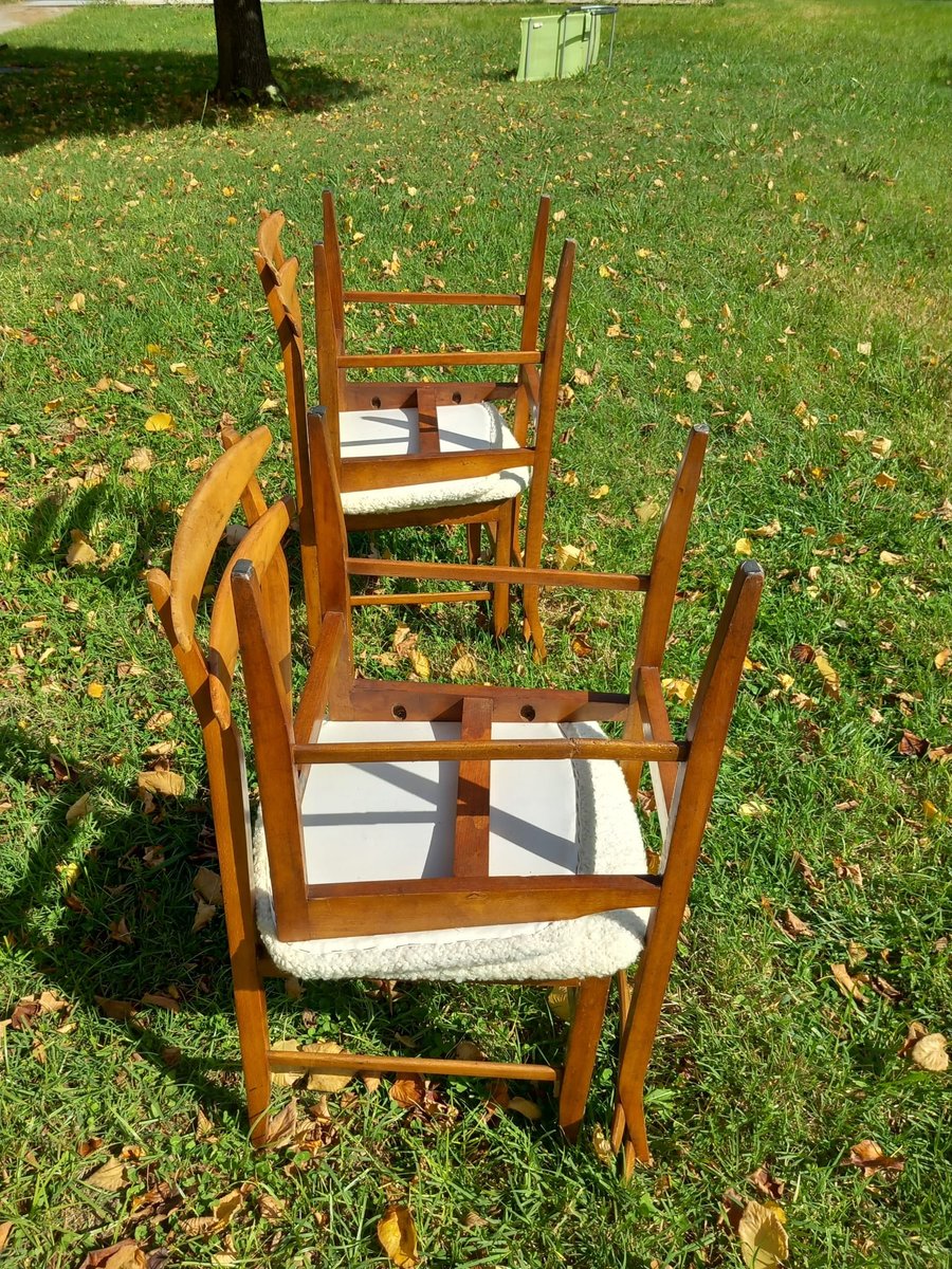 Sillas estilo escandinavo de roble claro y tela Bouclé atribuidas a Amma Studio, años 60. Juego de 4