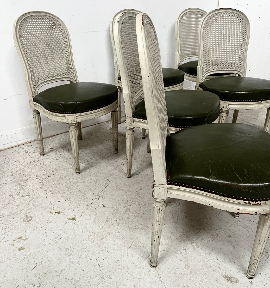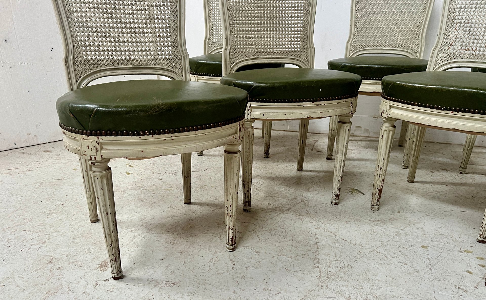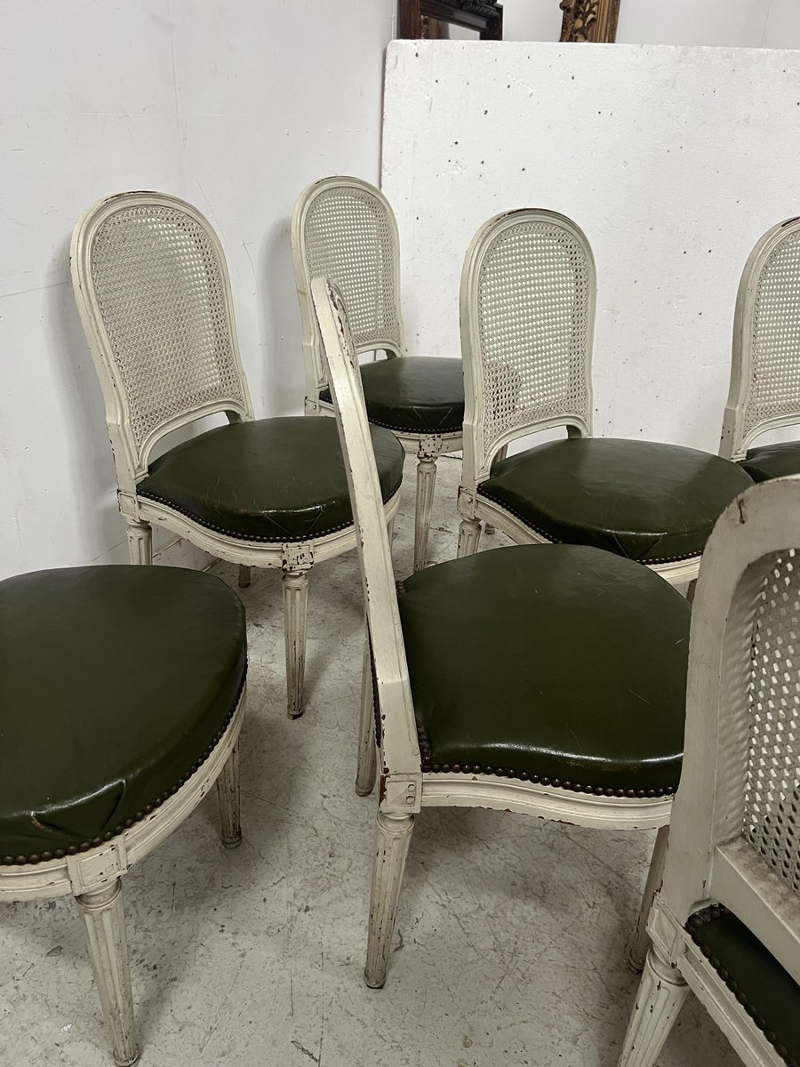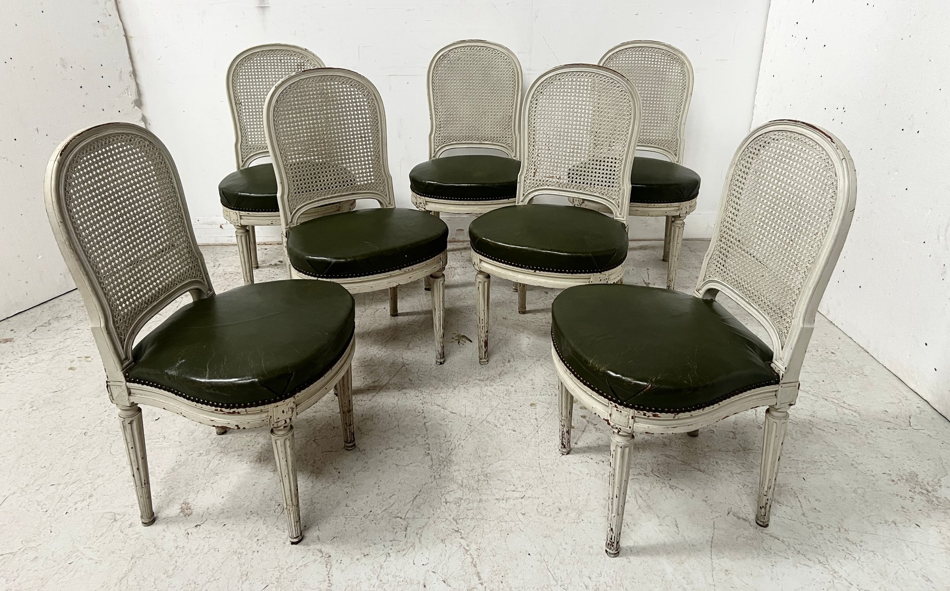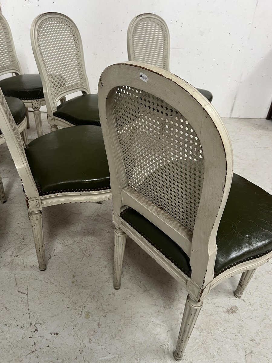 Sillas estilo Luis XVI de madera de haya patinada. Juego de 7