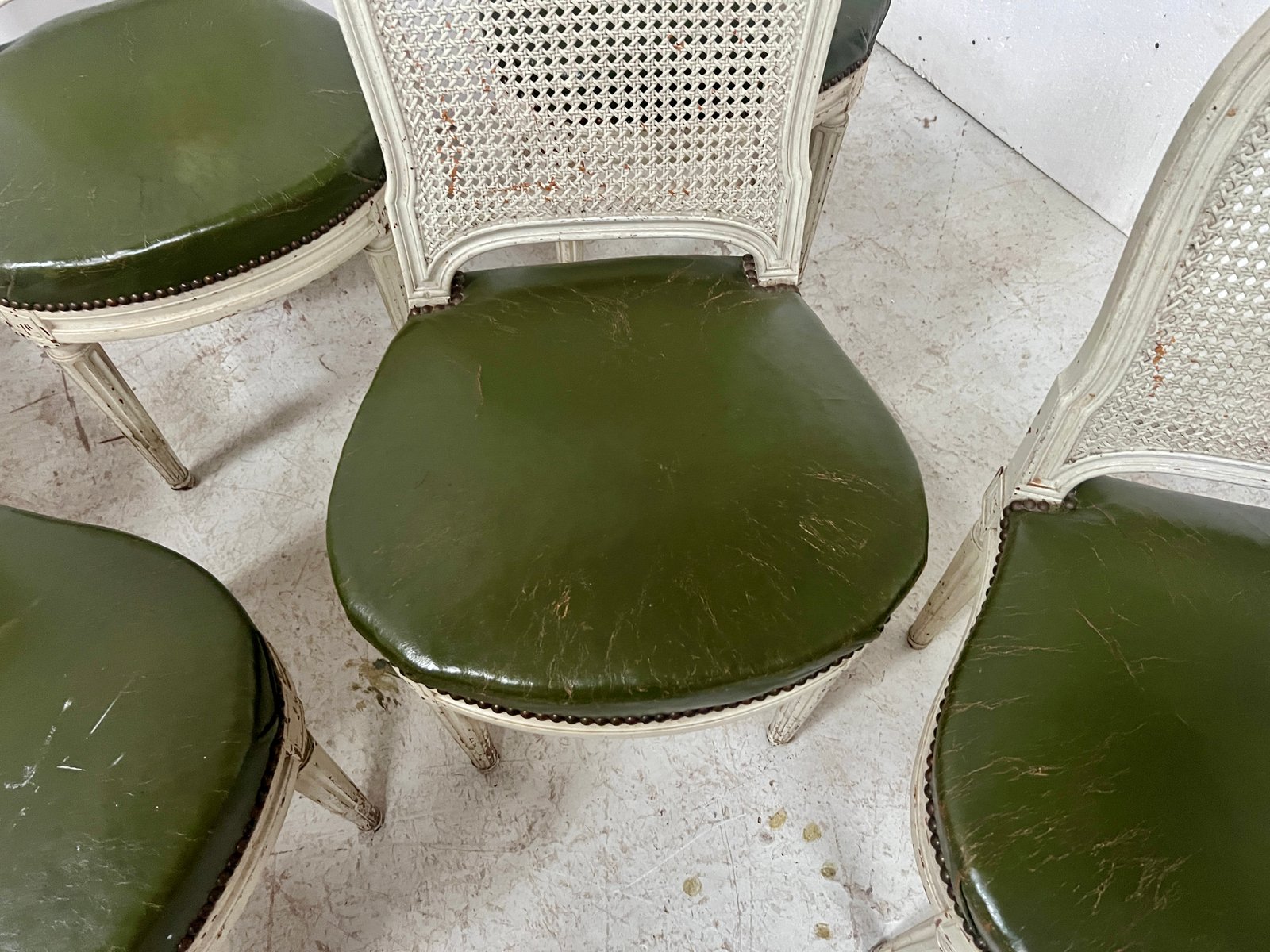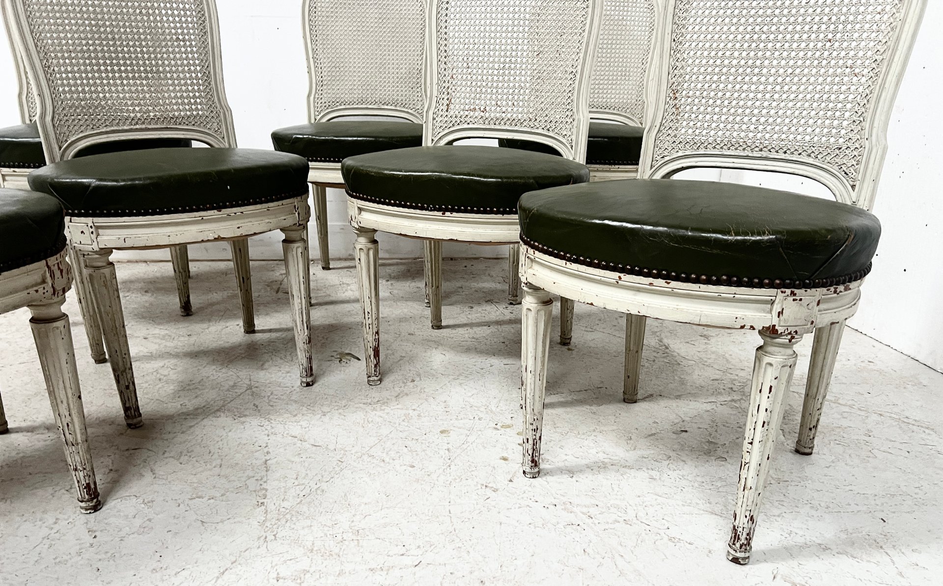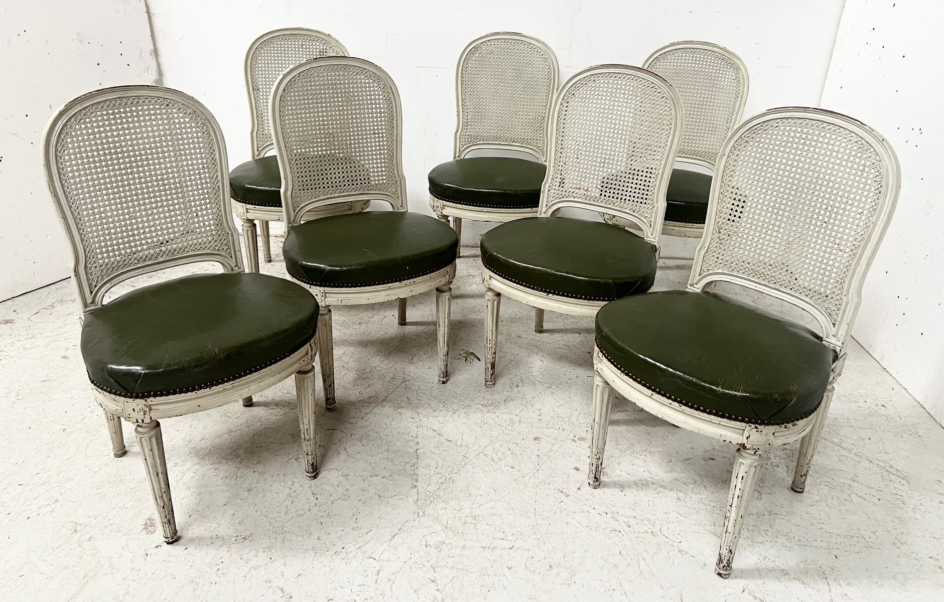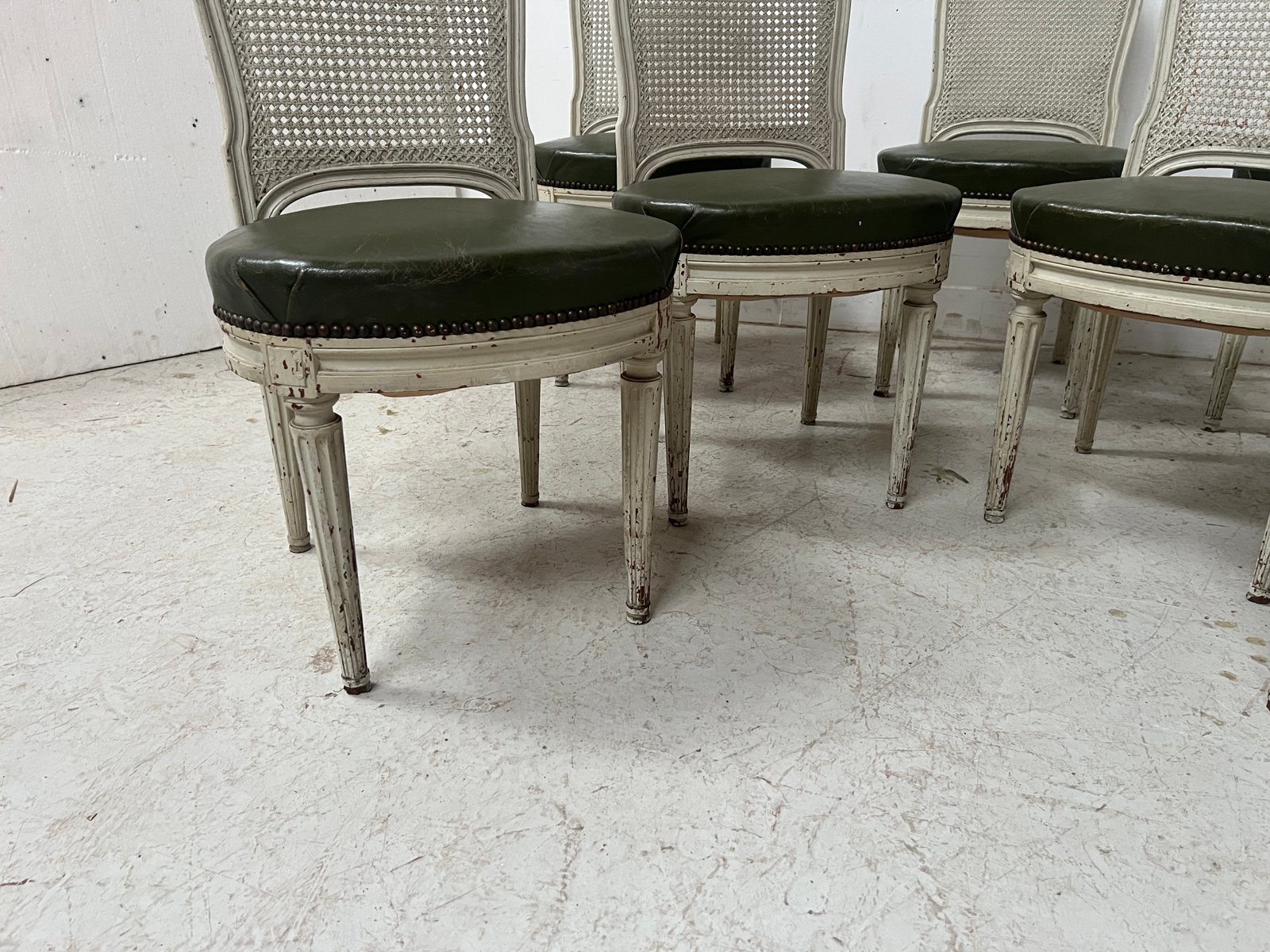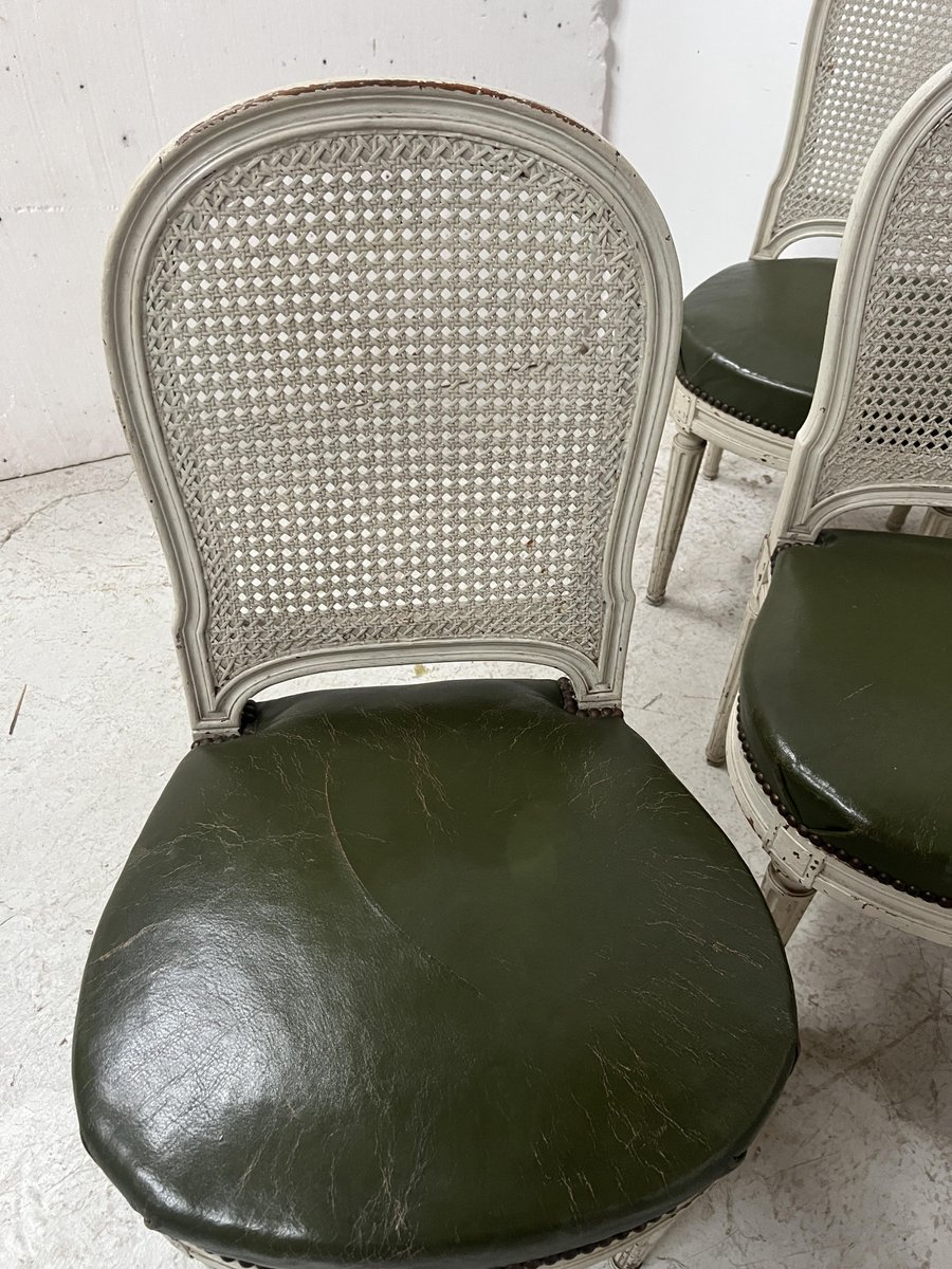 Sillas estilo Luis XVI de madera de haya patinada. Juego de 7