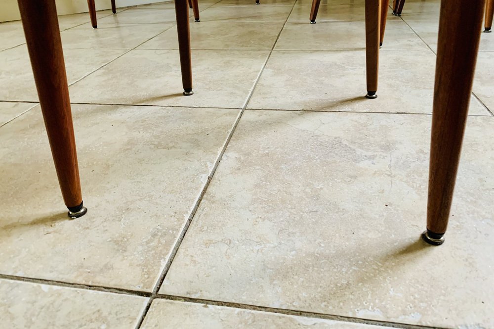 Las sillas también tienen el original, en las puntas de las patas, con almohadillas originales.