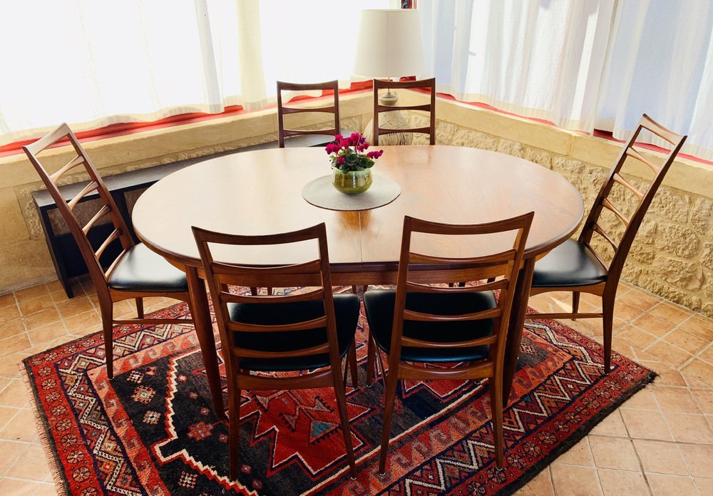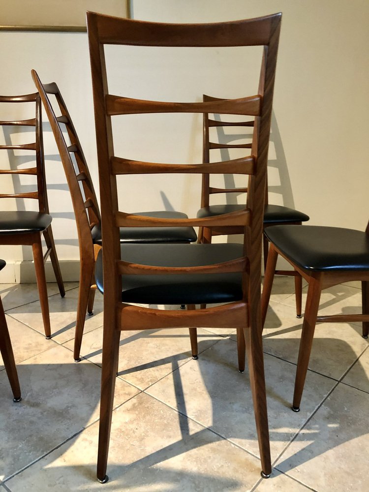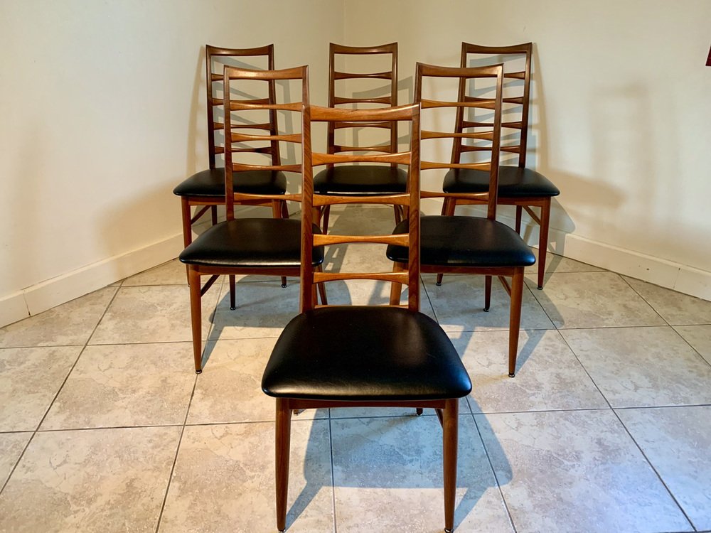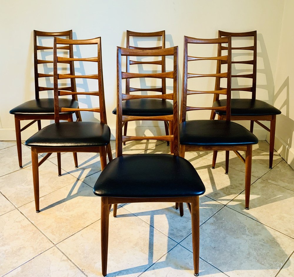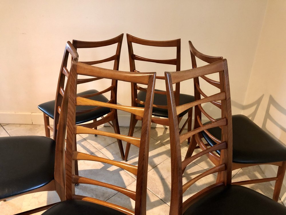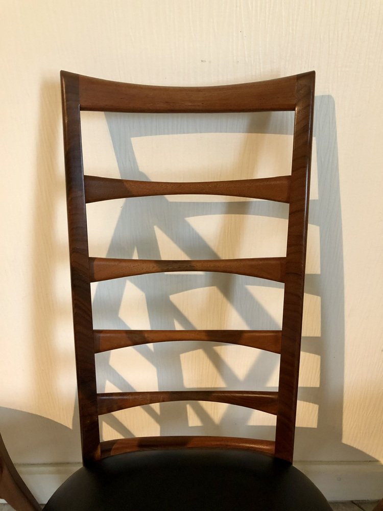 Juego de 6 sillas de comedor de mediados de siglo, vintage, con respaldo de escalera, Modernas Danesas, fabricadas en Dinamarca en los años 60.