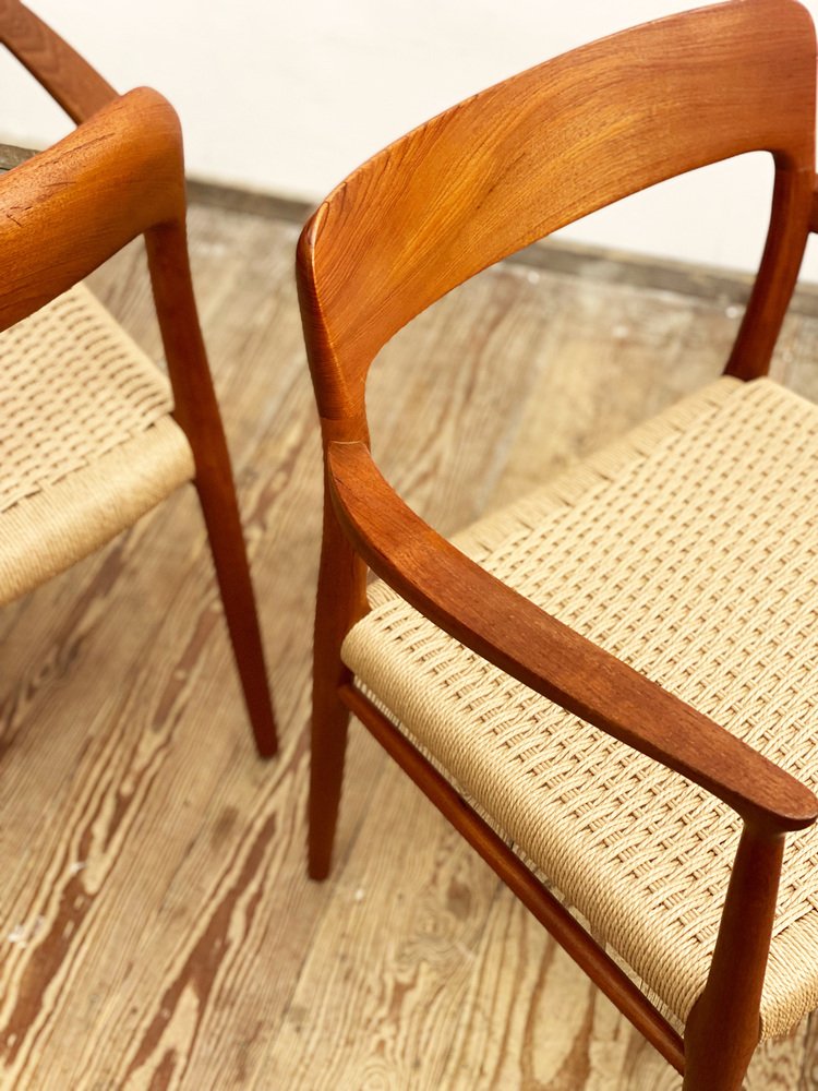 Sillas modelo 56 danesas Mid-Century de teca de Niels O. Møller para JL Mollers Møbelfabrik, años 50. Juego de 2