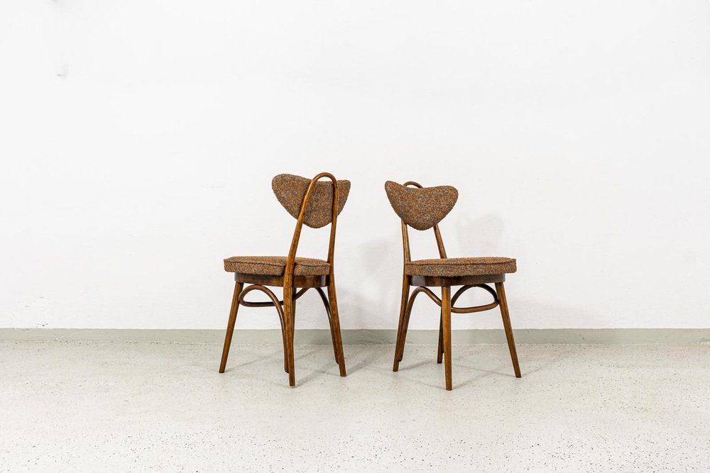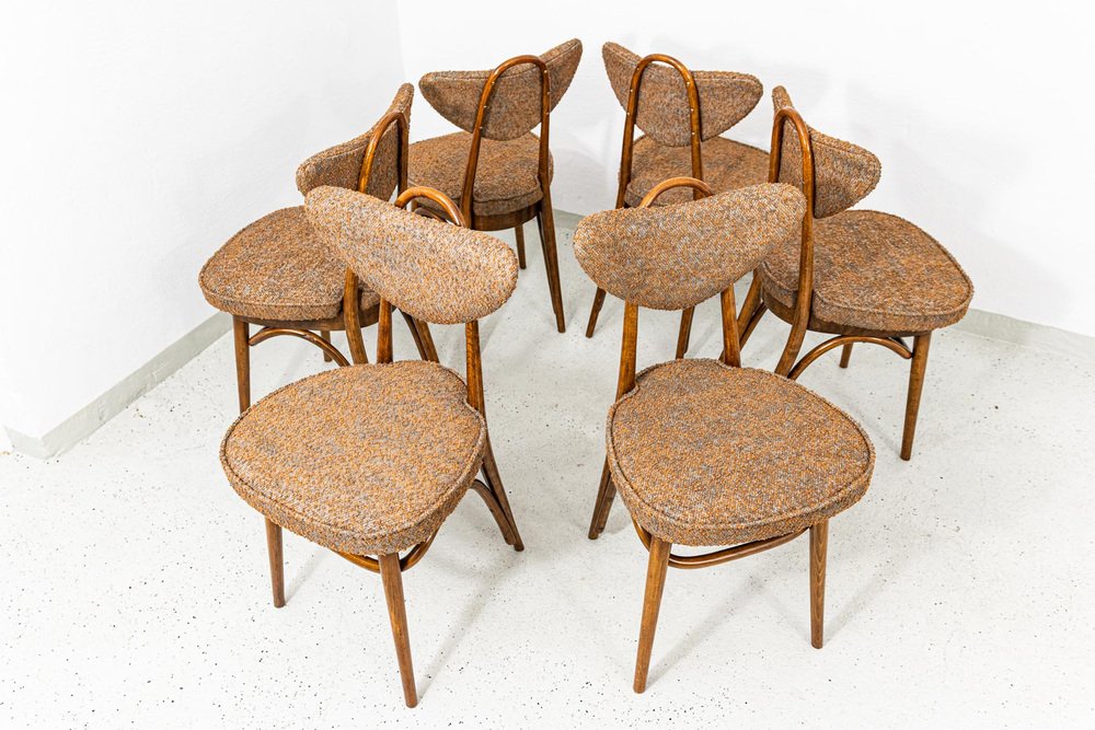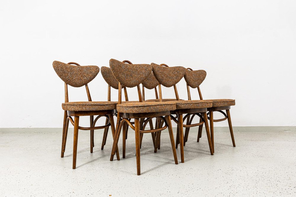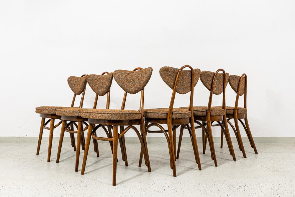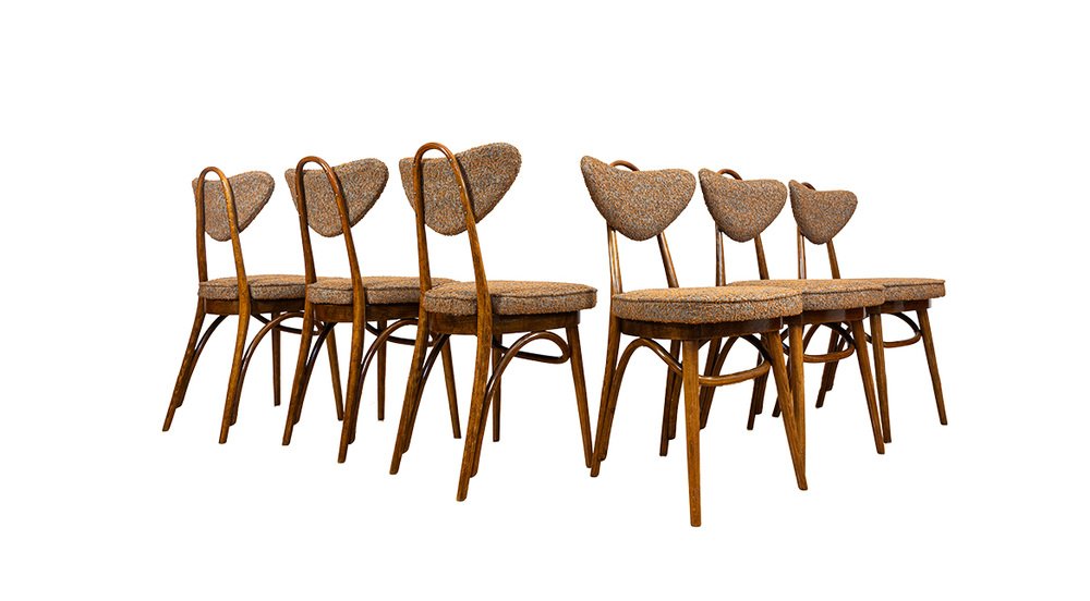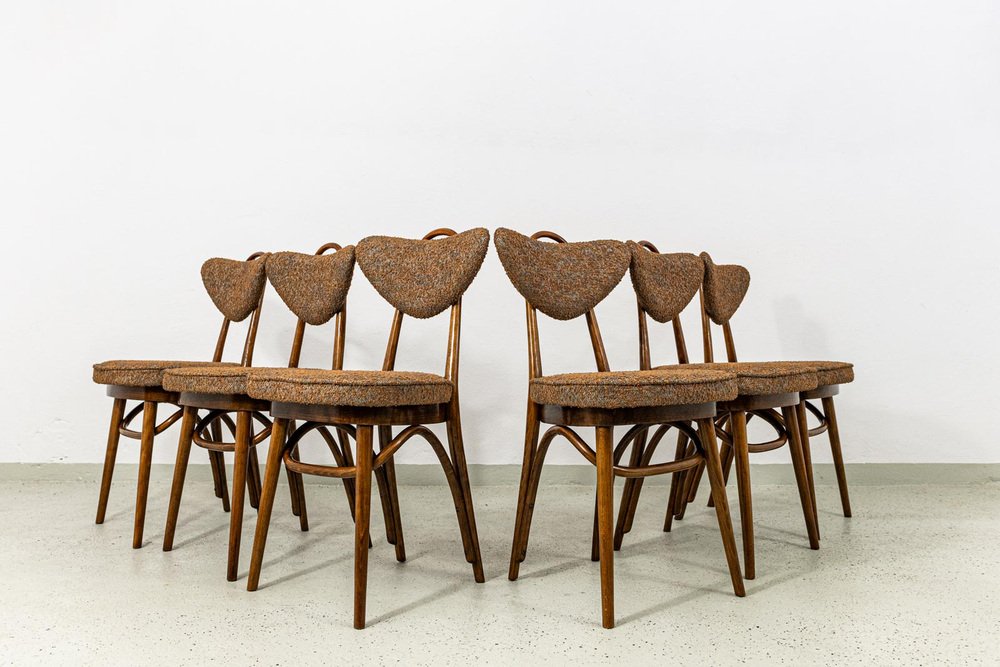 A set of six bent beech wood chairs model 124, designed by Helena and Jerzy Kurmanowicz, was produced in the Radomsko Wood Industry Plant in the 1950s. In 1959, this design won first prize in a competition organized by PAGED. The common name "heart" comes from the backrest made of bent plywood, which resembles a heart in shape.