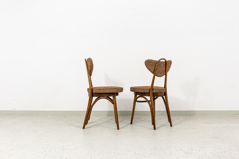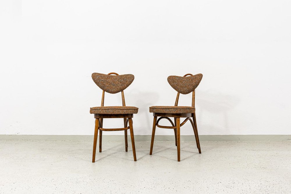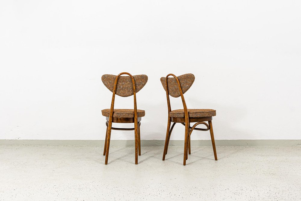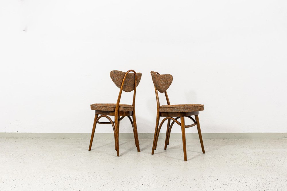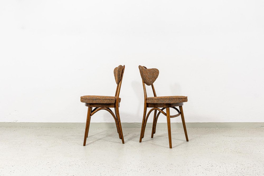 A set of six bent beech wood chairs model 124, designed by Helena and Jerzy Kurmanowicz, was produced in the Radomsko Wood Industry Plant in the 1950s. In 1959, this design won first prize in a competition organized by PAGED. The common name "heart" comes from the backrest made of bent plywood, which resembles a heart in shape.